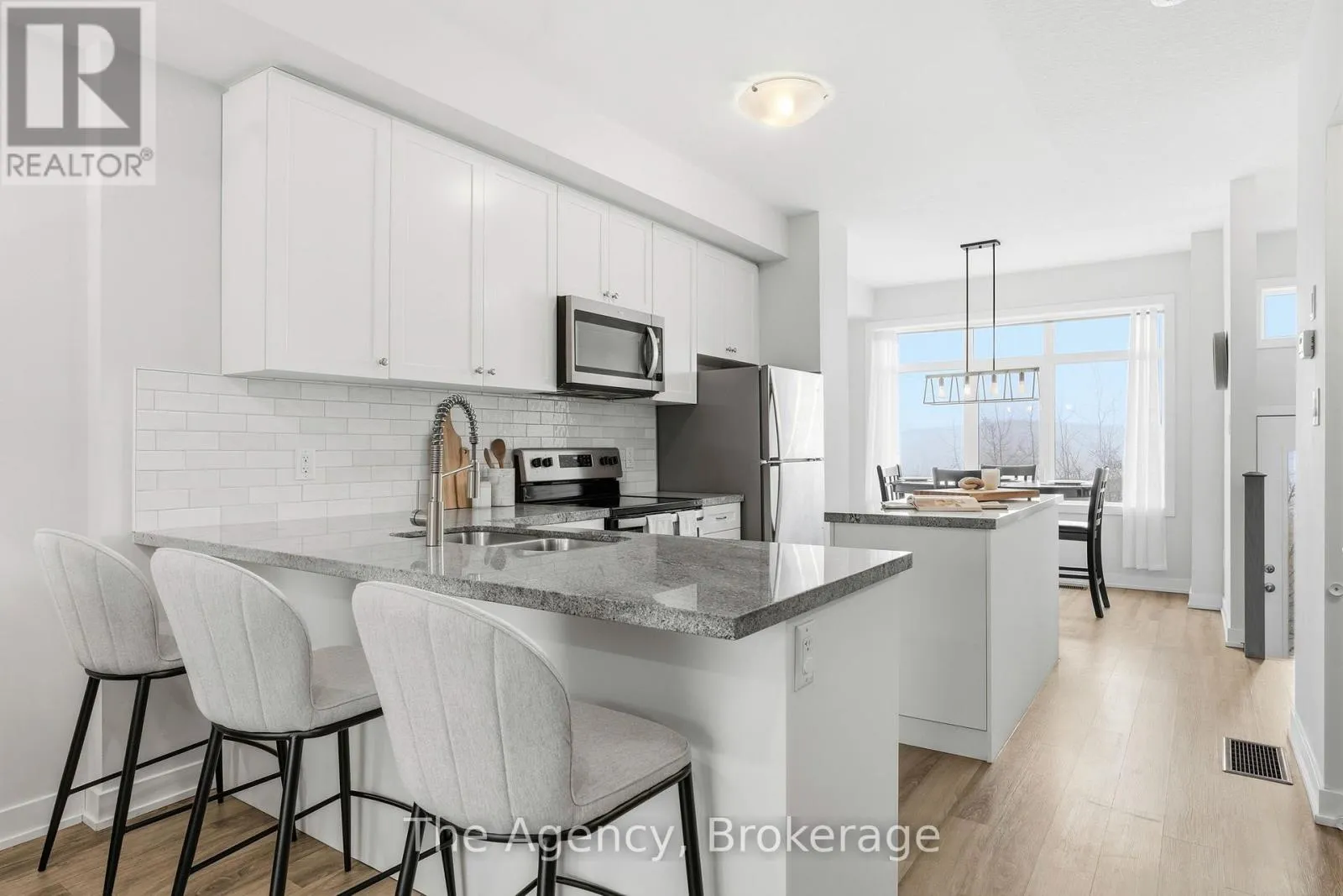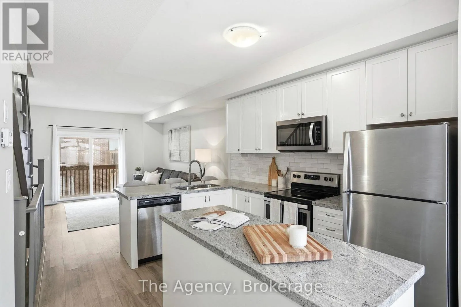Cross Streets: Wilson St W/Shaver Rd/Garner Rd W. ** Directions: Wilson St W/Shaver Rd/Garner Rd W/Wilson St W/Shaver Rd/Garner Rd W. Welcome to this bright and thoughtfully designed 2-bedroom, 1.5-bathroom home in sought-after Ancaster. With 9-foot ceilings, the second floor features an open-concept living room, kitchen, and dining area. The spacious living room with pot lights opens onto a deck, while the kitchen includes granite countertops, shaker cabinetry, an island, and a peninsula with seating that provides additional storage and counter space. Upstairs, you will find two generously sized bedrooms, a full bathroom, convenient third-floor laundry, and a primary bedroom with a walk-in closet. The ground level offers inside access to the garage, a powder room, and a family room with a walkout to the backyard. Low condo fees of $115/month cover building insurance, common elements, and parking. A standout opportunity in a highly desirable Ancaster location. (id:27476)