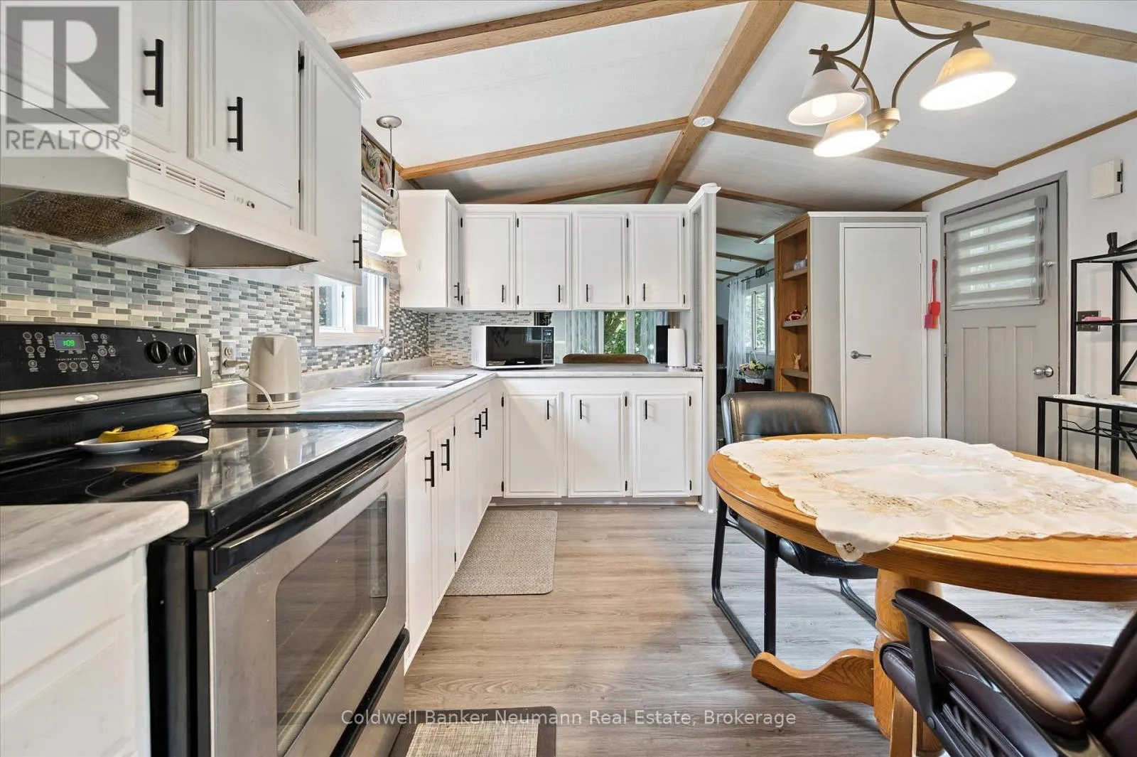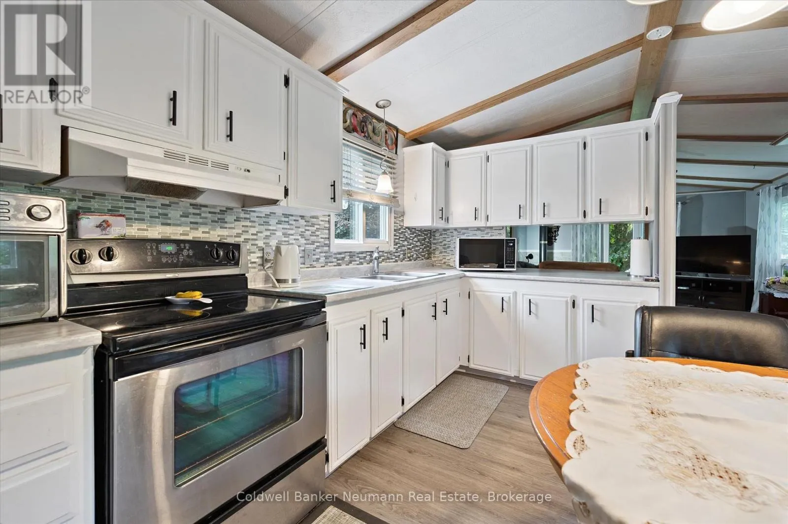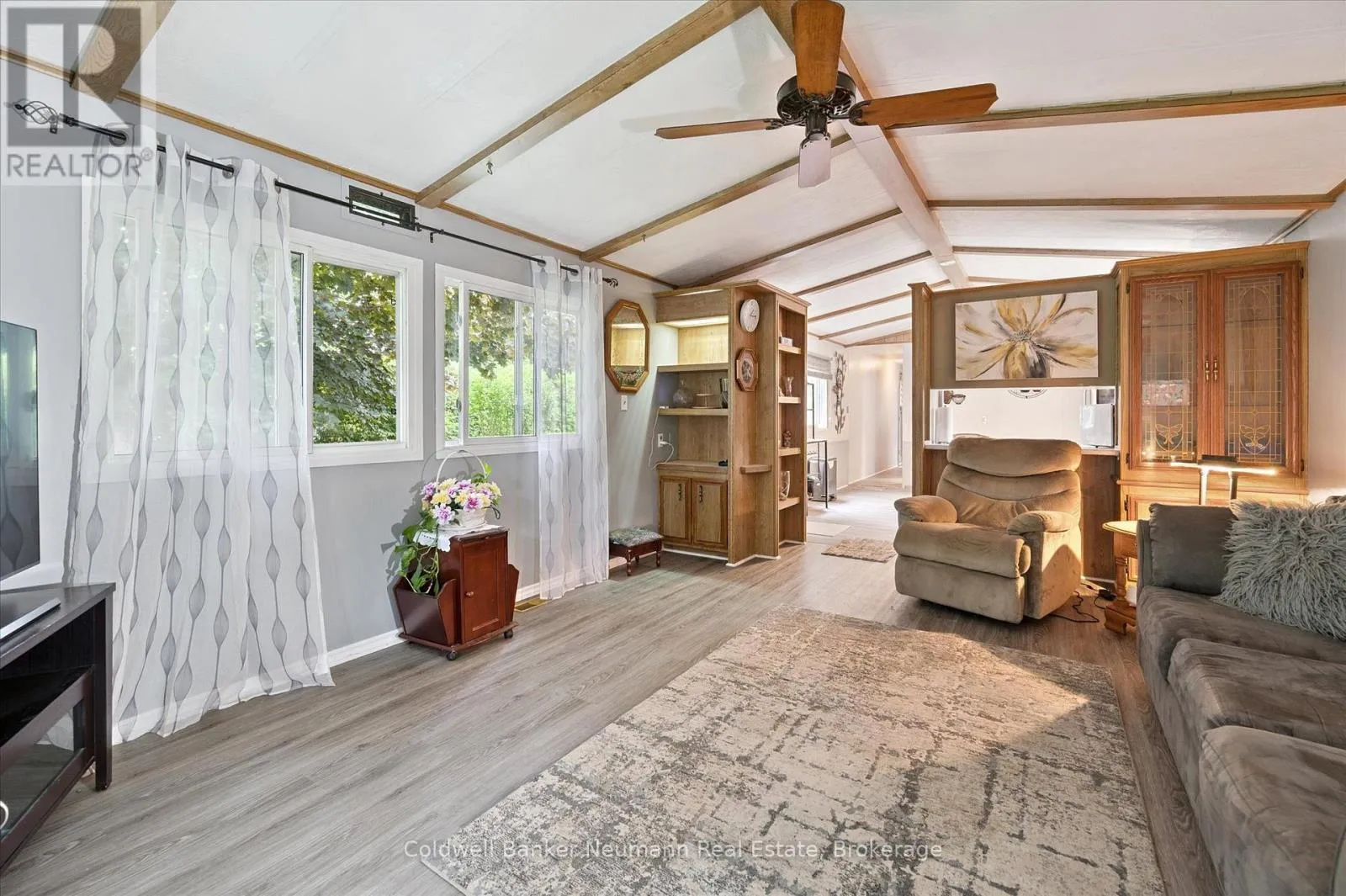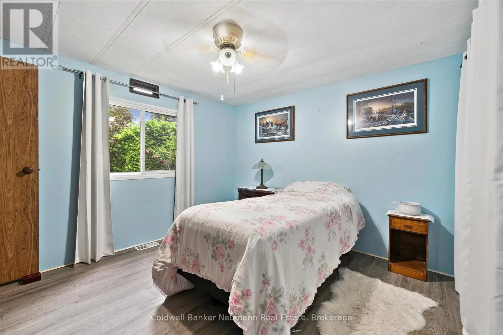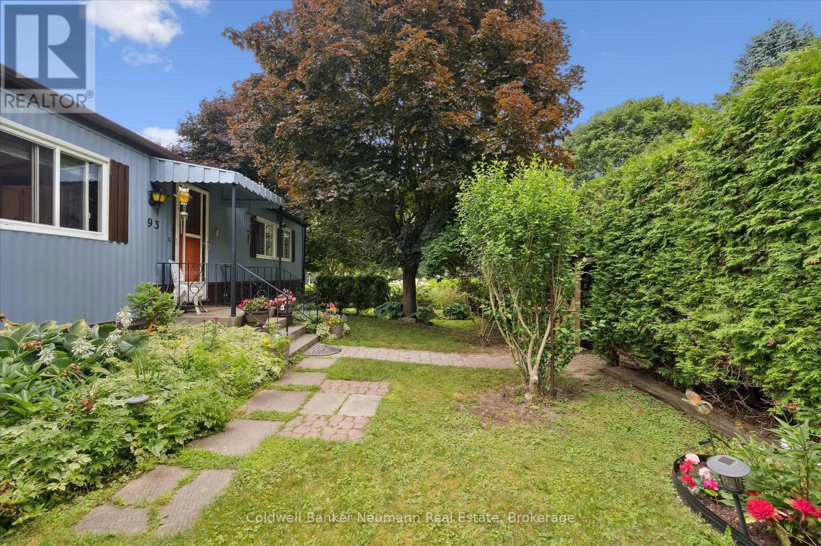 Cross Streets: Concession 8 W and Park Lane. ** Directions: Highway 6 south to Concession 8 W to 1294 (Beverly Hills Estates). Turn onto Park Lane, then take the 1st road to the left (Maple) and follow to 93. Privacy plus!! This well maintained 2 bedroom bungalow is surrounded by an 8 foot hedge, which allows ultimate privacy from others! The only thing to be seen from the road is the double paved driveway and shed. Inside you will find a generous size eat-in kitchen, living room with propane stove, updated 3 piece bathroom combined with laundry and a primary bedroom with wall to wall closet. The exterior vinyl siding was painted about 2 years ago, furnace and central air is about 7 years old, the windows and roof about 10 years ago. Located on a street with great neighbours! This modular home is located within Beverly Hills Estates, a residential modular home park, with a community centre and scheduled events for residents to join (or not!) All homes are owner occupied-no rentals! Come out and see this wonderful affordable home in a great community! (id:27476)
