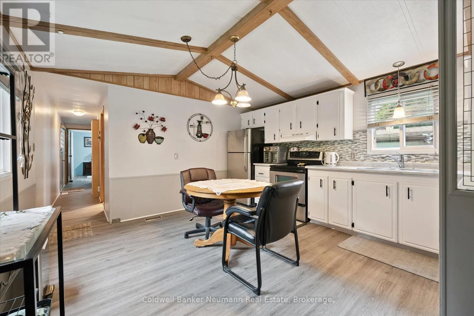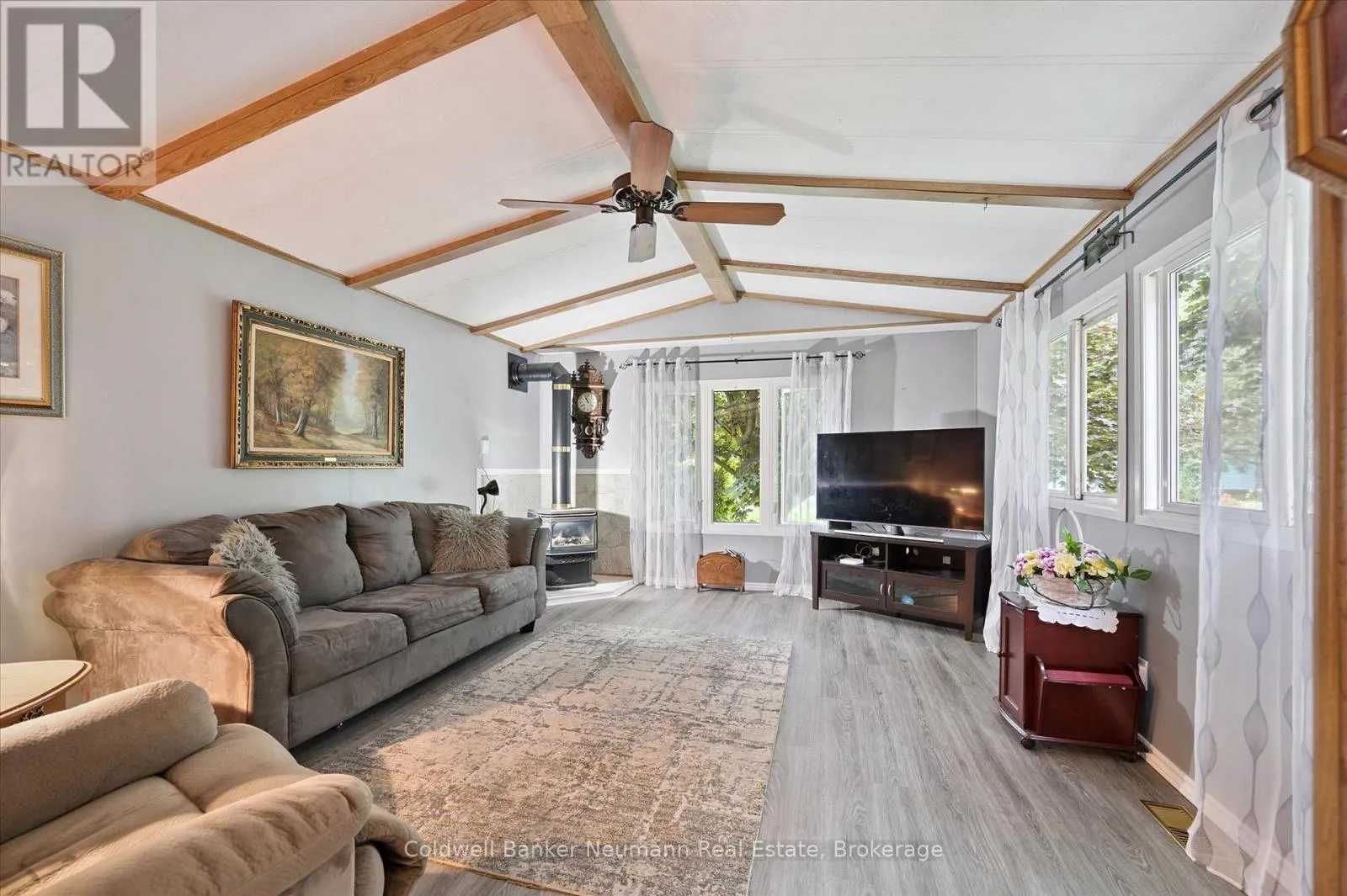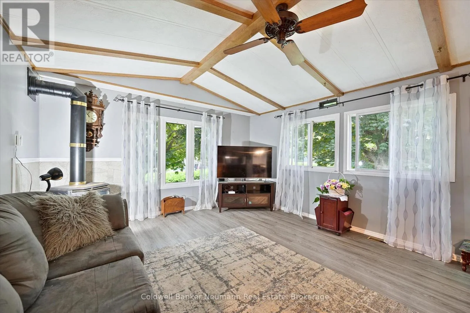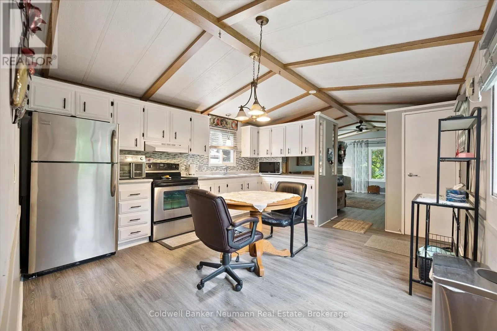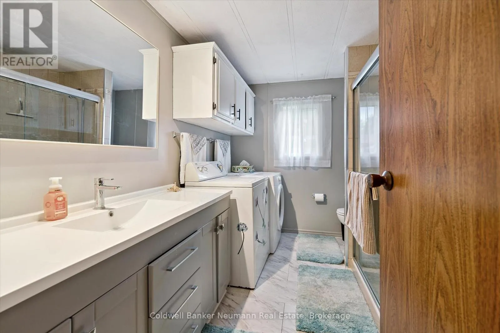 Cross Streets: Concession 8 W and Park Lane. ** Directions: Highway 6 south to Concession 8 W to 1294 (Beverly Hills Estates). Turn onto Park Lane, then take the 1st road to the left (Maple) and follow to 93. Privacy plus!! This well maintained 2 bedroom bungalow is surrounded by an 8 foot hedge, which allows ultimate privacy from others! The only thing to be seen from the road is the double paved driveway and shed. Inside you will find a generous size eat-in kitchen, living room with propane stove, updated 3 piece bathroom combined with laundry and a primary bedroom with wall to wall closet. The exterior vinyl siding was painted about 2 years ago, furnace and central air is about 7 years old, the windows and roof about 10 years ago. Located on a street with great neighbours! This modular home is located within Beverly Hills Estates, a residential modular home park, with a community centre and scheduled events for residents to join (or not!) All homes are owner occupied-no rentals! Come out and see this wonderful affordable home in a great community! (id:27476)