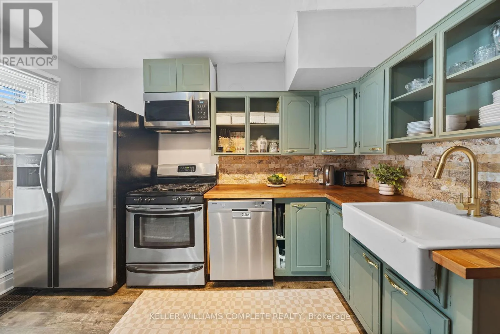 Cross Streets: MAIN STREET EAST. ** Directions: North onto Cope Street from Main Street E. Welcome to 22 Cope Street, a charming 1.5-storey brick home tucked into a quiet, central Hamilton neighbourhood with quick access to the Red Hill Valley Parkway for easy commuting across the city, the GTA, or Niagara. This warm and inviting home blends timeless character with thoughtful modern updates. The upper level features two spacious bedrooms with deep closets and a full newly updated bathroom. On the main floor, you're welcomed from the covered front porch into bright living and dining spaces filled with original trim, a decorative brick fireplace, and an easy, functional layout. The kitchen offers stainless steel appliances, a stone backsplash, and butcher block counters, connecting seamlessly to a rear mudroom and a versatile additional main-floor room that works beautifully as a playroom, office, or third bedroom. Downstairs, the fully finished basement provides excellent bonus living space, laundry and storage, plus an added two-piece bath. Outside, the backyard is private and well cared for, featuring newer fencing, a concrete patio, and updated gates, perfect for relaxing, entertaining, or enjoying a bit of greenery in the city. Significant improvements have been completed throughout ownership, with over $25,000 in recent updates including sewer lining, back-flow protection, basement flooring and levelling, plumbing upgrades, a beautifully renovated bathroom, and more, offering peace of mind for the next homeowner. Located close to parks, trails, schools, and everyday amenities, 22 Cope Street is a wonderful opportunity to enjoy a move-in-ready home with character, comfort, and long-term value in the heart of Hamilton. (id:27476)