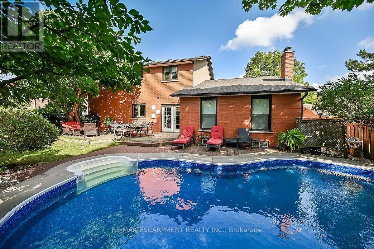 BETWEEN WILSON ST W & JERSEYVILLE RD This is the home you have been waiting for! Shows 10+++. In a family friendly area in one of Ancaster's most sought after areas, 2 parks for the kids, one directly across from the house, Dundas valley trails, rec center, and sports fields steps away. Custom built, brick, stone, and stucco, 2 story with separate entrance ( in law potential ) to fully finished basement with custom bar and wine storage room (app 3500 sq ft of finished living space). 4br. 4 baths, 2 car garage with parking for 4 cars, fully fenced lot featuring your own private backyard oasis with inground saltwater pool, shed and landscaping. Bright natural light throughout. Main floor features office, lr/dr with hardwood, large eat in kitchen, family room with wood burning fireplace with turkish limestone and italian slate finishes. Recent renos include 23 pool liner, 14 exterior stucco, 14 kitchen and family room windows, 14 eaves and downspouts, 12 two bedroom windows, 10 shingles, master bath reno. This home must be seen. Don't delay, book your private viewing now before it's gone! High walk score, close to schools, parks, shopping, transportation, and amenities. Move in ready with nothing to do but enjoy. This home is priced to sell and won't last, and rarely are available in this area. (id:27476)