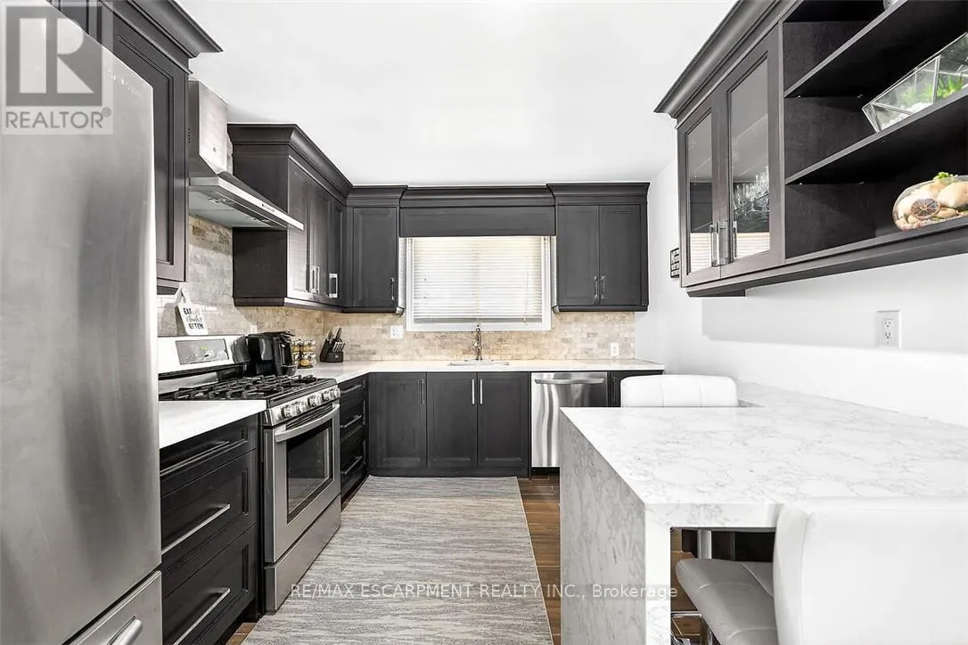 Cross Streets: Greenhill Ave & Summercrest Dr. ** Directions: Greenhill Ave to Summercrest Dt to Tara Crt. This beautifully renovated four-level backsplit showcases quality craftsmanship and thoughtful design throughout. The bright, open-concept main floor features rich hardwood flooring, a spacious living and dining area, and a custom-designed kitchen complete with quartz countertops, stylish backsplash, and stainless steel appliances, including a gas stove. Upstairs, you'll find three generously sized bedrooms and a stunning five-piece bathroom. The lower level offers a welcoming family room with a walkout to the backyard, a convenient side entrance, an additional bedroom, and a modern three-piece bath - ideal for guests or extended family. The fully finished basement provides even more living space with a recreation room, laundry area, cold room, and ample storage. Major updates include the furnace, A/C, roof, windows, and electrical panel. Outside, enjoy exceptional curb appeal with an exposed aggregate driveway and walkways, a front porch with sleek glass railings, a fully fenced yard, and a large shed with hydro. Tucked away on a quiet cul-de-sac with beautiful escarpment views, this home is just steps to parks and trails, close to schools, and offers quick access to the Red Hill and major highways. (id:27476)