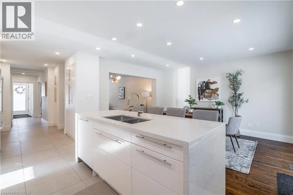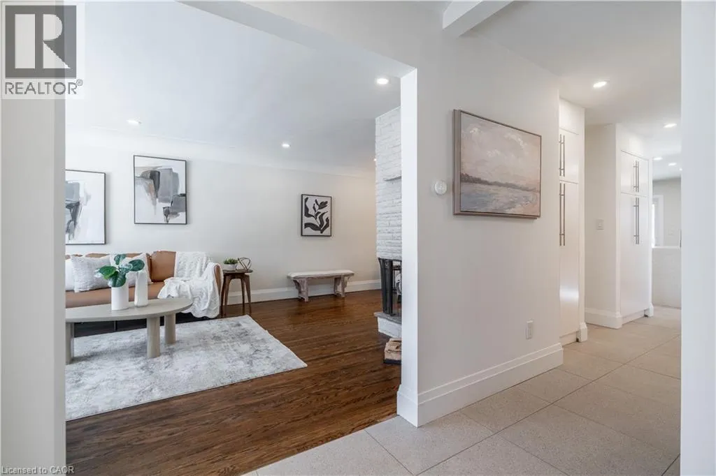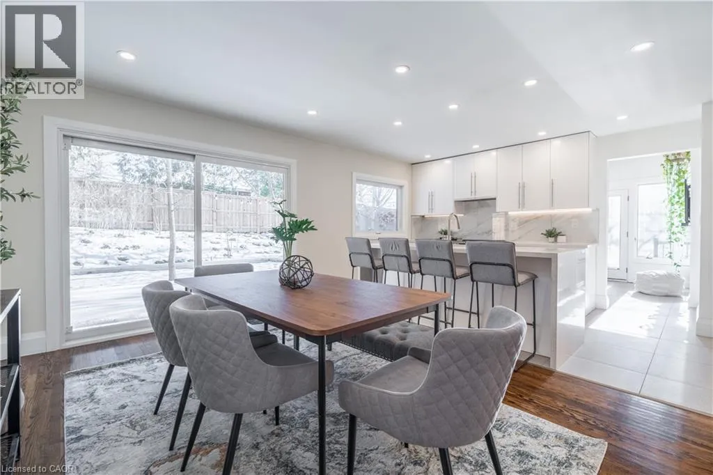 North on York Rd from King St E, turn left onto Glenmorris Dr Welcome to 7 Glenmorris Drive, ideally located in one of Dundasâ most desirable neighbourhoods, on a quiet dead end street! Surrounded by mature trees, quiet streets, and scenic escarpment views, this location offers the perfect balance of small-town charm and everyday convenience. Enjoy nearby parks, top-rated schools, and endless trails, all just minutes from Downtown Dundas. This solid brick sidesplit has been fully renovated with a bright, contemporary design throughout. The home features all new windows and a stunning custom kitchen with sleek tile flooring, abundant natural light, and stylish finishes. Refinished original hardwood floors add warmth and character, making the main living space both inviting and functional. Upstairs, youâll find three comfortable bedrooms, including a spacious primary bedroom, along with a large four-piece bathroom featuring a beautifully tiled custom walk-in shower. The fully renovated lower level adds valuable living space with a fourth bedroom or office, a bright three-piece bathroom, and a convenient new laundry area with a stackable washer and dryer. Step outside to a beautifully landscaped backyard featuring a wrap-around concrete patioâperfect for entertaining family and friends or enjoying quiet evenings outdoors. With its modern updates, solid construction, and exceptional Dundas location, this move-in ready home offers the lifestyle youâve been waiting for. (id:27476)