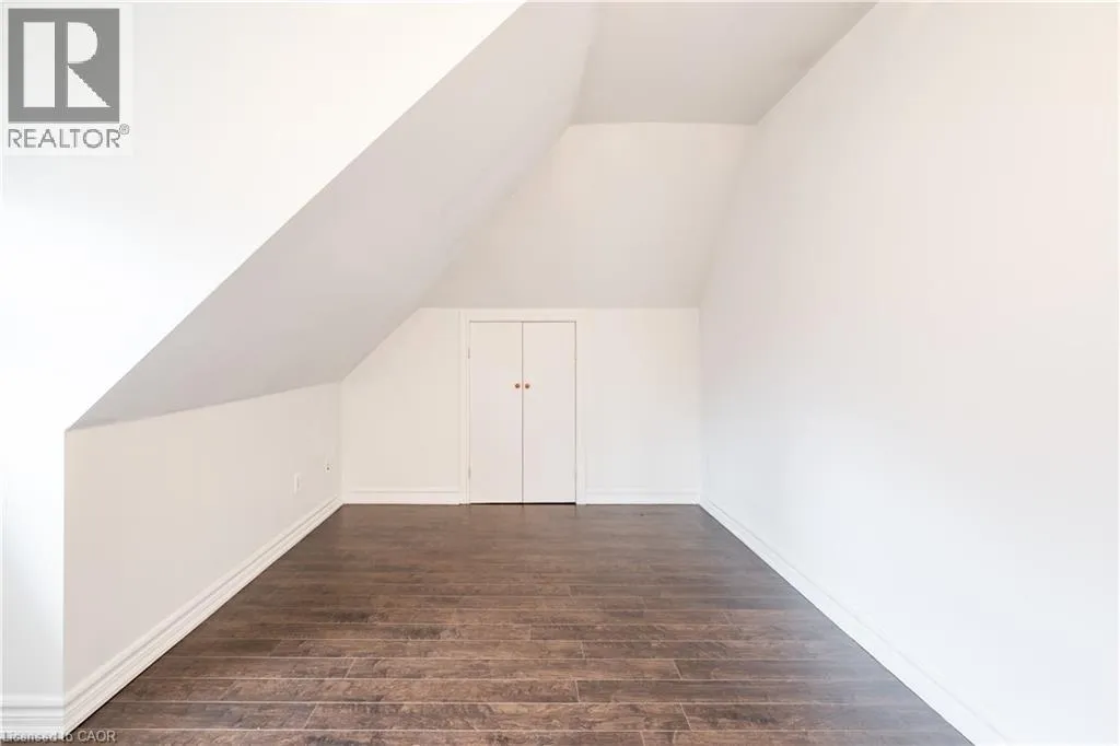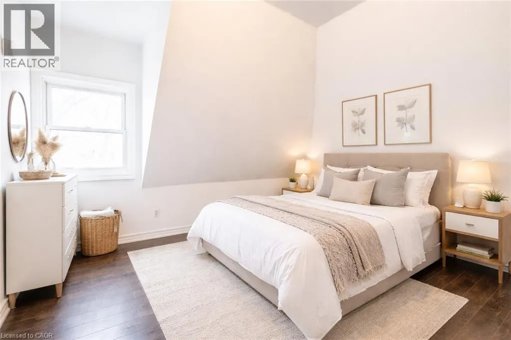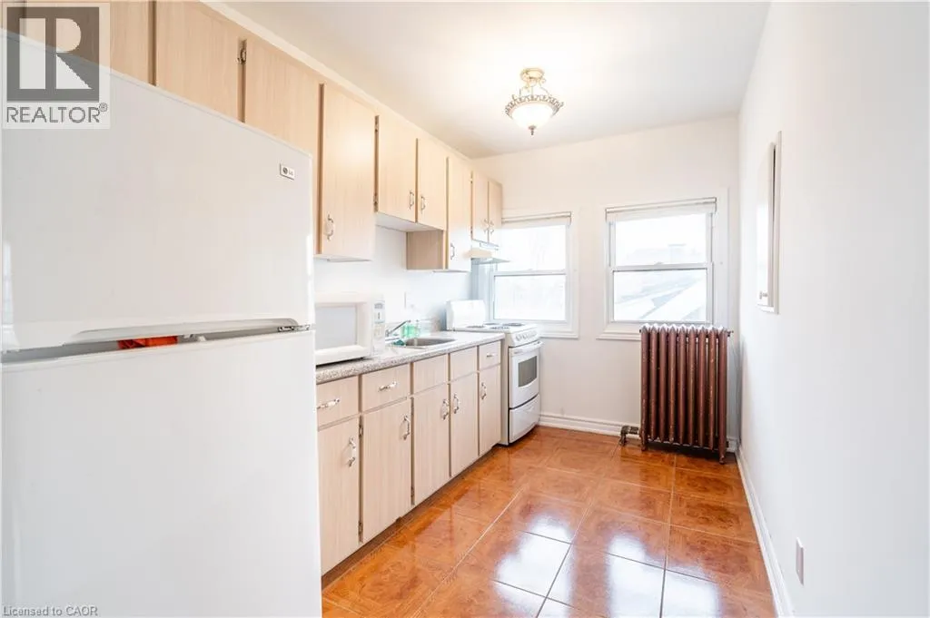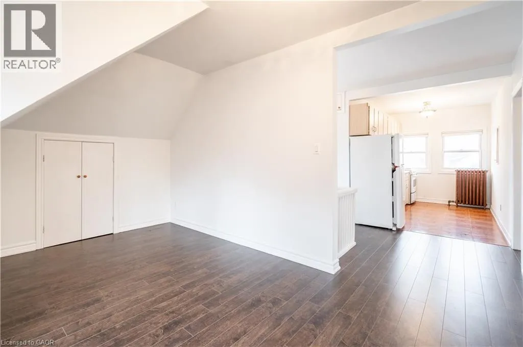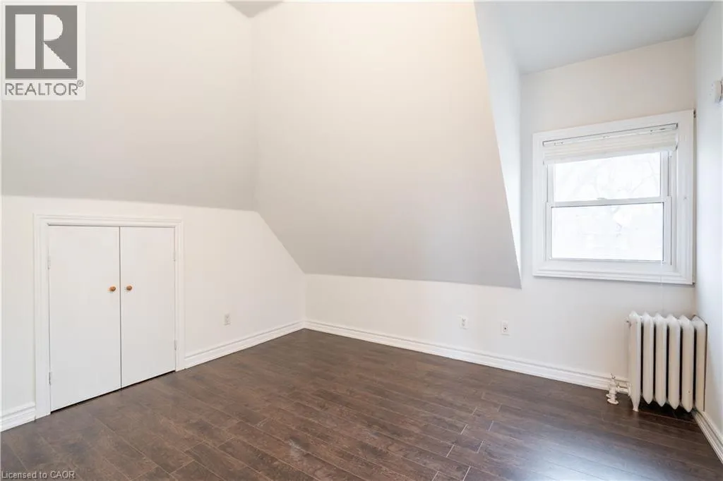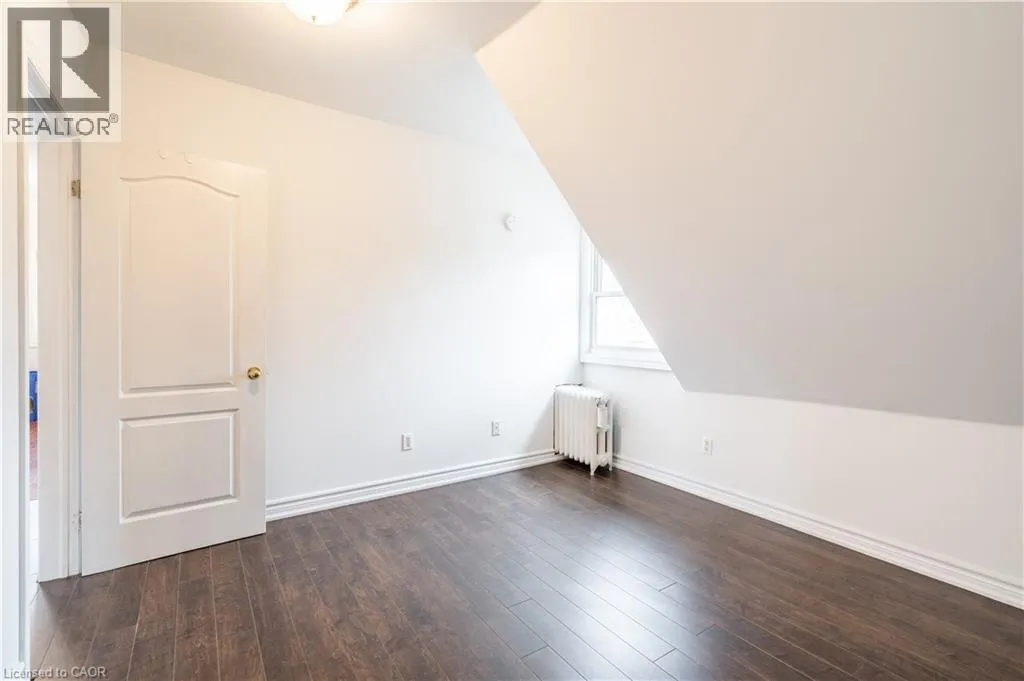 Bright 2-bedroom, 1-bathroom third floor Unit 3 located in a large brick home on a quiet tree-lined street in the Gibson neighbourhood. Conveniently situated near restaurants, shops, parks, and transit. Heat and water included. Hydro separately metered and paid by tenant. Shared laundry in the basement, pay per use. One parking space available in driveway (tandem parking with other tenants; occasional coordination required). Great opportunity to live in a charming and convenient location. (id:27476)
