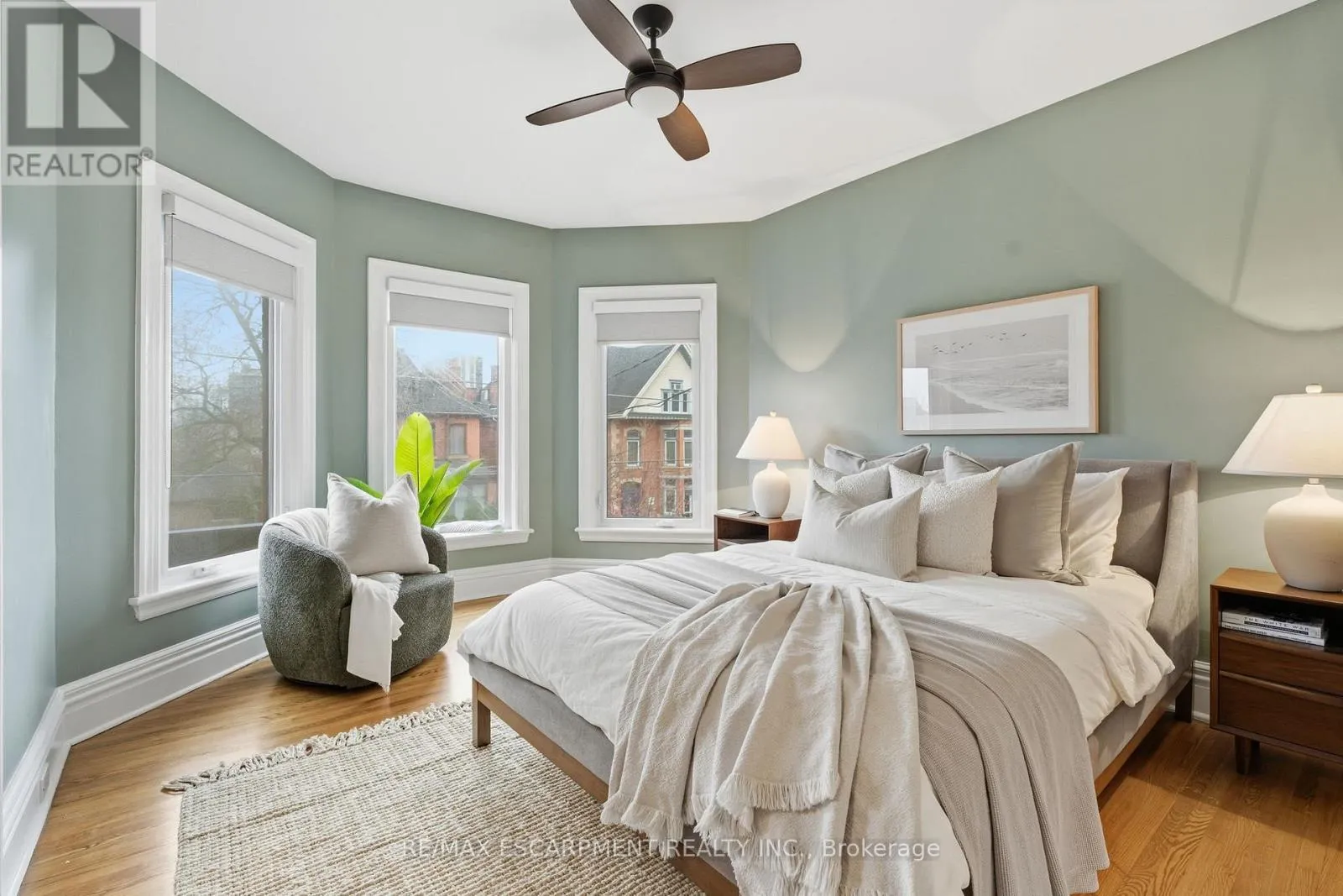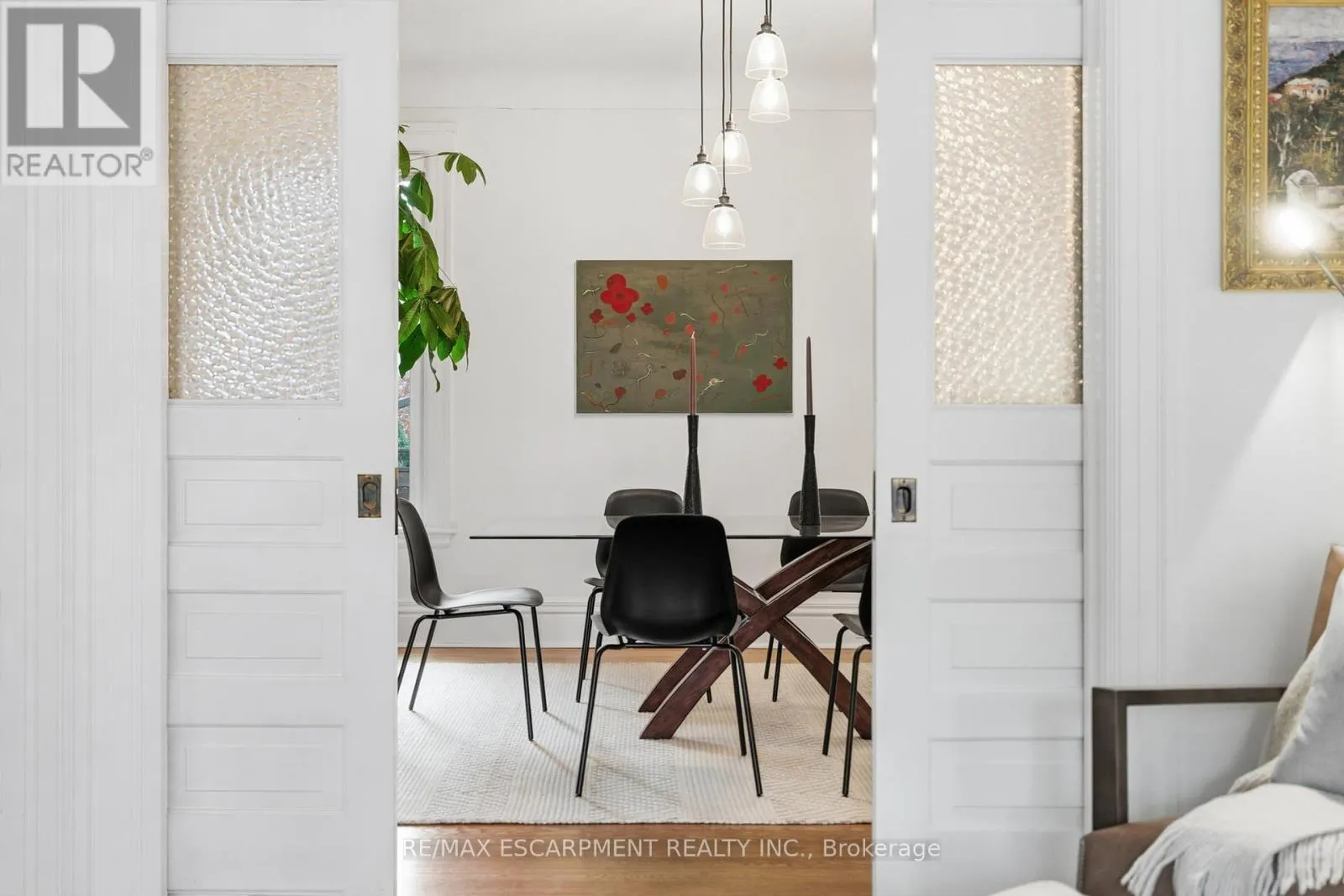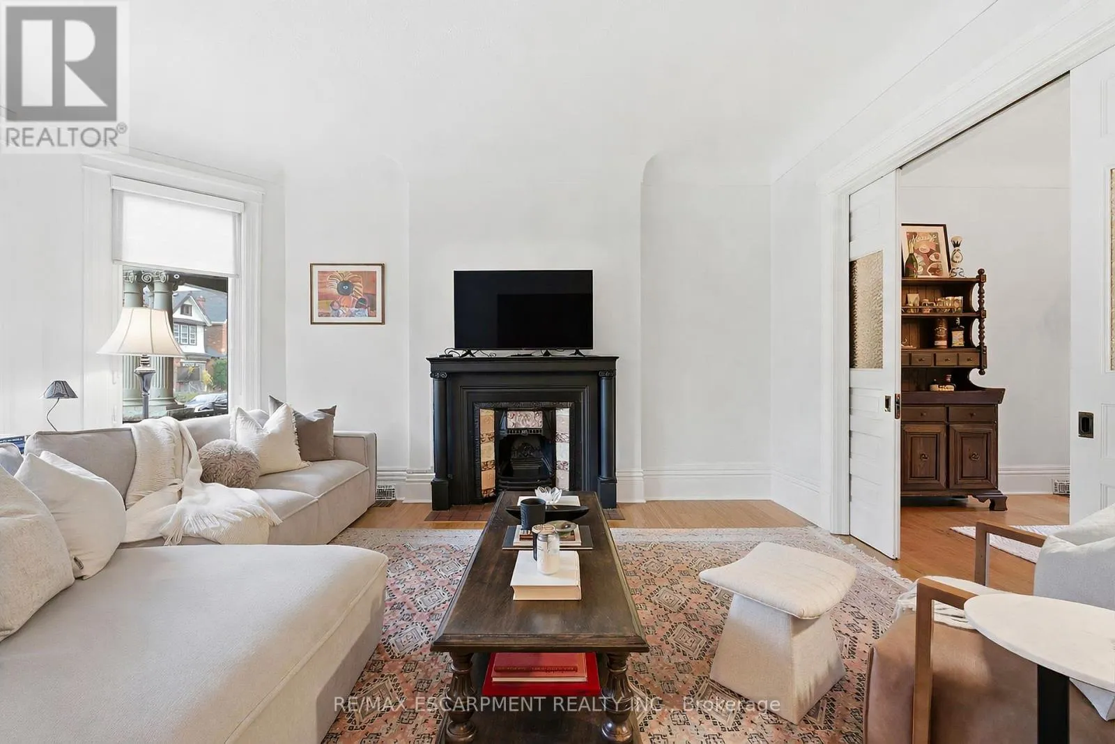 Cross Streets: Caroline St. S. ** Directions: Caroline St S and Markland. Step into a home where the charm of another era meets the ease of modern living-where sun-filled rooms, original character, and thoughtful updates create a space that feels instantly welcoming. The living room sets the tone with its beautiful bay window drawing in soft morning light and an antique fireplace mantle that anchors the space with warmth and history. Pocket doors open to the formal dining room, perfect for hosting dinner parties, holiday gatherings, and the kind of long conversations that linger well into the evening. The updated kitchen is the heart of the home-functional, inviting, and connected-with a breakfast bar overlooking the fenced backyard so you can cook while staying part of the moment. Step outside to the herringbone stone patio, a private courtyard-like setting that feels made for spring mornings, summer dinners, and relaxed evenings under the open sky. A rare rear laneway provides the convenience of private parking. A separate entrance leads to the fully finished lower level, offering a bright 1-bedroom, 1-bath suite with kitchenette-ideal for extended family, teens seeking their own space, guests, or potential supplemental income. Upstairs, the primary suite offers a peaceful retreat complete with an adjoining home office that opens onto a charming balcony-perfect for a quiet morning coffee. The generous walk-in closet and laundry room could easily be converted back into an additional bedroom if desired. The third-floor attic bedroom, with its oversized walk-in closet, feels like a storybook hideaway-perfect for kids, guests, or a creative studio. All of this is set just steps from the vibrant energy of Locke Street, with its beloved cafés, restaurants, boutiques, and neighbourhood favourites like Durand Coffee. A home rich in character, set in one of Hamilton's most walkable and cherished communities. Video contains virtually staged images. (id:27476)