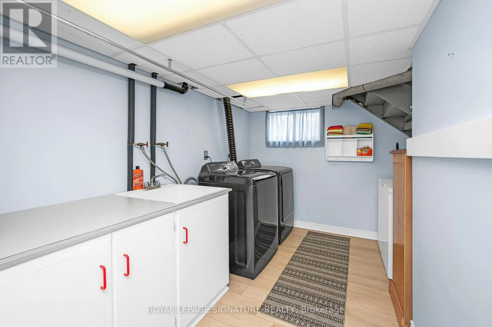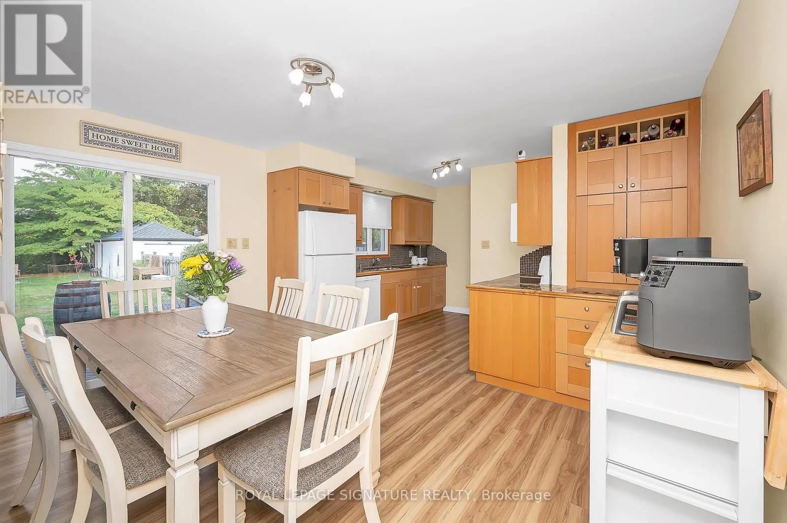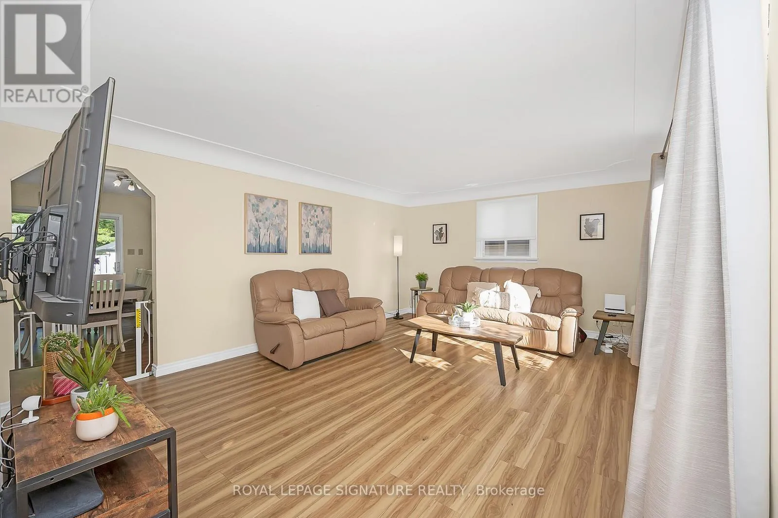 BARTON ST.E. & LAKE AVE. NORTH Nestled on the border of desirable Stoney Creek and a 5 minute drive to the new GO Station, this charming bungalow offers a blend of modern updates and cozy comfort, making it an ideal home for families and individuals alike. The property boasts a range of appealing features that enhance its practicality and aesthetic appeal. One of the key highlights is the updated kitchen, which showcases uniquely styled quartz countertops that add a touch of sophistication and elegance. The vinyl flooring throughout the home ensures durability and easy maintenance, creating a seamless flow from room to room. The main bathroom features a soothing soaker tub, perfect for relaxing after a busy day, providing a spa-like experience within the comforts of home. The principal bedroom is spacious and includes a substantial wardrobe, offering ample storage space for clothing and personal items. For entertainment and family gatherings, the large recreation room stands out with its vinyl flooring and trendy industrial-style open ceiling, creating a modern and inviting atmosphere for leisure and social activities. Additional storage and practicality are catered to by the furnace room, which provides generous space for storage and a workshop area, making it convenient for home projects and organizational needs. Step outside to discover a large deck and an enormous backyard backing onto green space, creating a private oasis for outdoor activities. The backyard's size and enclosed design make it perfect for families with children and pets, offering a secure environment for outdoor play. Furthermore, a separate garage located at the back of the property with side access provides additional parking and storage options. The overall layout and features of this bungalow make it a perfect family home or a peaceful retreat for anyone seeking comfort, style, and functionality. (id:27476)