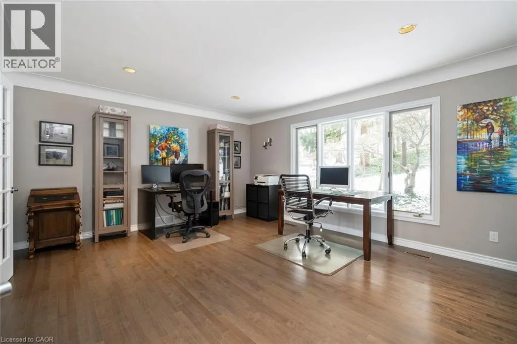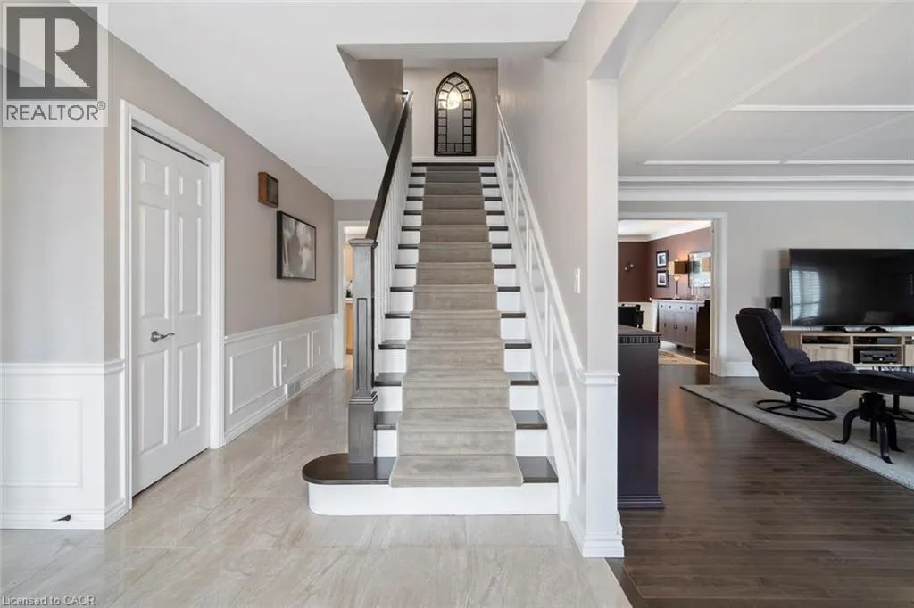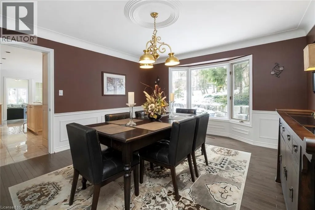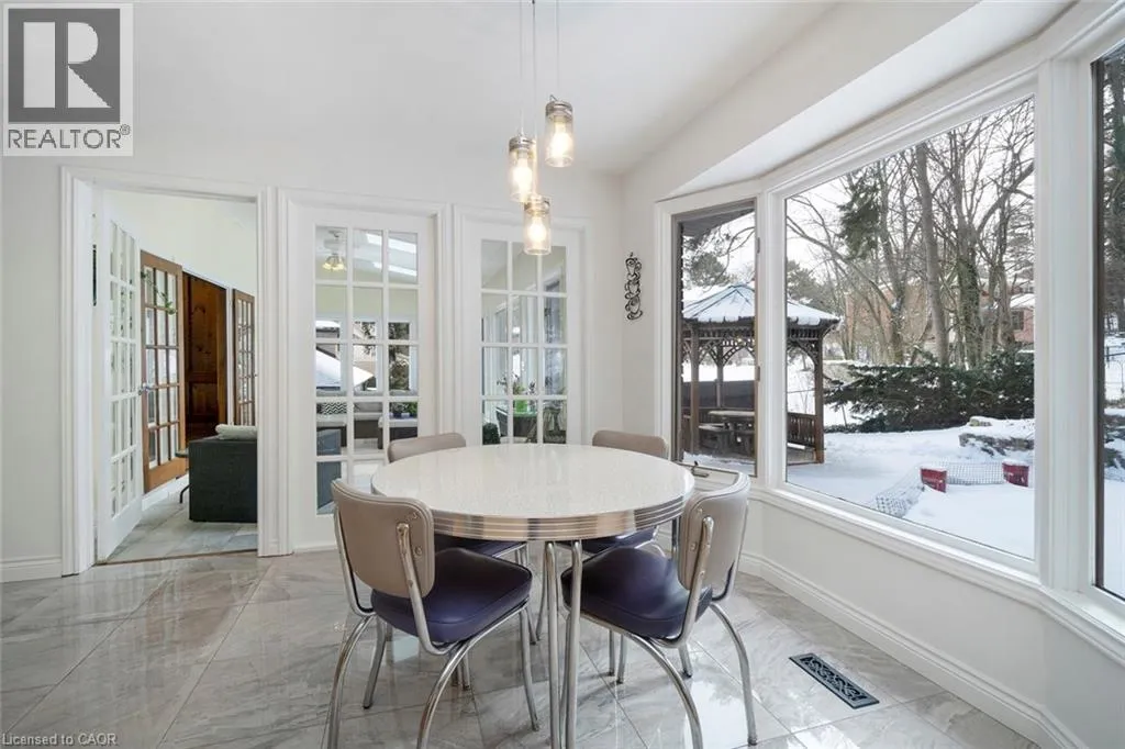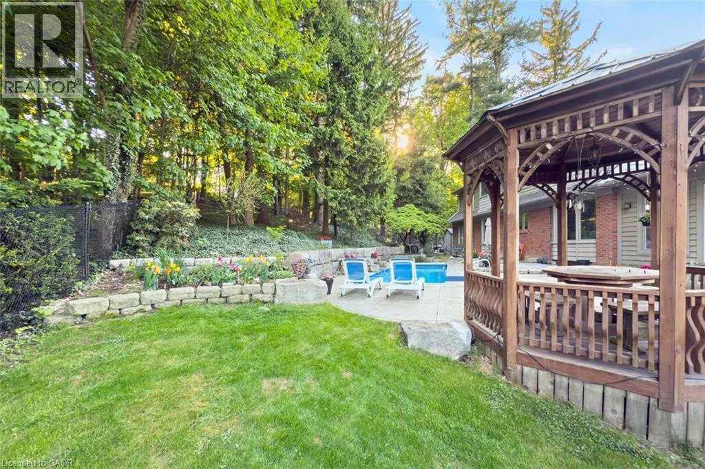 Lime Kiln to Broadleaf to Briar Hill to Stonegate Drive Imagine waking up every morning to your very own cottage-in-the-city, surrounded by the sights and sounds of nature! With almost 4,000 sq. ft. on the main and upper levels plus a finished basement, transform this floor plan to your personal needs. Grand principle rooms and multiple bonus spaces offer much flexibility! Wonderful potential for large families and business-from-home with lower level garage entry and separate side entrance. Travel to the end of this rarely visited cul-de-sac to find #18 Stonegate Drive peacefully perched amongst mature trees. An idyllic setting! Avid outdoor enthusiasts will enjoy the path on Stonegate Drive connecting to Ancaster Heights park and cycling/hiking trails. This stately property with expansive 142FT X 142FT lot comes to life in summer amongst mature gardens, heated salt water pool with waterfall, privacy from neighbours and numerous outdoor zones to enjoy! The main level is a rare find with a sprawling layout that generously separates gathering spaces, with suitability for multigenerational living or avid hosts. Hardwood flooring, two fireplaces, cathedral ceilings, oak accents and classic wainscotting elevate the main level spaces. Embrace views from both the cheery sunroom and eat-in kitchen during meal prep and coffee hour. Read, relax and enjoy your favourite hobby with the great outdoors as your backdrop! The upper level with 3 bedrooms includes primary suite with walk-in closet and bonus dressing room, flexible for potential 4th bedroom transformation. Donât miss the spa-like ensuite with soaker tub and glass shower. Better yet? Offering an additional bedroom, bathroom, wet bar, fitness room and games room, the lower level creates separation for extended living. While amenities, restaurants and Hwy access are withinâ mere minutes, this Ancaster paradise feels like youâre a world away from the hustle and bustle!. Come explore the road less travelled to a hidden gem of a location that exudes serenity, peace & calm! RSA (id:27476)