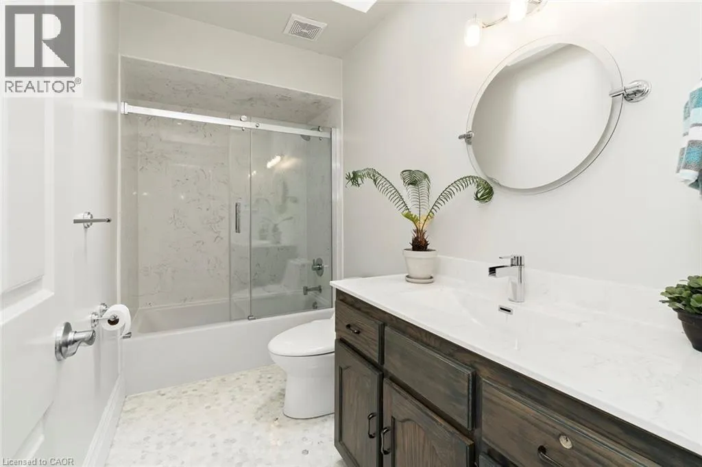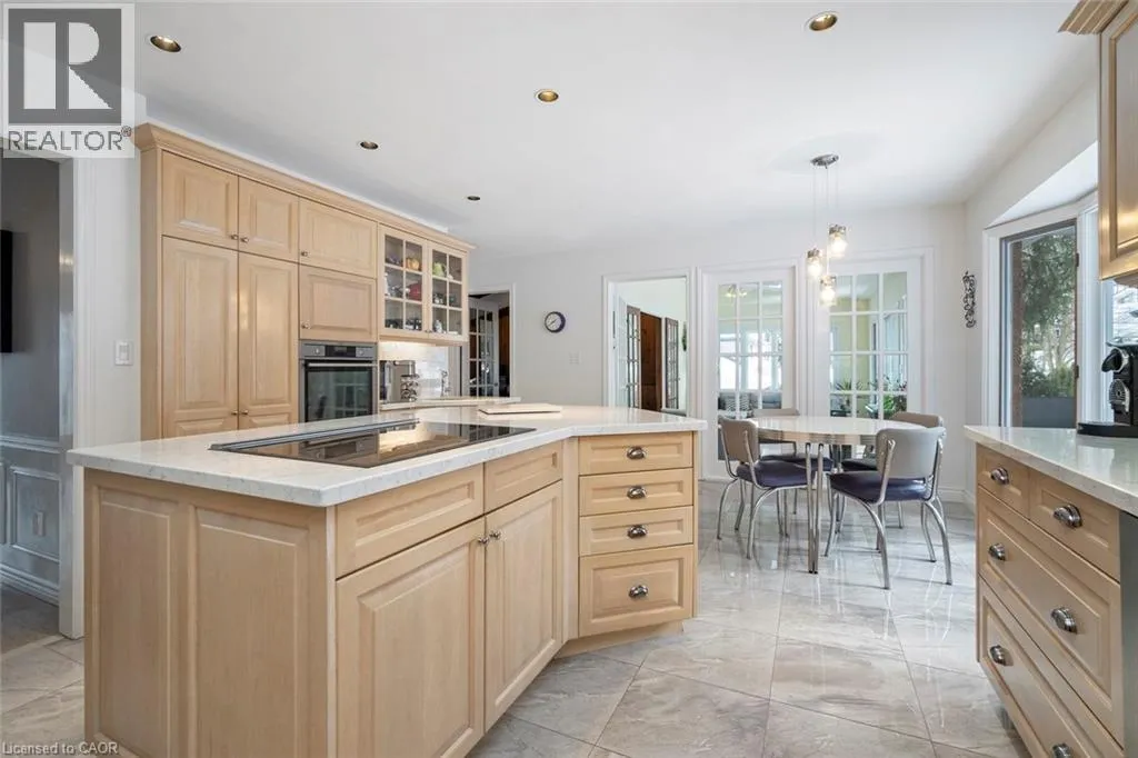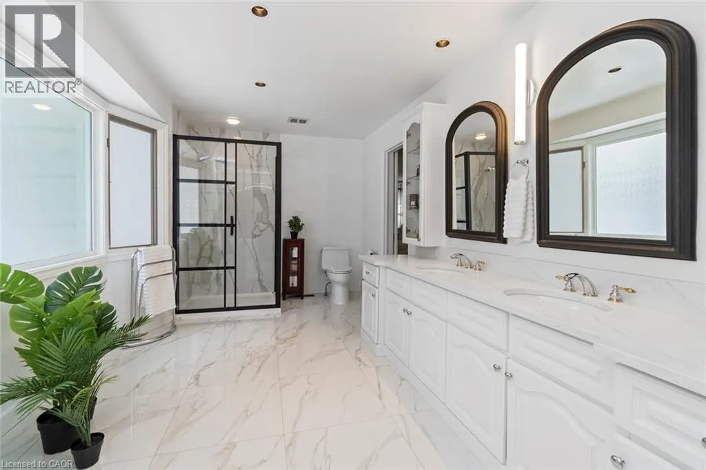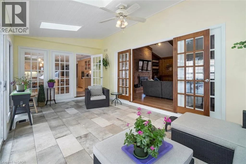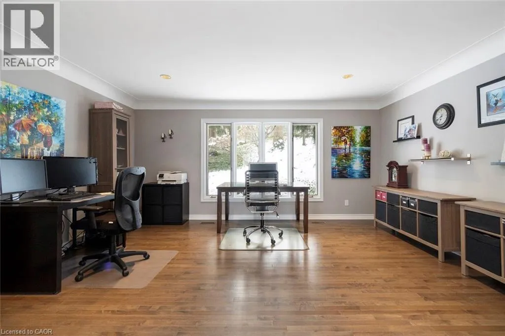 Lime Kiln to Broadleaf to Briar Hill to Stonegate Drive Imagine waking up every morning to your very own cottage-in-the-city, surrounded by the sights and sounds of nature! With almost 4,000 sq. ft. on the main and upper levels plus a finished basement, transform this floor plan to your personal needs. Grand principle rooms and multiple bonus spaces offer much flexibility! Wonderful potential for large families and business-from-home with lower level garage entry and separate side entrance. Travel to the end of this rarely visited cul-de-sac to find #18 Stonegate Drive peacefully perched amongst mature trees. An idyllic setting! Avid outdoor enthusiasts will enjoy the path on Stonegate Drive connecting to Ancaster Heights park and cycling/hiking trails. This stately property with expansive 142FT X 142FT lot comes to life in summer amongst mature gardens, heated salt water pool with waterfall, privacy from neighbours and numerous outdoor zones to enjoy! The main level is a rare find with a sprawling layout that generously separates gathering spaces, with suitability for multigenerational living or avid hosts. Hardwood flooring, two fireplaces, cathedral ceilings, oak accents and classic wainscotting elevate the main level spaces. Embrace views from both the cheery sunroom and eat-in kitchen during meal prep and coffee hour. Read, relax and enjoy your favourite hobby with the great outdoors as your backdrop! The upper level with 3 bedrooms includes primary suite with walk-in closet and bonus dressing room, flexible for potential 4th bedroom transformation. Donât miss the spa-like ensuite with soaker tub and glass shower. Better yet? Offering an additional bedroom, bathroom, wet bar, fitness room and games room, the lower level creates separation for extended living. While amenities, restaurants and Hwy access are withinâ mere minutes, this Ancaster paradise feels like youâre a world away from the hustle and bustle!. Come explore the road less travelled to a hidden gem of a location that exudes serenity, peace & calm! RSA (id:27476)