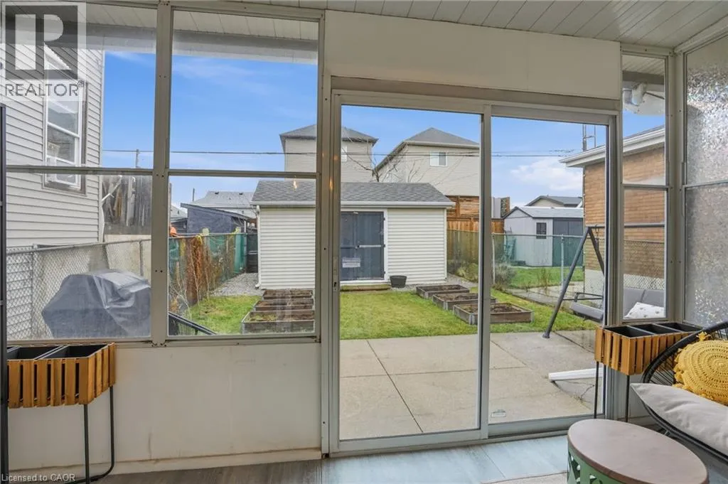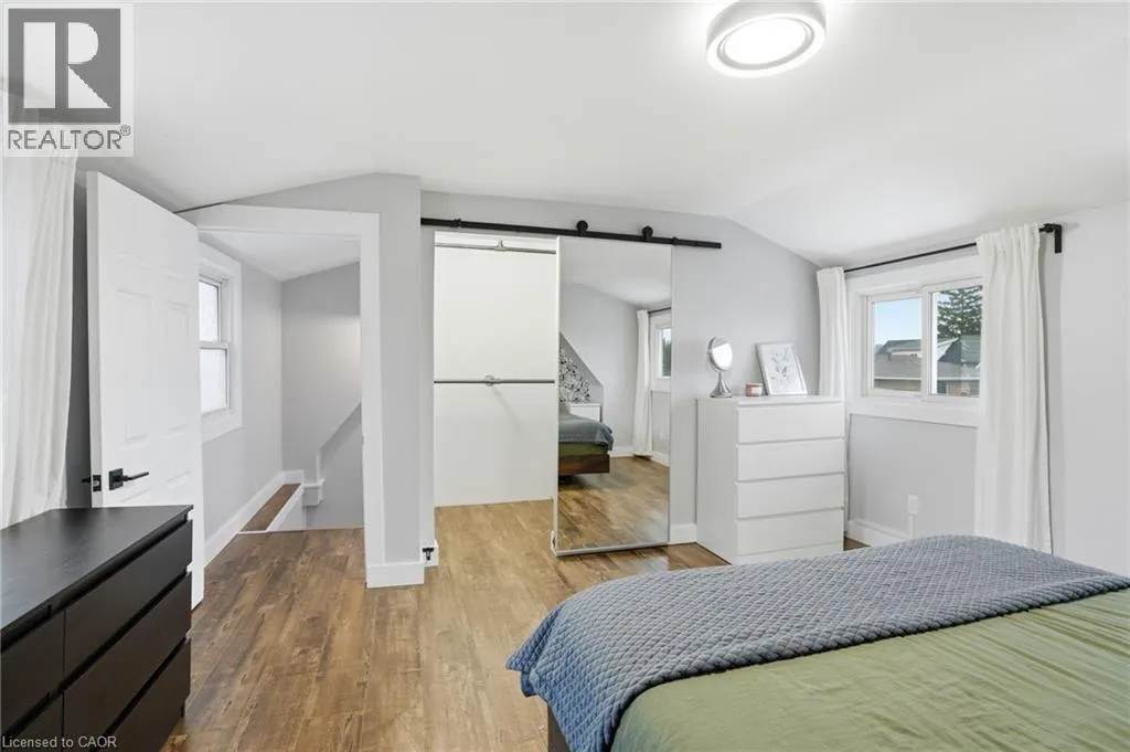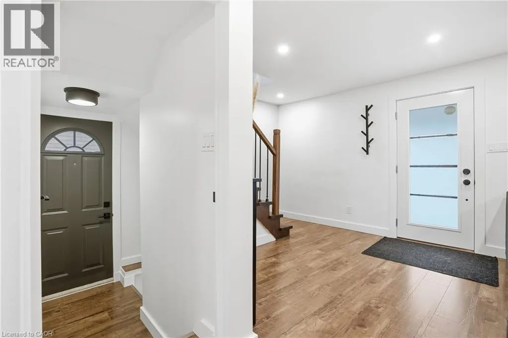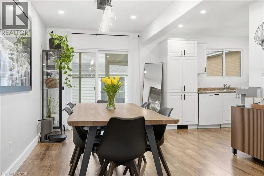 Looking for your first home or hoping to downsize without the compromises of condo living? This charming home could be the perfect fit. With 1+1 bedrooms and two full bathrooms, it offers a thoughtful layout and comfortable living spaces throughout. A welcoming covered front porch provides the ideal spot to relax and enjoy warm evenings, while the concrete driveway offers convenient parking for two vehicles. The open-concept main floor is bright and inviting, highlighted by a stylish barn board feature wall in the living room that adds warmth and character. The kitchen flows seamlessly into a spacious dining area that can easily accommodate family gatherings and dinner parties. The main level also features a renovated four-piece bathroom. The hardwood staircase leads to a large primary bedroom upstairs, complete with an impressive walk-in closet that provides plenty of storage. The lower level adds even more versatility with a separate entrance, a generous family room, and a second bedroom that is perfect for guests or a private teen retreat, complete with its own full bathroom. At the back of the home, a charming sunroom off the dining area opens to the backyard, where youâll find a concrete patio and a large garden shed for additional storage. Ideally located within walking distance to schools, parks, and the Red Hill Valley Trail, this home also offers quick access to Highway 8, the Red Hill Parkway, and a wide range of shopping and everyday amenities. Itâs a wonderful opportunity to enjoy comfortable, low-maintenance living in a fantastic location. Donât be TOO LATE*! *REG TM. RSA. (id:27476)