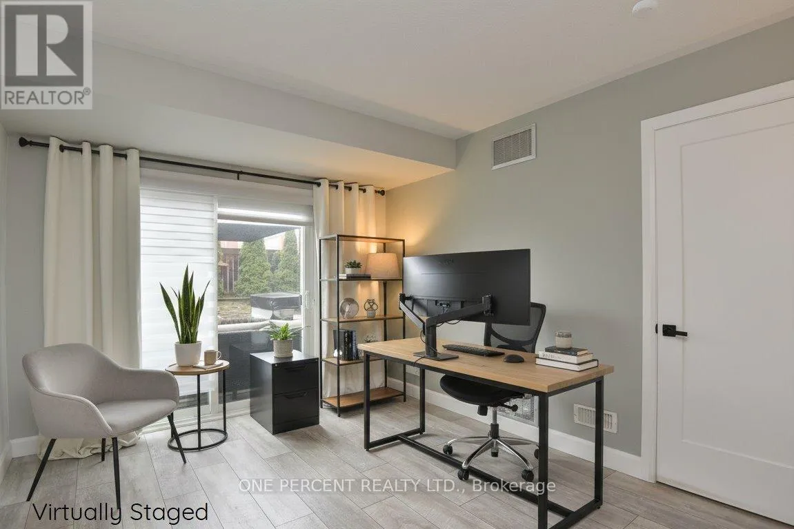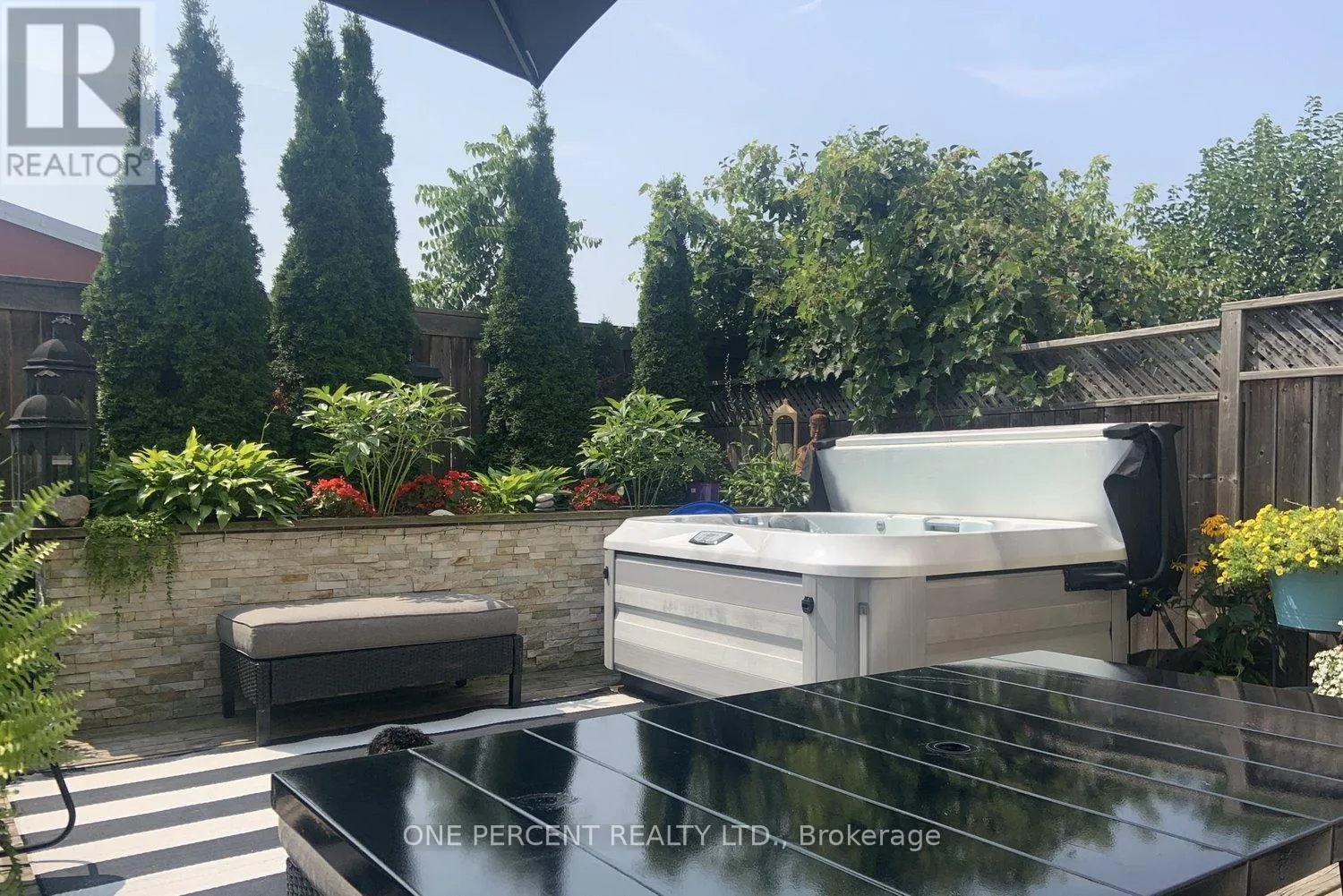 Cross Streets: Kitty Murray Lane. ** Directions: Garner Rd E to Kitty Murray Ln to Emick. BEAUTIFULLY UPDATED 2+1 Bed, 4 Bath FREEHOLD Townhome in the Desirable Meadowlands. NO Road Fee! NEW SS Dishwasher, Microwave & Light Fixtures (2026) Washer/Dryer (2025) Doors, Trim & Upper Lvl laminate Flooring (2025) Main & Lower Lvl Flrs (2019). EVERY Level Conveniently provides a Powder Rm! Primary Suite boasts a 2Pc Ensuite & Spacious Walk In Closet. Two Large Bedrooms Upstairs with 1.5 Baths. The Bright, Spacious Eat-In Kitchen Opens Up to the Living Rm & Features Elegant Quartz Counters, a Dining Area PLUS a Breakfast Bar- Great Flow for Entertaining! The Finished Lower Lvl can be used as a 3rd Bedroom, Office or Den with Natural light pouring in from the Sliding Glass Doors. Flex Living Space! Walk Out to your Tranquil, Maintenance-Free Backyard Oasis! With no rear neighbours, you can Relax in your High-End Self Cleaning HOT TUB (2021). A Fully Fenced Private Retreat! The Garage offers Inside Entry into the Laundry Rm with a Sep Entrance door to the backyard. Fantastic Location within Steps to a Golf Range, Mini Putt & Redeemer University. Easy Hwy 403 Access. Shopping & Restaurants nearby. This Gorgeous home is Move-In Ready! A Must See! (id:27476)