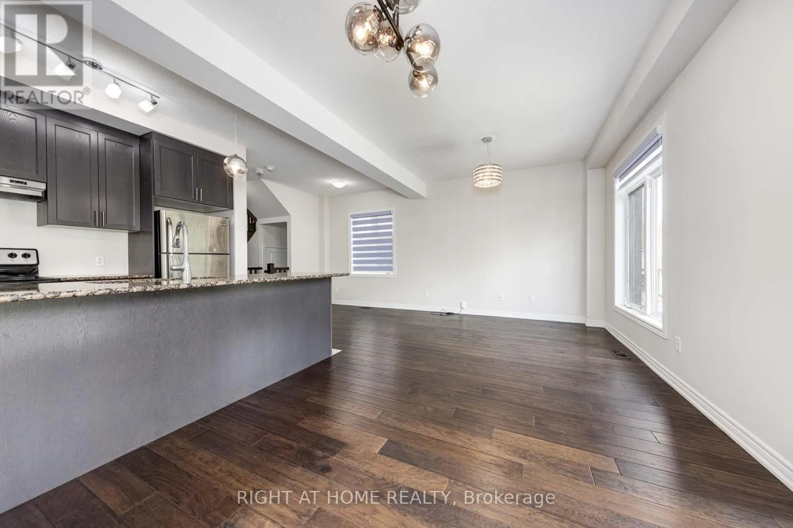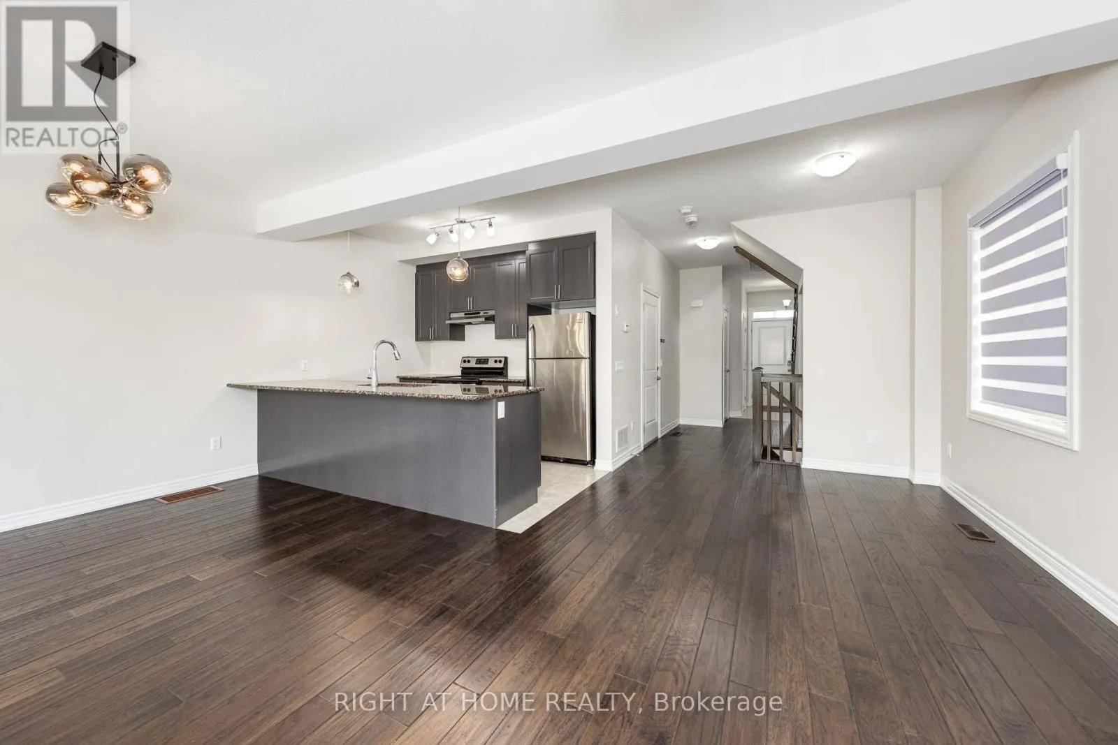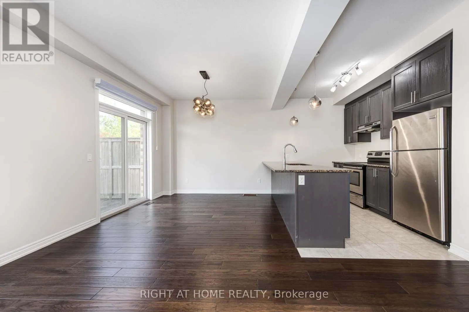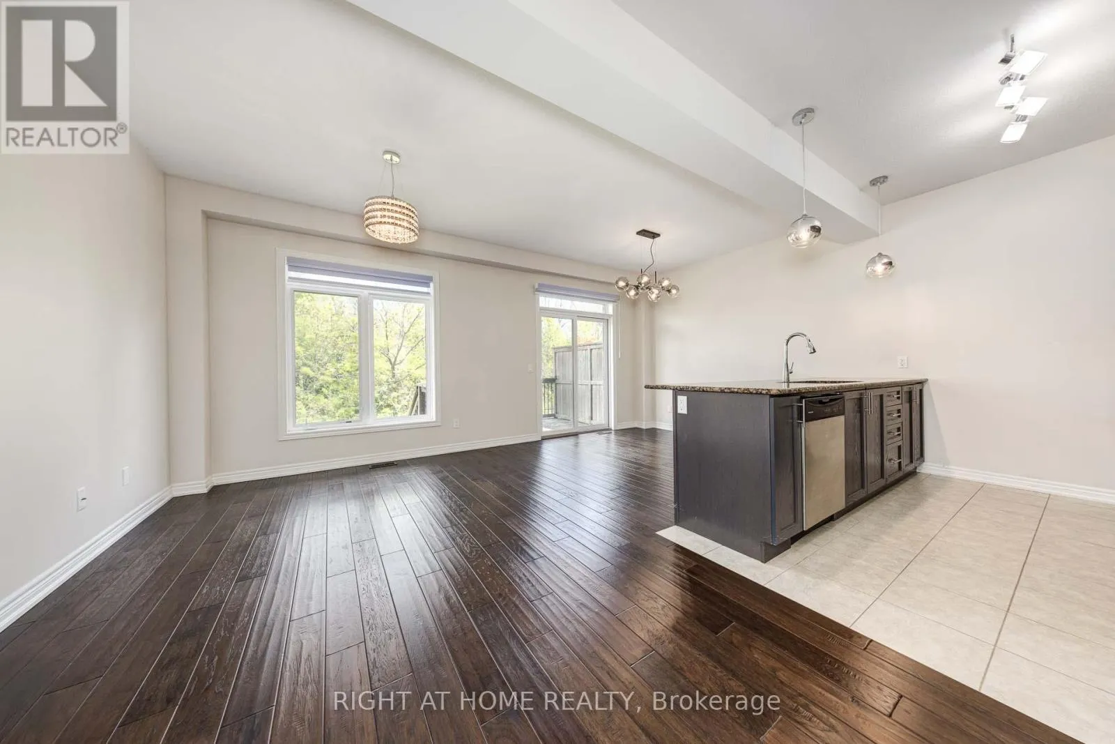 Cross Streets: Frances Ave. ** Directions: Frances Ave to Southshore Cres. Welcome To This Stunning 3 Bedroom, 2.5 bath 2 Storey Freehold Townhouse. This townhouse sounds like a fantastic find! Nestled in the sought-after Waterfront Trails community, it offers a low-maintenance lifestyle with no need to shovel snow or cut grassperfect for effortless living. This bright end-unit, backs on to Green space, Open Concept Layout, Closet & Garage Access from Large Foyer. Design ensures plenty of natural light, complemented by 9-ft ceilings and maple engineered hardwood on the main floor and matching Stairs. The Berber carpet upstairs adds warmth and comfort. The kitchen is a standout, featuring dark oak cabinets and granite countertops, creating a stylish and functional space. The primary bedroom boasts its own ensuite and walk-in closet, plus a spacious den for added versatility. Beyond the home itself, the location is steps from the beach pathway, parks, schools, shopping, and major highways like the QEW and Red Hill Expressway. With fresh paint and new light fixtures, its truly move-in ready. Freehold town with a $120/month association fee, covers Snow Remove, landscaping (id:27476)