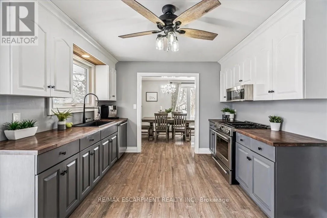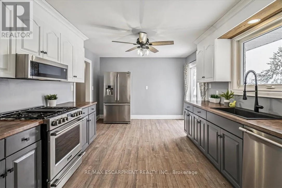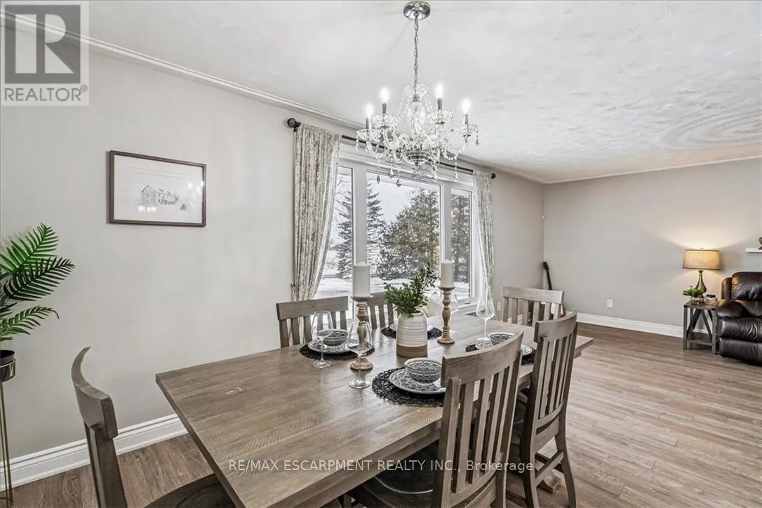 Cross Streets: Hall. ** Directions: Hwy 56 to Hall Road to Trinity Church. Nestled on a quiet dead-end street and backing onto picturesque farmers' fields, this exceptional property offers the perfect blend of peaceful country living just minutes from the city. This tastefully updated home features a single-car garage with inside entry and a spacious driveway providing ample parking. The bright, modern kitchen boasts large windows, newer appliances, and a walkout to the deck-ideal for enjoying the serene surroundings. Adjacent to the kitchen is a generous dining area that flows seamlessly into the inviting living room. Completing the main level is 3 well-sized bedrooms and a five-piece bathroom. The fully finished basement adds valuable living space with an additional bedroom, a large bathroom, ample storage, and a comfortable living area with built in speakers. Updates include windows (2014), basement waterproofing (2014), an owned hot water tank (2019), furnace and AC (2019), Cistern pump (2023), Sump pump and battery backup (2021), updated plumbing and duct work (2018) and paved driveway (2022). Enjoy the tranquility of rural views with the convenience of city amenities just minutes away. (id:27476)