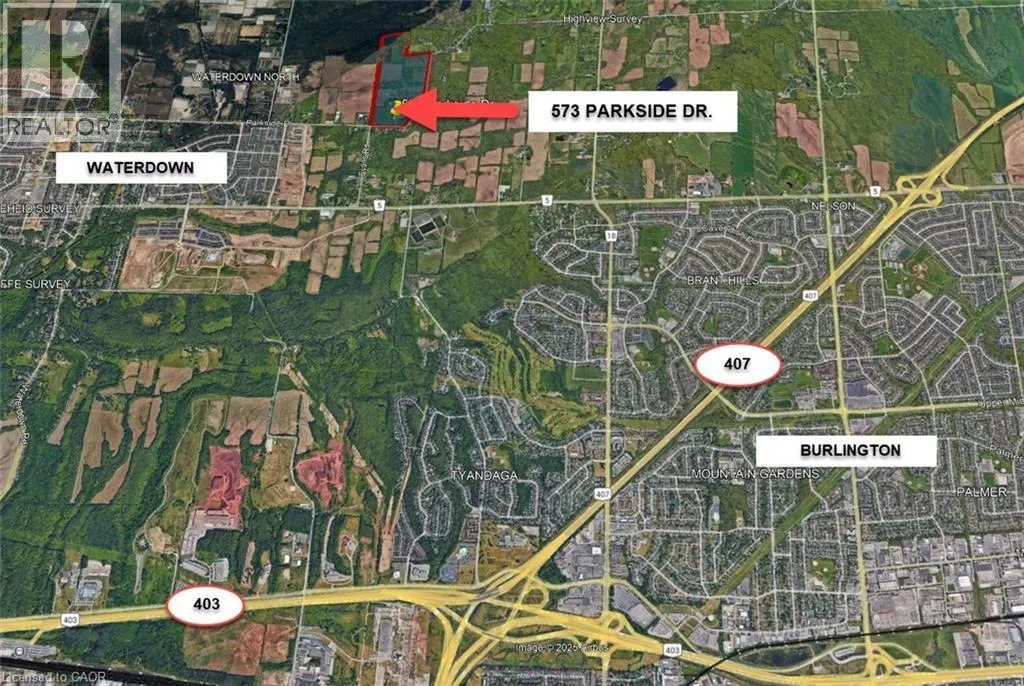 Turn North West onto Parkside Drive from Hwy 6 Welcome to 573 Parkside Drive! A truly rare offering with 116.5 acres of prime farmland on the outskirts of Waterdown. Featuring a 2,785 sq. ft. 2 story brick farmhouse, and a beautiful old wood bank barn that was formerly used as a destination fruit and bake shop. This expansive property is just minutes from Burlington, Hamilton, and major commuter routes, with quick access to Hwy 6, the QEW, and the 403. Zoned A2 and P7, the land offers incredible versatility, ideal for continued agricultural use, a dream estate, horse and hobby farming, or even a wedding and event venue that takes advantage of the charming farmhouse and historic barn. The fertile acreage also supports cash crops, orchards, or farm-to-table opportunities. With steady growth in the Hamilton-Waterdown area and multiple subdivision proposals nearby, it also represents an exceptional long-term buy and hold investment (subject to approvals). Featuring established road frontage, proximity to municipal services, and surrounded by active development, 573 Parkside Drive is a one-of-a-kind opportunity that blends country charm, future potential, and unmatched location. (id:27476)