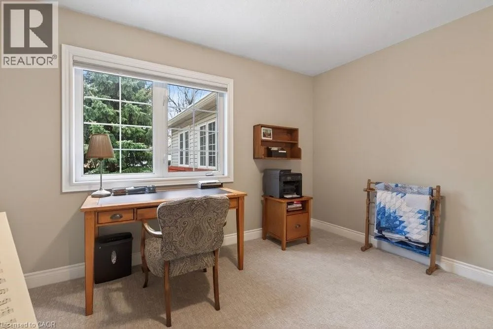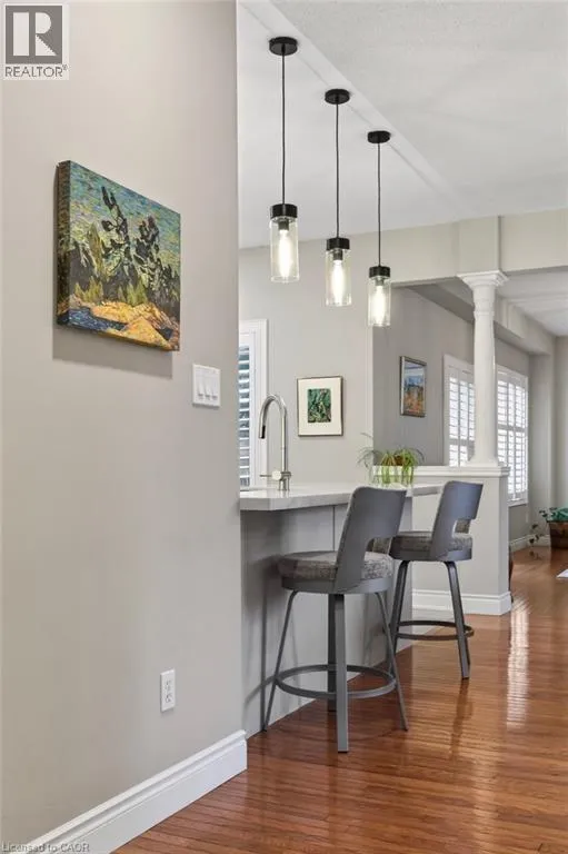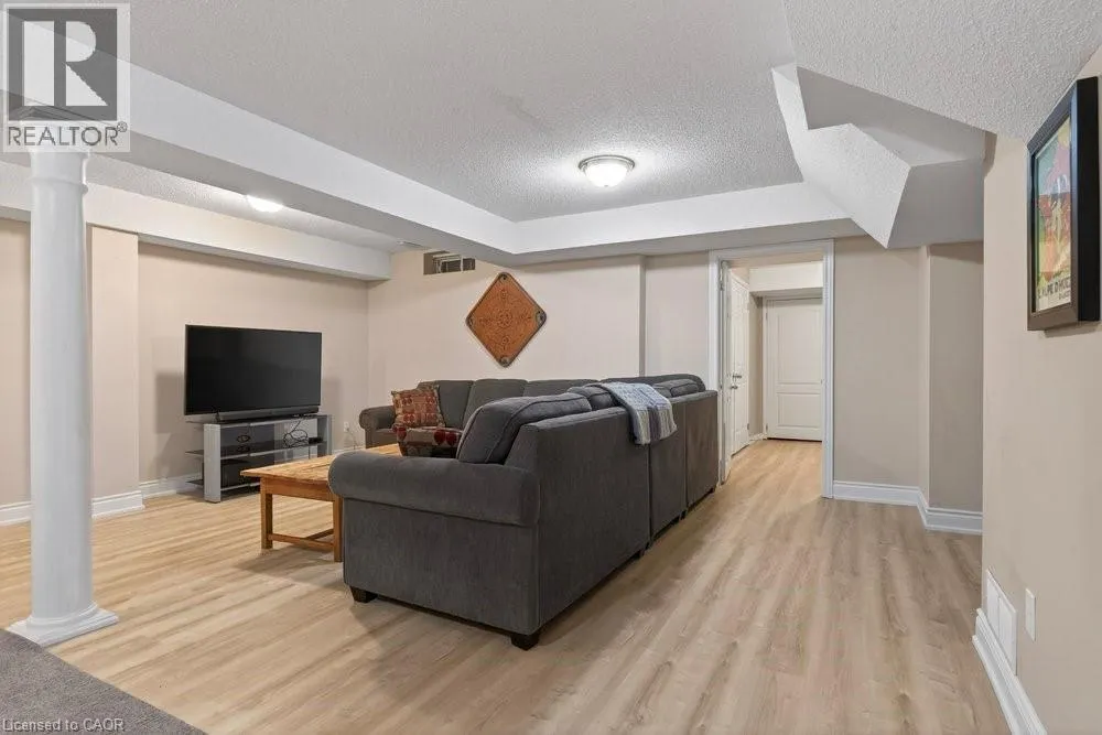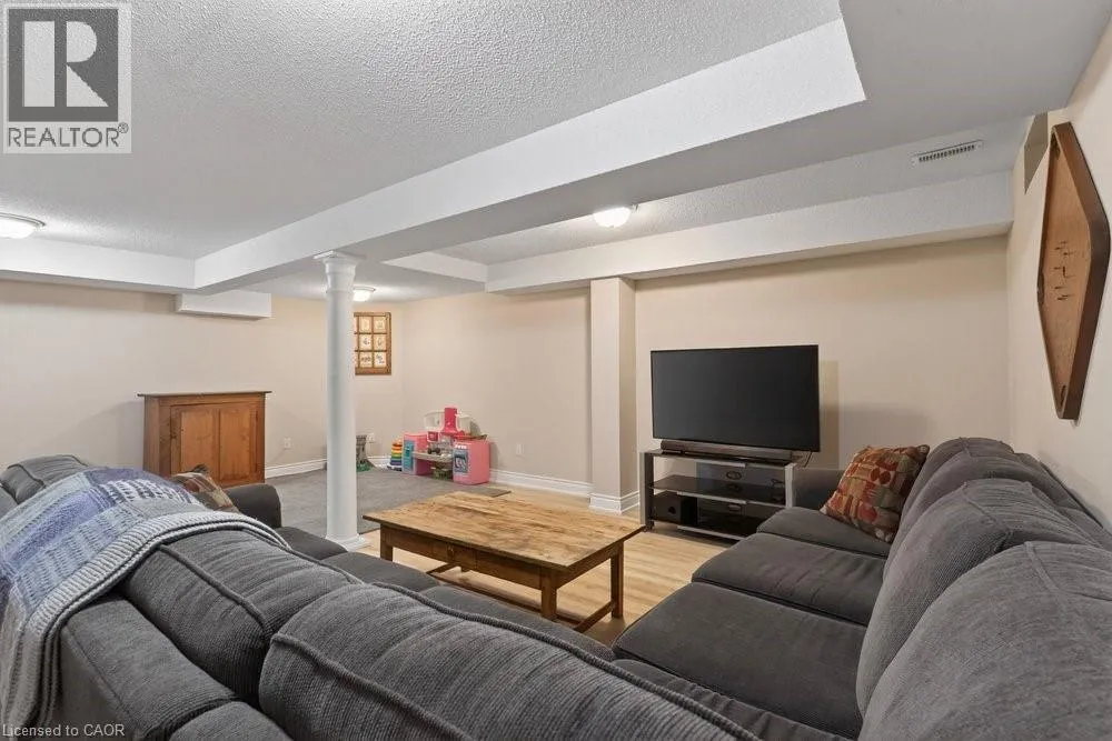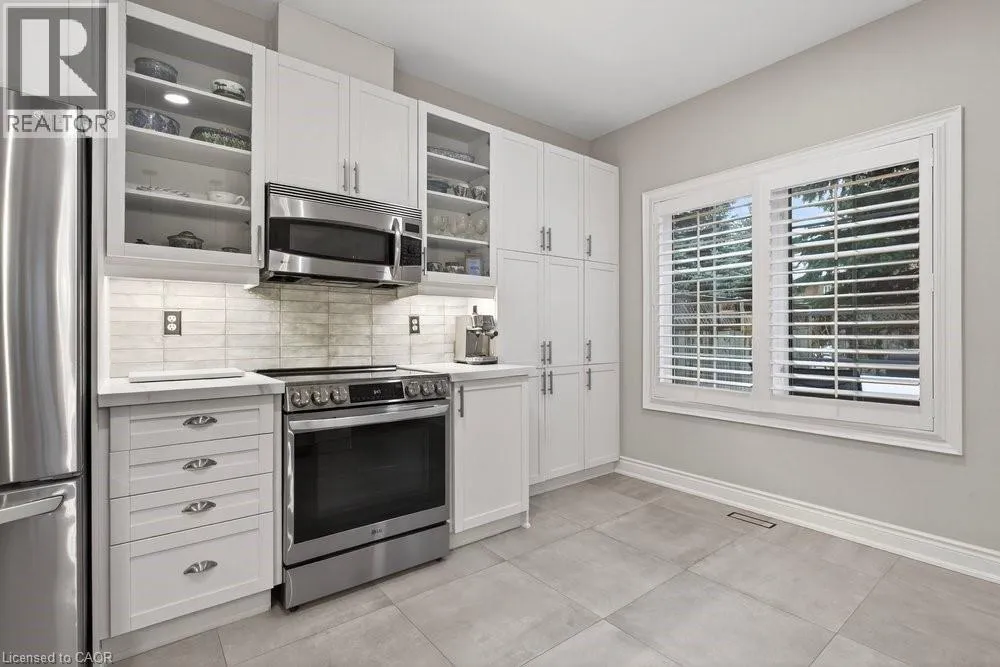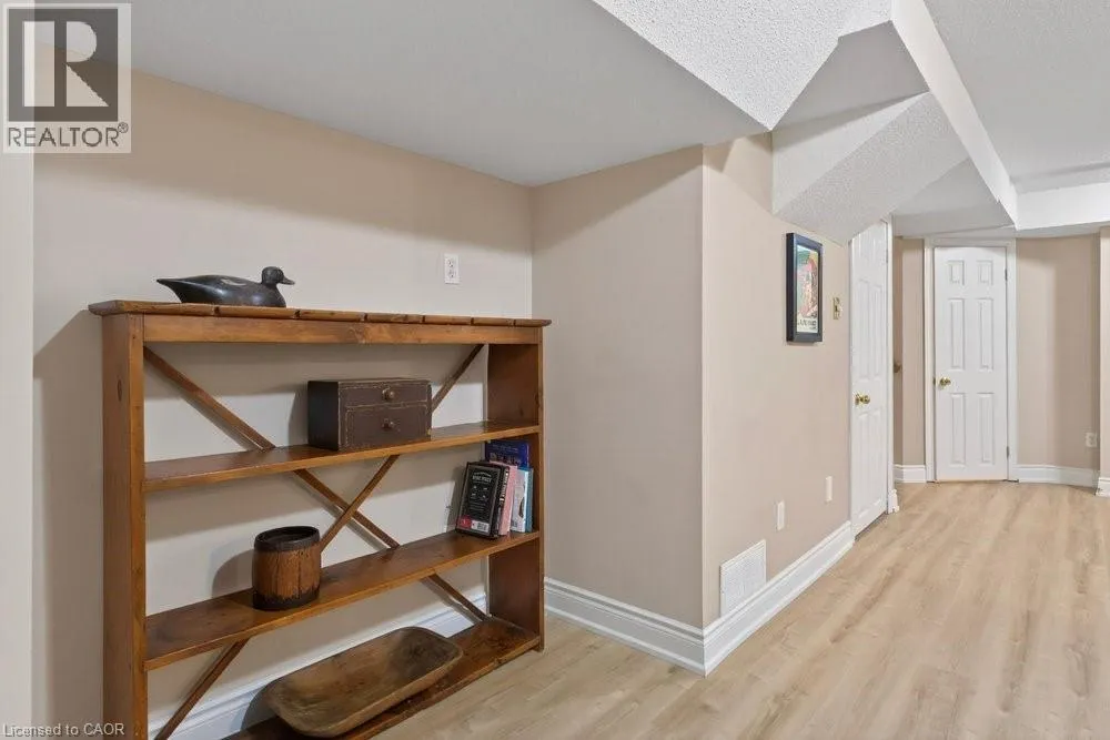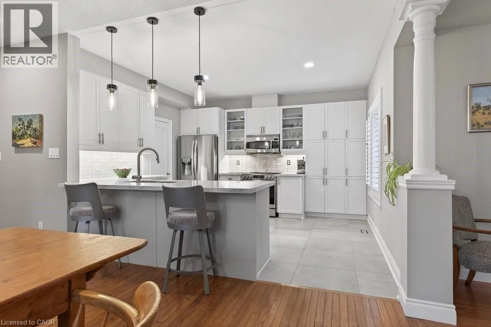 ABERDEEN TO STUDHOLME RD TO BEDDOE DR TO 100 Complex entry Welcome to this bright end-unit townhome with the rare feature of a double-car garage, located in the Fairways at Chedoke of the south Kirkendall community. Beautifully maintained, this home offers a wonderful blend of comfort, convenience, and a low-maintenance âlock-and-goâ lifestyle. Extra windows unique to end units fill the home with natural light. The main level welcomes you with a two-storey foyer that opens to the living and dining rooms, highlighted by gleaming hardwood floors and a cozy gas fireplace. Sliding doors lead to your private deck and yardâperfect for relaxing or entertaining. The stunning kitchen is designed for everyday living and hosting, featuring abundant cabinetry, quartz countertops, a peninsula for casual seating, tile backsplash, and stainless steel built-in appliances, including an induction stove. Upstairs, the spacious primary suite offers two closets, including a walk-in, and a 5-piece ensuite with separate shower and soaker tub. Two additional bedrooms and a 4-piece bath complete the level. California shutters enhance most windows, while blackout blinds in the bedrooms add comfort. Extended living space in the fin'd bsmt. with a large Rec room, a den or gym, a 3-piece bathroom, and storage. A main-floor powder room and laundry with inside entry from the garage add convenience. Enjoy views of Chedoke Golf Course as you come and go. 100 Beddoe Drive offers visitor parking and a central park with walking path and playground. Monthly condo fees of $494.23 include exterior maintenance and insurance, common elements, snow removal, landscaping, and water. Steps to Chedoke Golf Course, the Bruce Trail, conservation lands, and scenic walking paths, and just minutes to schools, McMaster University, Innovation Park, Locke Street Village, and Westdale Village. With easy access to the 403, GO Transit, and bus routes, commuting is simple. Flexible possession available, including the possibility of an early closing. (id:27476)