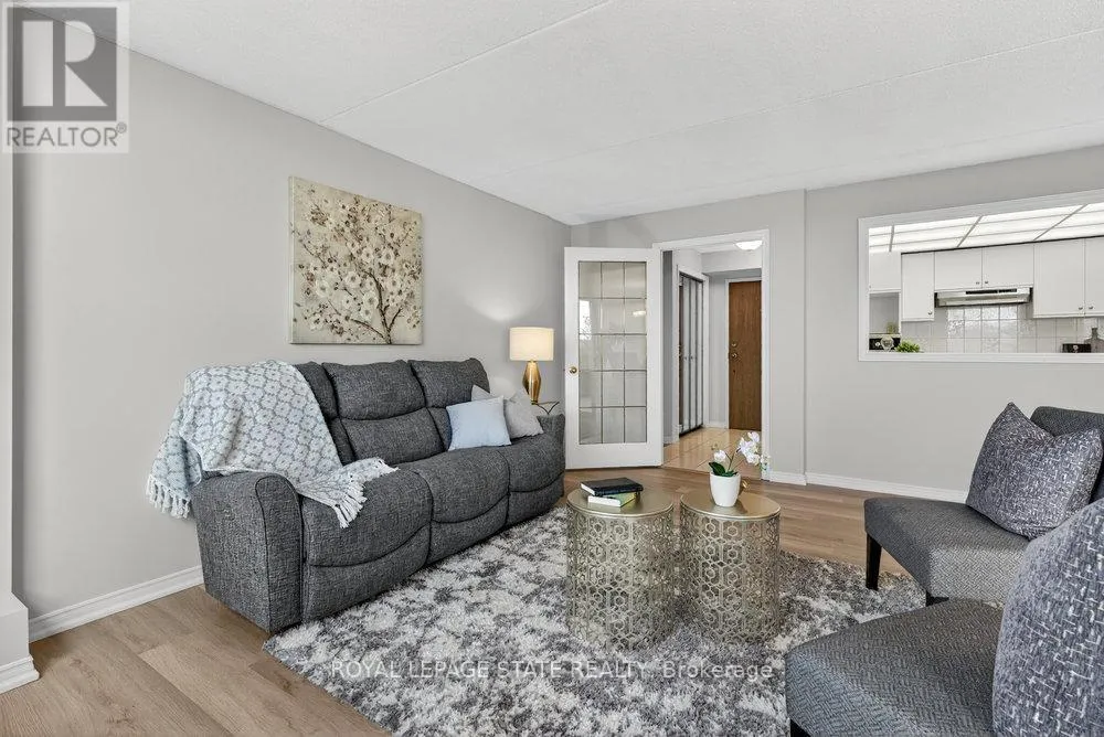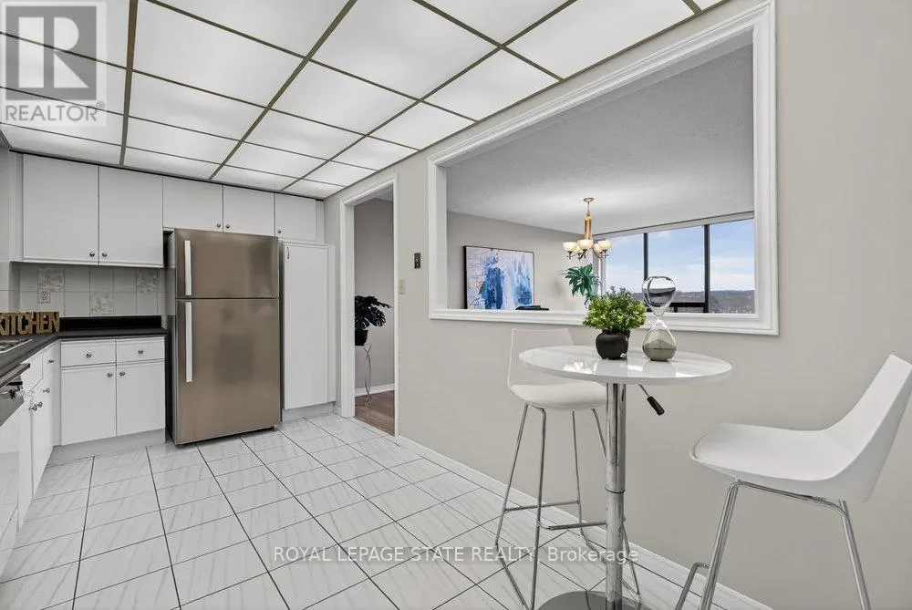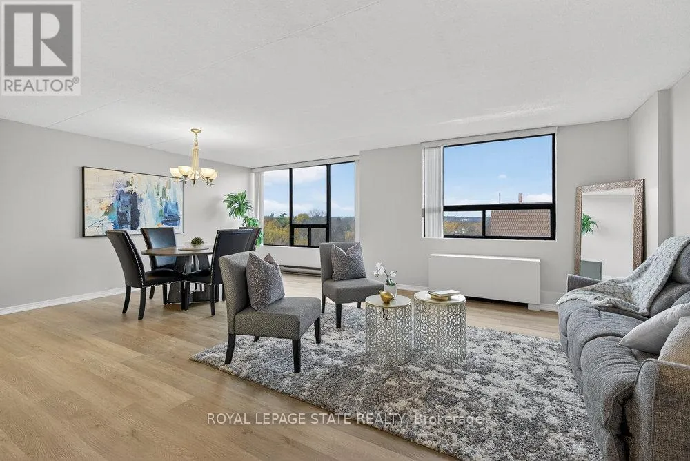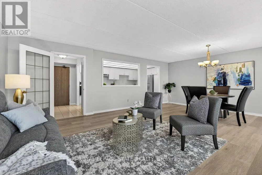 Cross Streets: Highway #8. ** Directions: west on Highway #8 - left onto Donn Ave. Highly sought-after "Florentine" building just steps from public transit, Confederation GO Station, shopping, dining, pharmacies, and countless everyday conveniences. This bright and spacious west-facing unit offers beautiful sunsets, featuring 2 bedrooms, 2 bathrooms, a massive living area, huge kitchen, and more. Views of the ravine through large picture windows. Enjoy open-concept living and dining areas with stylish hardwood-look vinyl flooring, and an eat-in kitchen with ample cabinetry and counter space. The generously sized primary bedroom easily fits a king-size suite and includes a 3-piece ensuite with a step-in shower and an extra linen closet. The second bedroom is also spacious, and the main bath features a relaxing tub to soak in. In-suite laundry adds everyday convenience. The building offers excellent amenities including a fitness room, party room, games room & underground parking. A prime location with everything at your doorstep-this is one you won't want to miss! (id:27476)