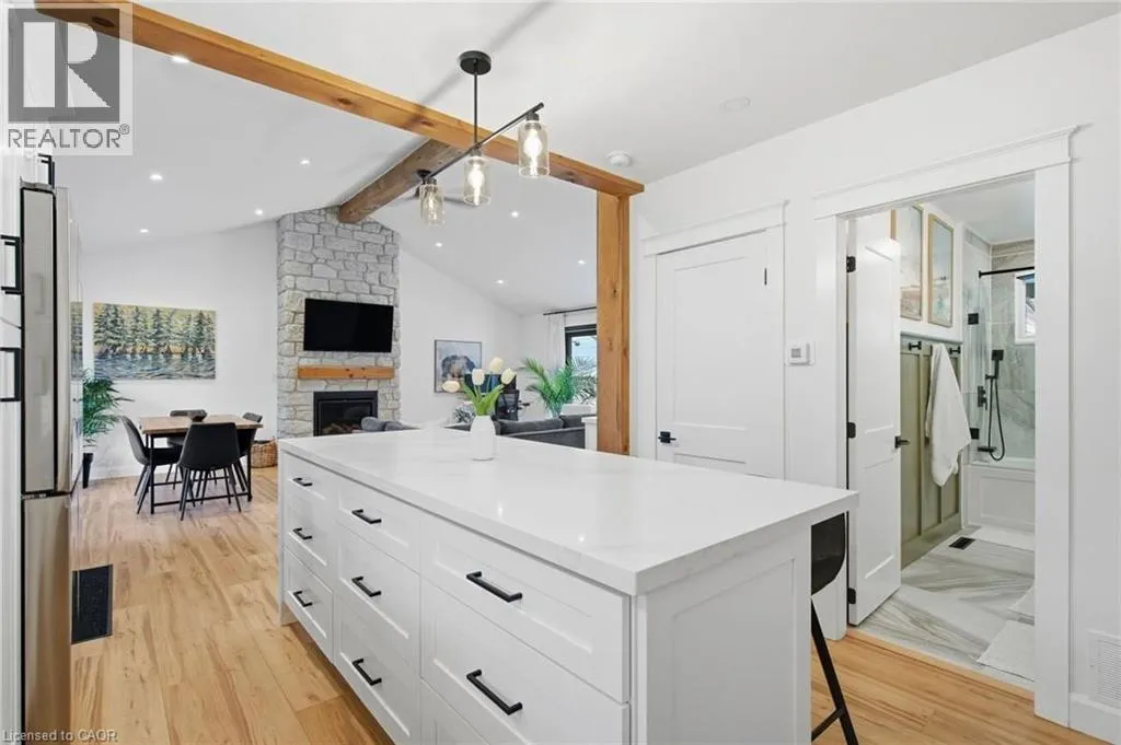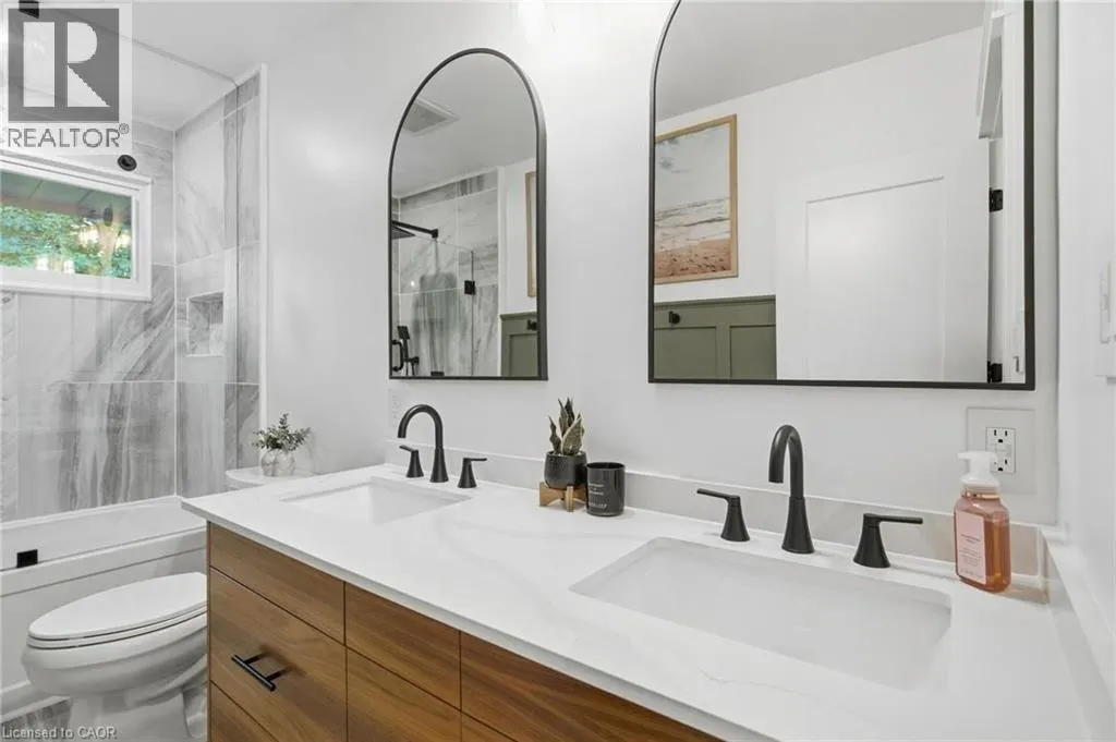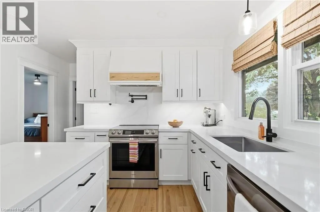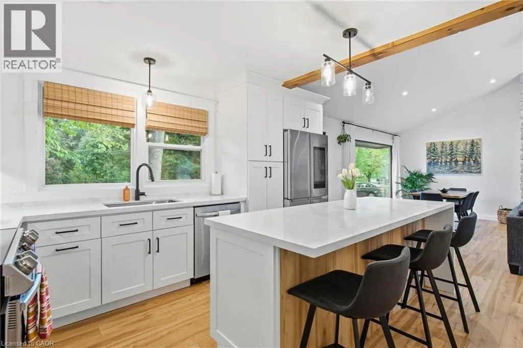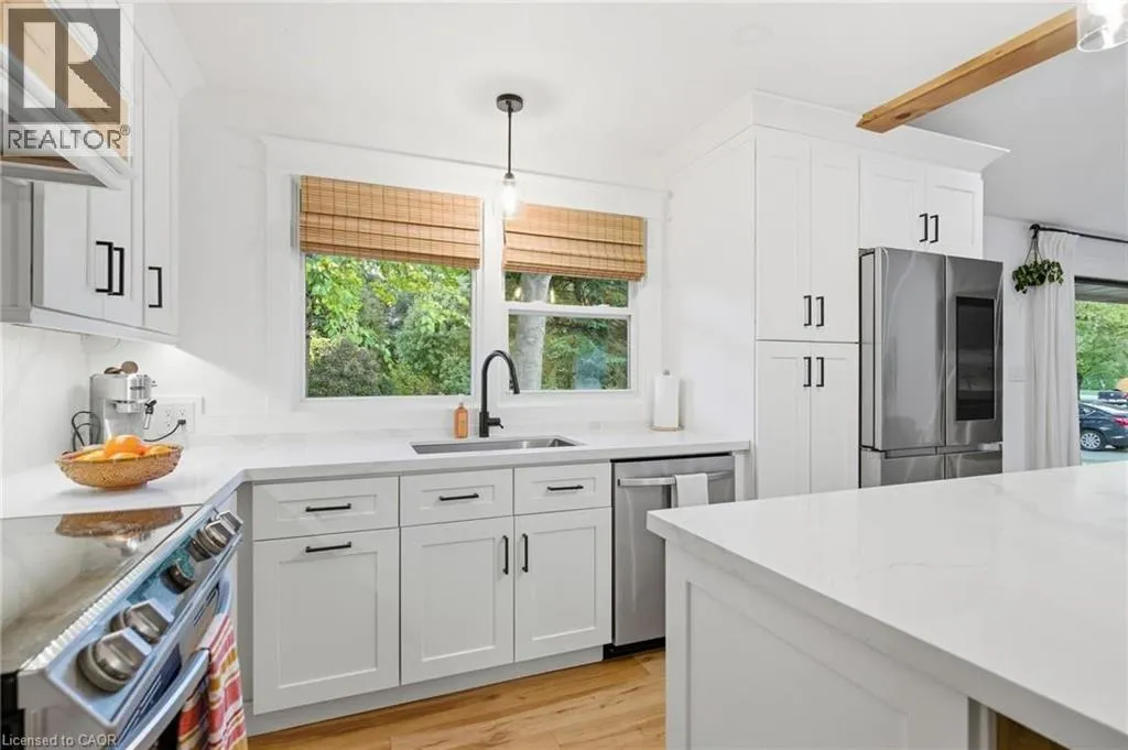 Shaver Rd to Westview Ave Charming Ancaster Bungalow on Expansive Lot with Luxury Upgrades! Welcome to 570 Westview â a beautifully reimagined bungalow nestled in the heart of Ancaster, set on a magnificent 88 x 173 ft lot. This home perfectly blends modern elegance with thoughtful functionality, offering both style and substance across every inch of its meticulously upgraded interior and exterior. Step inside to discover a warm, open-concept living space, beautifully enhanced with vaulted ceilings, a gas fireplace, and a seamless flow into the fully renovated kitchen. Designed for multigenerational living or added flexibility, the home also features a private in-law suite and two separate laundry areas for ultimate convenience. Entertain effortlessly with a chef-inspired kitchen upstairs and a secondary kitchen in the basement â both tastefully updated (the basement kitchen completed with cost-conscious efficiency). The home features a luxurious hot tub, set within a professionally landscaped backyard oasis complete with a paver walkway, concrete patio, and elegant gazebo. Among the homeâs many standout features are premium European-imported windows and doors, including a spectacular nearly 12-ft âlift-and-slideâ back door â offering effortless access to the backyard while flooding the interior with natural light. Most renovations were done between 2023-2025 & the septic bed and tank was replaced in 2007. Front door 2025. With easy highway access, this home is perfect for commuters and families alike. Every detail has been carefully considered to create a move-inready haven, blending craftsmanship, comfort, and modern flair (id:27476)