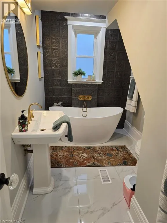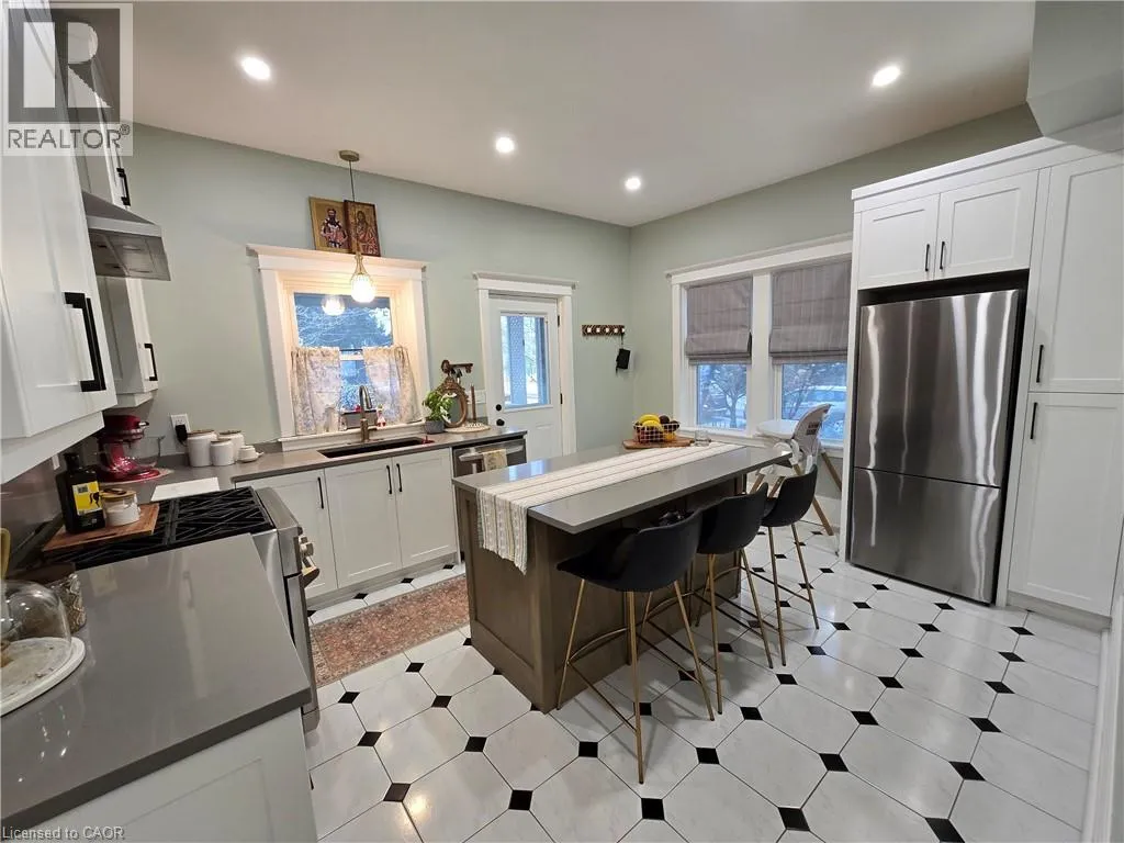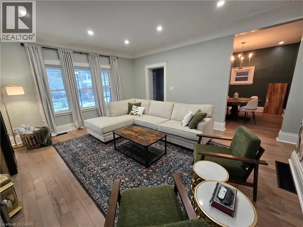 King Street East of Gage Park, turn North on Grosvenor Fantastic 2 bedroom & 2 full bath unit in quiet Central/East Hamilton location close to Gage Park. Fully renovated and updated, featuring one bedroom on main level and 2nd floor primary bedroom suite with private ensuite bath. Large updated kitchen with stainless steel appliances & island/ breakfast bar. Separate formal dining room (could be an office) and large front living room with high ceilings and tons of natural light. Large front foyer with entry storage closet. Insuite private laundry. 2 car parking. Half the garage assisgned to this unit for storage. Basement rented separately. Available May 1st. (id:27476)