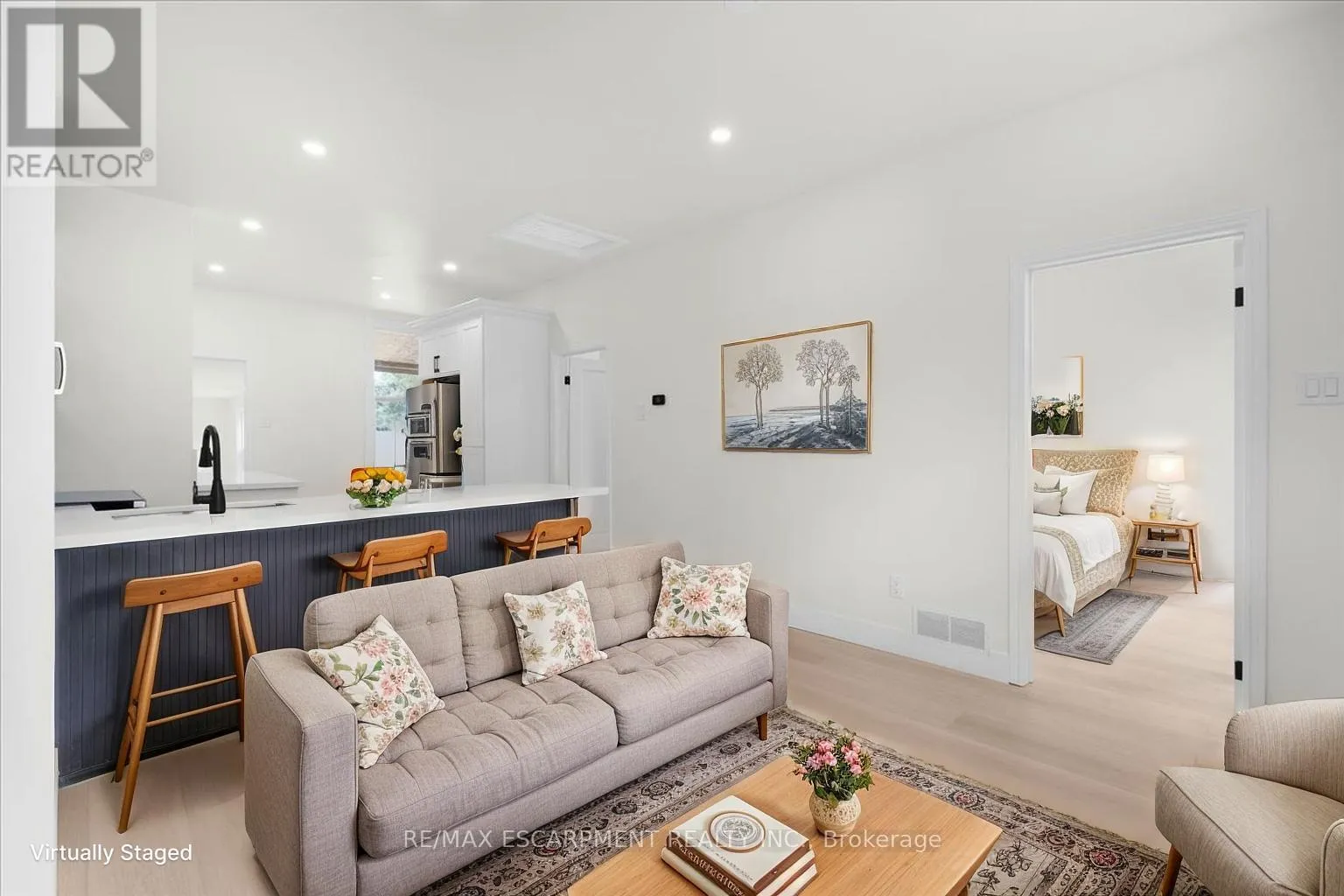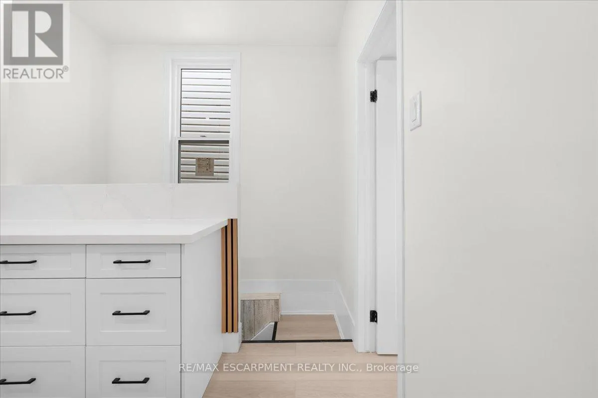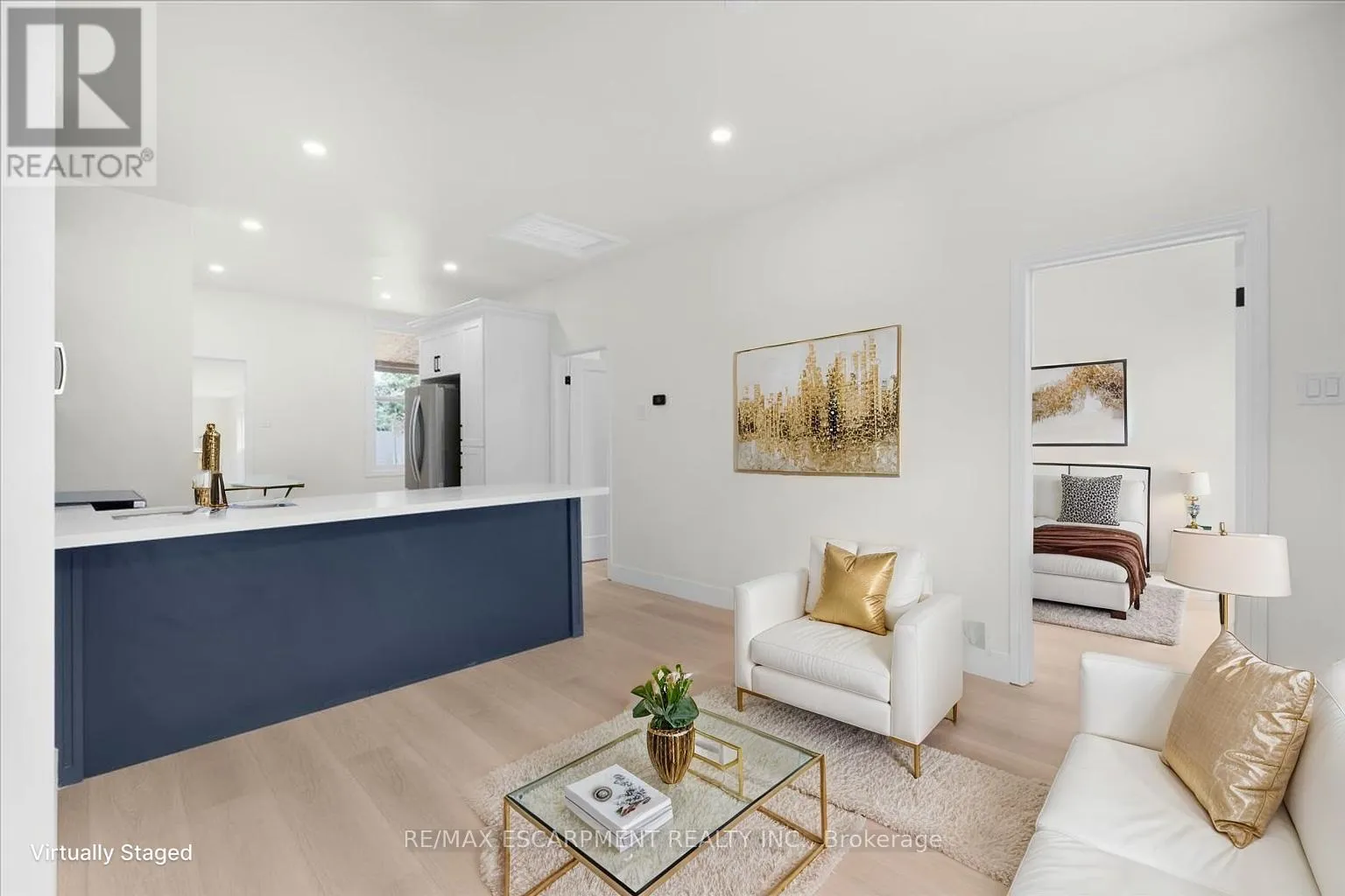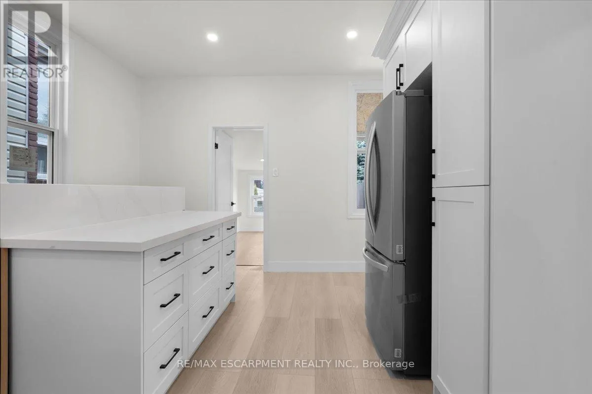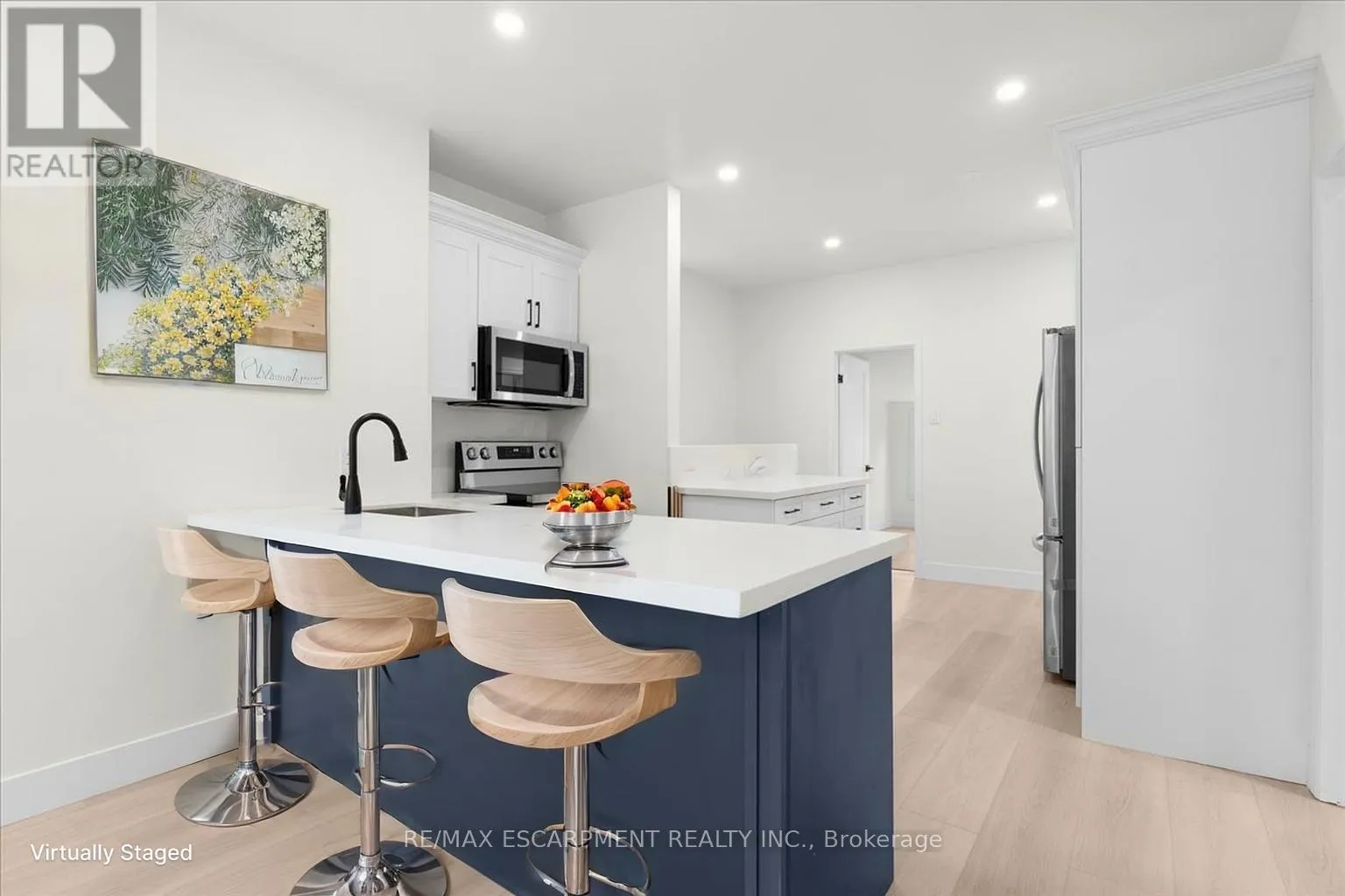 Cross Streets: Barton. ** Directions: Barton st. West. Welcome to this stunning fully renovated solid brick home just steps from the waterfront. Bright and inviting, this move-in-ready gem offers high ceilings, abundant natural light, 3 bedrooms, 2 full bathrooms, and a detached 2-car garage. No expense was spared. Enjoy a brand new kitchen with quartz countertops, matching backsplash, and stainless steel appliances, along with new electrical, plumbing, windows, paint, baseboards, door handles, and plenty of pot lights throughout. Each bedroom features custom 9-ft closets, while the beautifully updated bathrooms showcase quartz vanities and modern Italian tile finishes. The fully finished open-concept basement adds even more living space with pot lights, a 3-piece bathroom, laundry area with new washer and dryer, and a walkout door for added convenience. Perfect for families, couples, or downsizers, this home offers style, function, and an unbeatable location just steps to the waterfront, downtown core, shopping, and highway access. Turnkey living in a location you'll love. (id:27476)