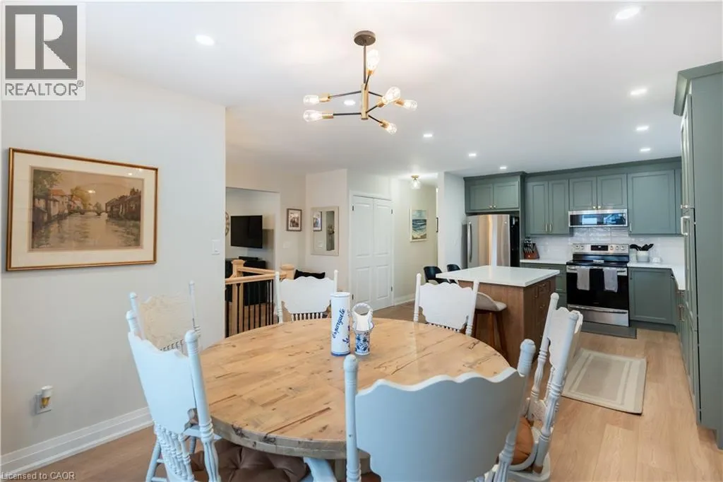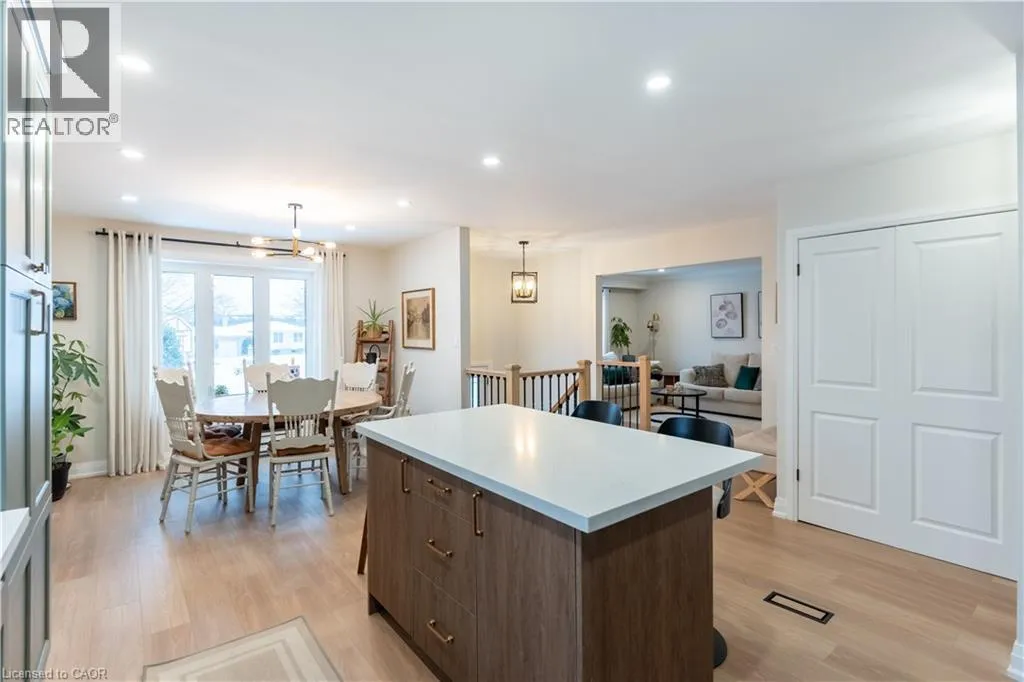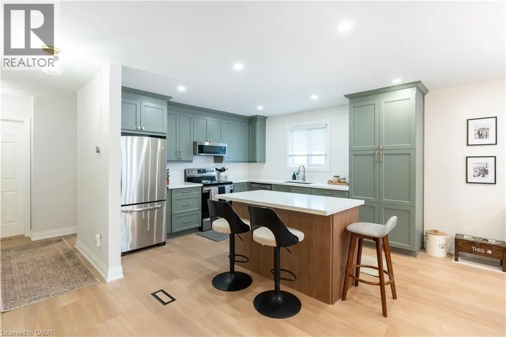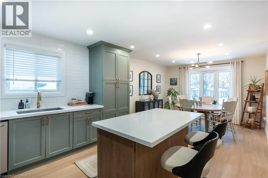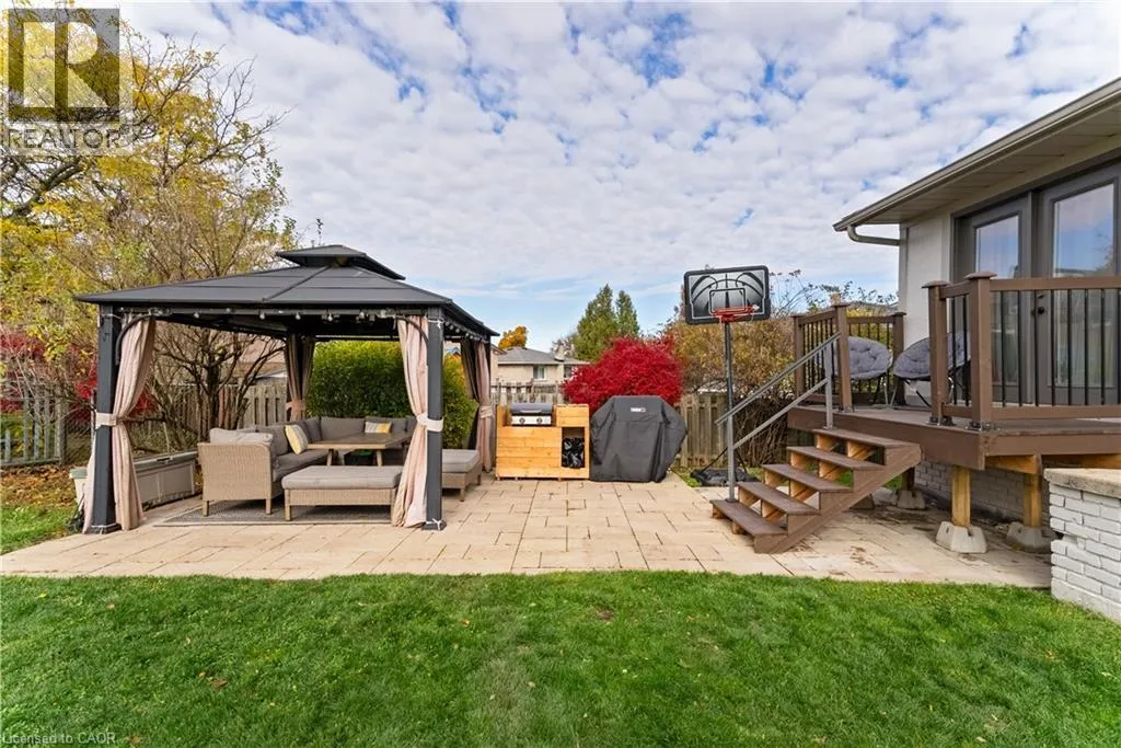 Rexford to Ravenbury Welcome to 26 Rama Court, a beautifully renovated raised bungalow tucked away on a quiet, family-friendly court. Thoughtfully updated throughout, this home showcases quality finishes, modern design, and a functional layout that is both stylish and practical. Bright, inviting living spaces make it ideal for everyday living and entertaining with a new eat in kitchen featuring solid wood cabinets and quartz countertops. A rare highlight is the oversized, pie-shaped backyard, offering exceptional outdoor space for families, pets, entertaining, or future possibilities, including two separate entrances, and easily converted in-law set up. Unbeatable location directly across from elementary schools, perfect for growing families, with quick and easy highway access for commuters. Close to parks, shopping, and all essential amenities, this turnkey property combines comfort, convenience, and location. Recent Updates 2023 - Furnace, AC, HWT. 2024 - Kitchen & appliances, patio walkway, LVP Flooring, Trim throughout house, Back Deck, Electrical Panel, Garage Door, Front Door. 2025 - Upstairs bathroom, interior staircase, downstairs bathroom, paved driveway, retaining wall, front steps & railing, downstairs bar & fireplace. Entire house freshly painted. (id:27476)