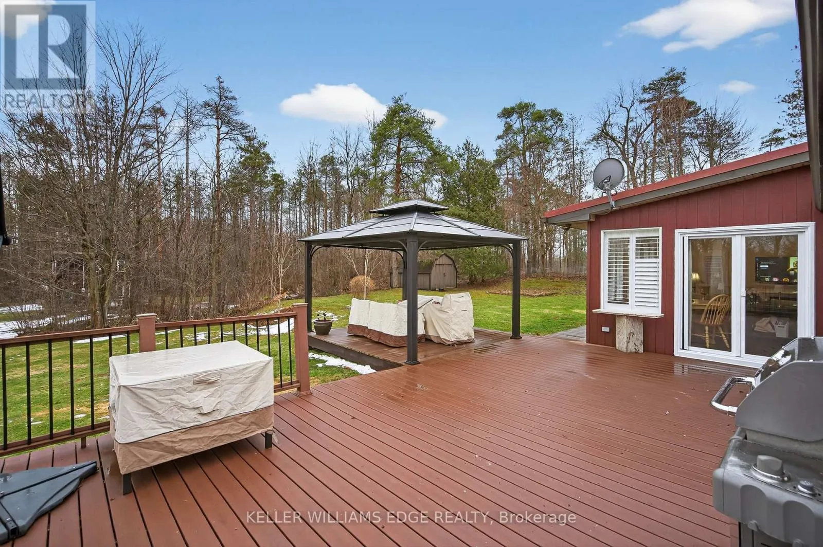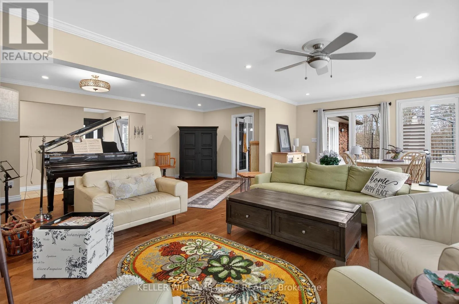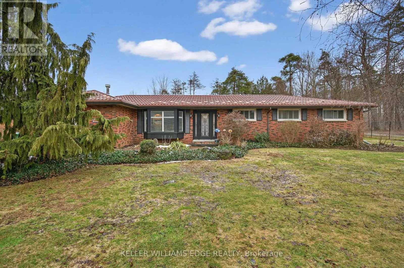 Cross Streets: MILBUROUGH LINE. ** Directions: CENTRE RD OR MILBUROUGH LINE TO THE 11TH CONC RD EAST. Tucked away on a breathtaking 10-acre wooded property just outside Carlisle, this beautifully updated 3-bedroom, 2-bathroom bungalow offers the perfect blend of privacy, comfort, and rural charm. Surrounded by mature trees and natural beauty, the home features a highly functional layout designed for everyday living and effortless entertaining. The inviting family room showcases spectacular views of the property, creating a peaceful space to relax while taking in the surrounding landscape. Thoughtful updates throughout the home provide modern comfort while maintaining the warmth and character you'd expect from a country retreat. Beyond the home itself, the property truly shines. Two versatile outbuildings offer exceptional flexibility for hobbyists, storage, workshops, or future projects. One of the buildings includes an upper level with exciting potential to be converted into additional living space, guest quarters, or a private studio. Beautiful wrought iron fencing with security gates enhances both the privacy and presence of the property, creating a grand yet welcoming entrance. Despite its tranquil setting, the location offers easy access to both Highway 401 and Highway 403, making commuting simple while remaining close to everyday amenities. This is the type of property that rarely becomes available - a private country escape with space, versatility, and convenience all in one remarkable setting. (id:27476)