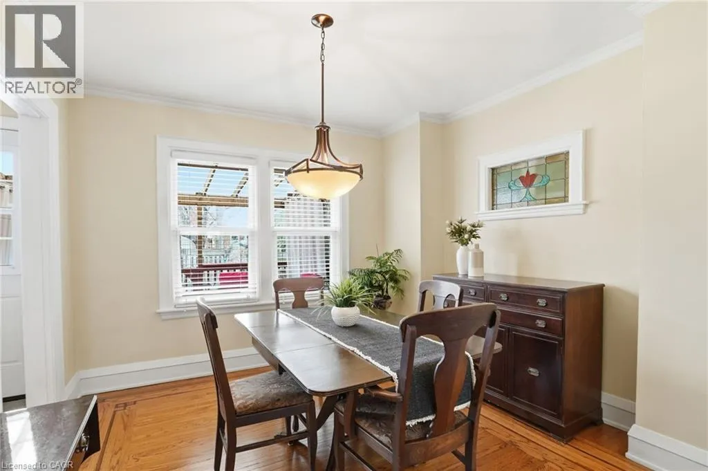 Kenilworth Ave E to King St S to Justine Ave to Park Row S Built in 1929, this impeccable 1,141 sq. ft. character home blends timeless charm with everyday comfort. Offering three bedrooms, this home is rich in original detail, featuring beautiful hardwood floors with elegant inlay, stunning stained glass windows and classic crystal hardware that highlight its unique character, while the finished basement with rec room provides additional space to relax, unwind or gather with family and friends. The kitchen is equipped with stainless steel appliances and offers convenient access to the rear deck, creating an easy flow for indoor-outdoor living and entertaining. Outside, the fully fenced and nicely landscaped backyard invites summer barbecues and quiet evenings on the large deck with a rear shed providing extra storage. A cozy, welcoming front porch sets the tone for morning coffee or friendly chats with neighbours, while the single-car driveway adds everyday convenience. Located in the sought-after Gage Park neighbourhood, the lifestyle here centres around one of the cityâs most beloved historic park known for its expansive green space, tropical greenhouse and the Childrenâs Museum. Donât be TOO LATE*! *REG TM. RSA. (id:27476)