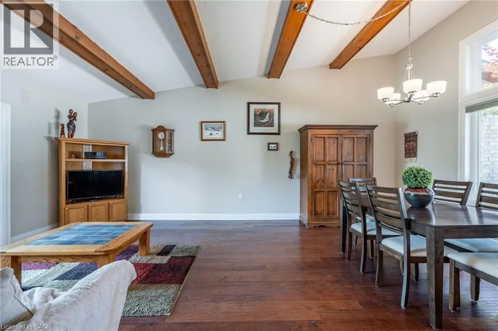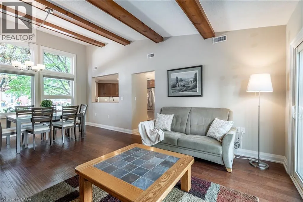 South East corner of Garth Street & Rymal Road West Welcome to this beautifully maintained bungalow in the sought-after gated 55+ community of St. Elizabeth Village. This 1,232 sq. ft. home offers true one-floor living with no stairs, an attached garage, and a double driveway that fits two vehiclesâperfect for ease and convenience. Inside, youâll find 2 spacious bedrooms and 1.5 bathrooms, including a large main bath featuring a roll-in showerâideal for those with mobility needs. The open-concept kitchen, living, and dining area boasts soaring 16-ft vaulted ceilings, creating a bright and airy feel. Rich hardwood flooring runs throughout the main living space and both bedrooms, offering a warm and elegant touch. Tucked into a quiet pocket of the Village, the home offers tranquil views of one of the communityâs 14 scenic pondsâa perfect spot to relax and unwind. St. Elizabeth Village offers an unmatched lifestyle with resort-style amenities, including a heated indoor pool, gym, saunas, hot tub, golf simulator, woodworking shop, stained glass studio, and wellness services such as a doctorâs office, pharmacy, and massage clinicâall within the community. Located just minutes from shopping, grocery stores, restaurants, and with public transit that comes right into the Village, everything you need is close at hand. This is retirement living at its finestâdon't miss your chance to call this exceptional home yours! Property taxes, water, and all exterior maintenance are included in the monthly fees. RSA (id:27476)