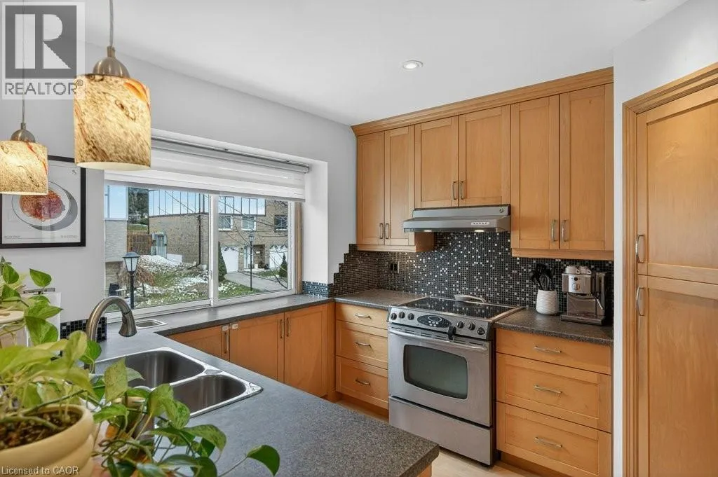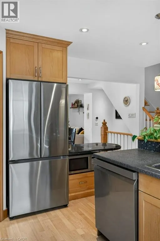 MOHAWK TO RICE, FOLLOW ARROW STRAIGHT TO #90 Low maintenance, high style and an amazing West Mountain location make this end unit an absolute no-brainer. More spacious than the others, unit 90 has a private driveway, a fully fenced yard, and backs onto the community park. Inside is the surprise of a lifetime, fully renovated with high-end products and impressive craftsmanship, what was once a 1970s space has been brought to the highest caliber. Starting in the main foyer with neutral easy to clean flooring, hidden storage drawers, and a powder room with built-in storage and a pedestal vanity - easy access from the garage! Also find a fantastic main level family room, with upgraded laundry equipment tucked neatly away. The custom bannisters were refurbished from churches and add grandeur to the hardwood staircase. The main living level features an open concept living dining room with a view of the backyard through upgraded patio sliders. This one of a kind unit has a natural gas fireplace with custom built-ins, upgraded fixtures, and loads of light. The chef's kitchen provides an eat in space and so much more; a breakfast bar like you won't see elsewhere, massive counter space including a peninsula with garbage chute, a huge walk-in pantry flanked with shelves on all sides, stainless steel appliances and a fantastic view out front round out the room where you'll spend most of your time. The bedroom level is bright, loaded with storage, and features more professionally installed built-ins in the primary suite. The bathroom was recently renovated with stylish tile, a new tub and surround, and an upgraded vanity. Reasonable maintenance fees include all maintenance and water, condo has done many projects without a special assessment, a great place to call home! Enjoy easy access to the Meadowlands, highways, and fantastic schools! (id:27476)