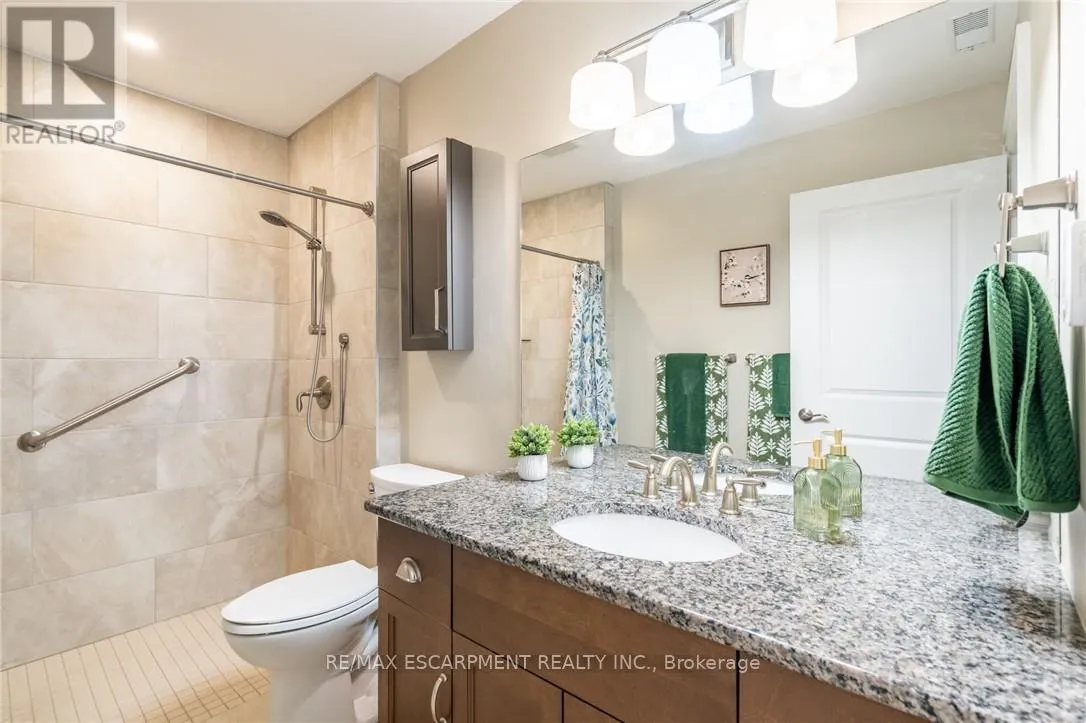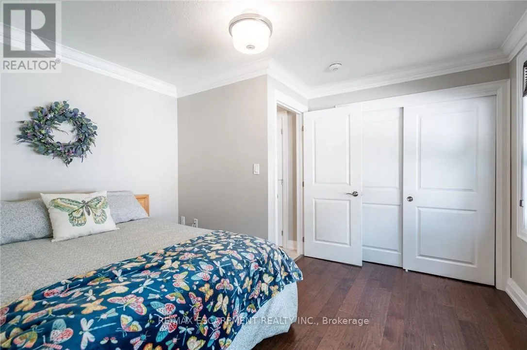 Cross Streets: Garth Street & Rymal Rd. W. ** Directions: South East corner of Garth Street & Rymal Road West. Welcome to this beautifully maintained bungalow in the sought-after gated 55+ community of St. Elizabeth Village. This 1,232 sq. ft. home offers true one-floor living with no stairs, an attached garage, and a double driveway that fits two vehicles-perfect for ease and convenience. Inside, you'll find 2 spacious bedrooms and 1.5 bathrooms, including a large main bath featuring a roll-in shower-ideal for those with mobility needs. The open-concept kitchen, living, and dining area boasts soaring 16-ft vaulted ceilings, creating a bright and airy feel. Rich hardwood flooring runs throughout the main living space and both bedrooms, offering a warm and elegant touch. Tucked into a quiet pocket of the Village, the home offers tranquil views of one of the community's 14 scenic ponds-a perfect spot to relax and unwind. St. Elizabeth Village offers an unmatched lifestyle with resort-style amenities, including a heated indoor pool, gym, saunas, hot tub, golf simulator, woodworking shop, stained glass studio, and wellness services such as a doctor's office, pharmacy, and massage clinic-all within the community. Located just minutes from shopping, grocery stores, restaurants, and with public transit that comes right into the Village, everything you need is close at hand. This is retirement living at its finest-don't miss your chance to call this exceptional home yours! Property taxes, water, and all exterior maintenance are included in the monthly fees. RSA (id:27476)