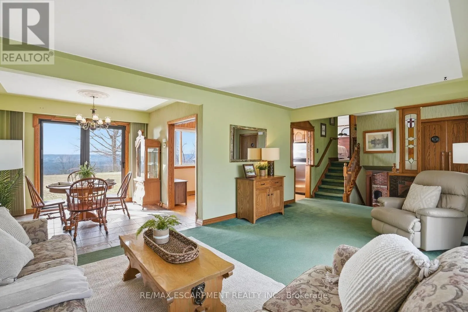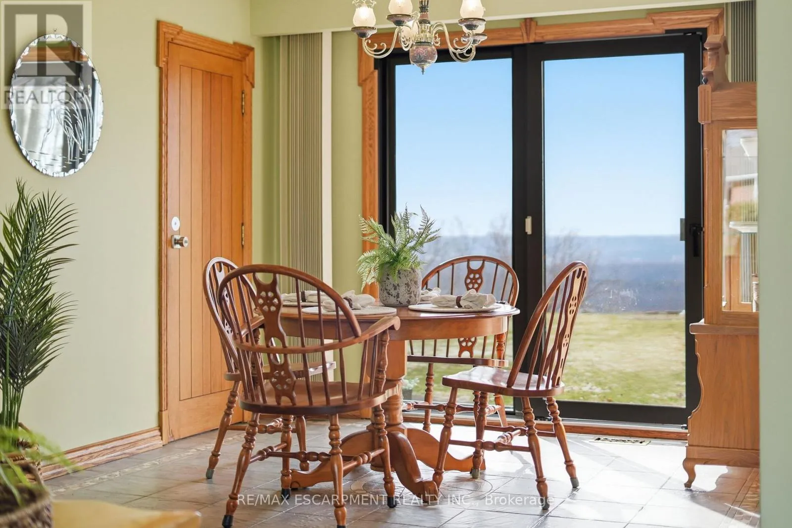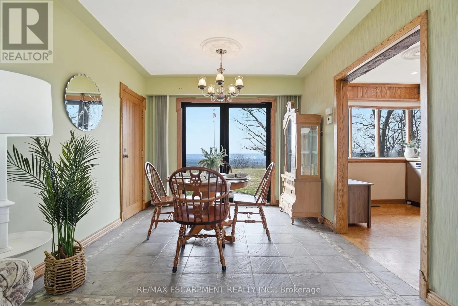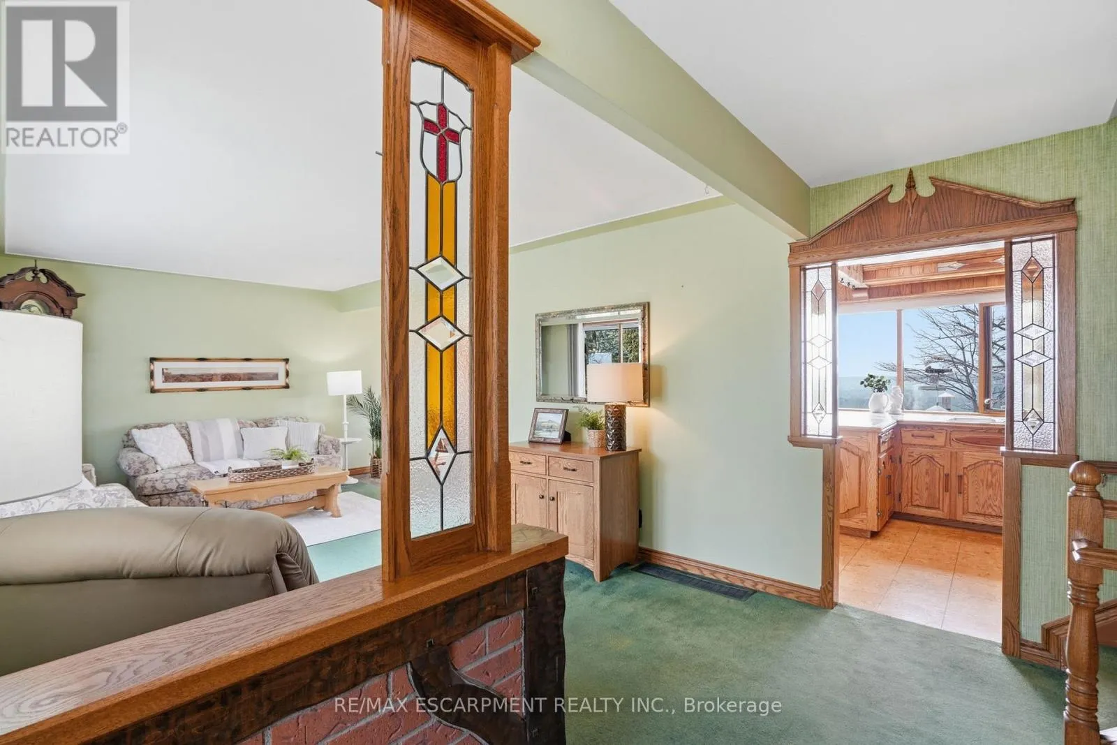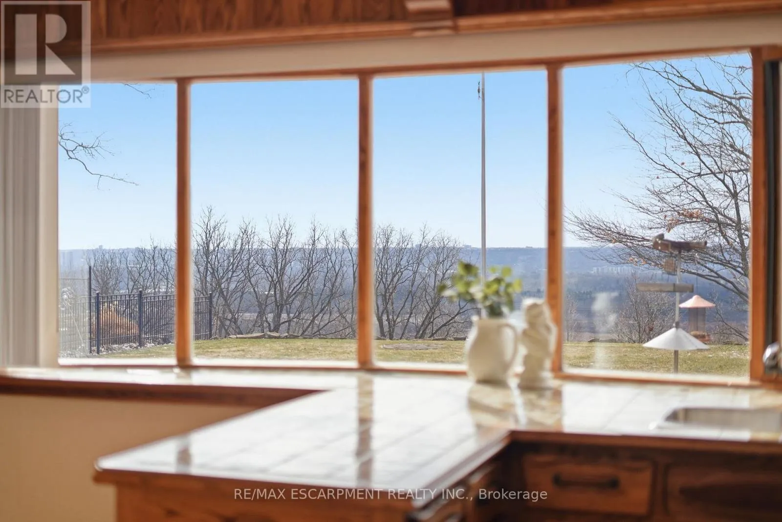 HWY 5 to Algonquin Ave to Thorncrest Blvd Rare opportunity to own a property with one of the most breathtaking views in Flamborough! Perched along the edge of the escarpment and tucked away at the end of a quiet dead-end road, this impeccably maintained side-split offers a level of privacy and natural beauty that is hard to find. The true showstopper is the panoramic escarpment view overlooking the Royal Botanical Gardens and York Road Conservation Area, with sightlines stretching all the way to Hamilton Harbour and McMaster University - a view that changes beautifully with every season. Inside, the home has been lovingly cared for and features unique custom woodwork and stained-glass accents that add warmth and character throughout. With the views continuing from every room, this space presents an incredible opportunity to update and create your dream home in an unbeatable setting. Enjoy the peaceful rural feel while still being just minutes from all the amenities of Waterdown, Dundas, and Burlington. A truly special property with views that are simply unmatched. RSA. (id:27476)