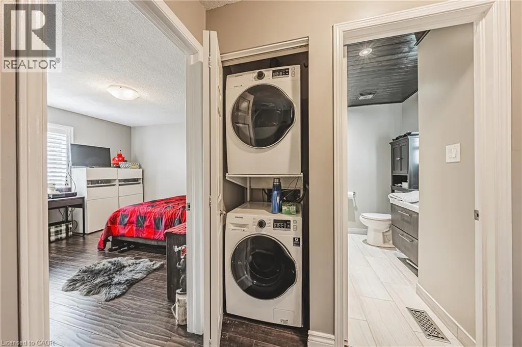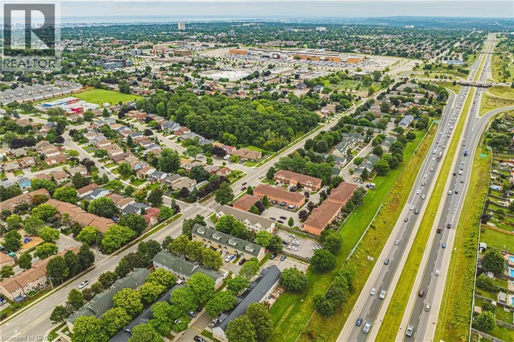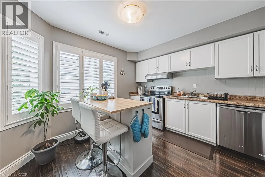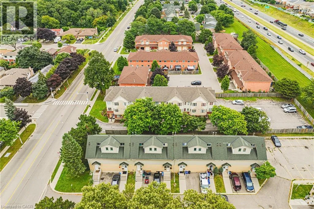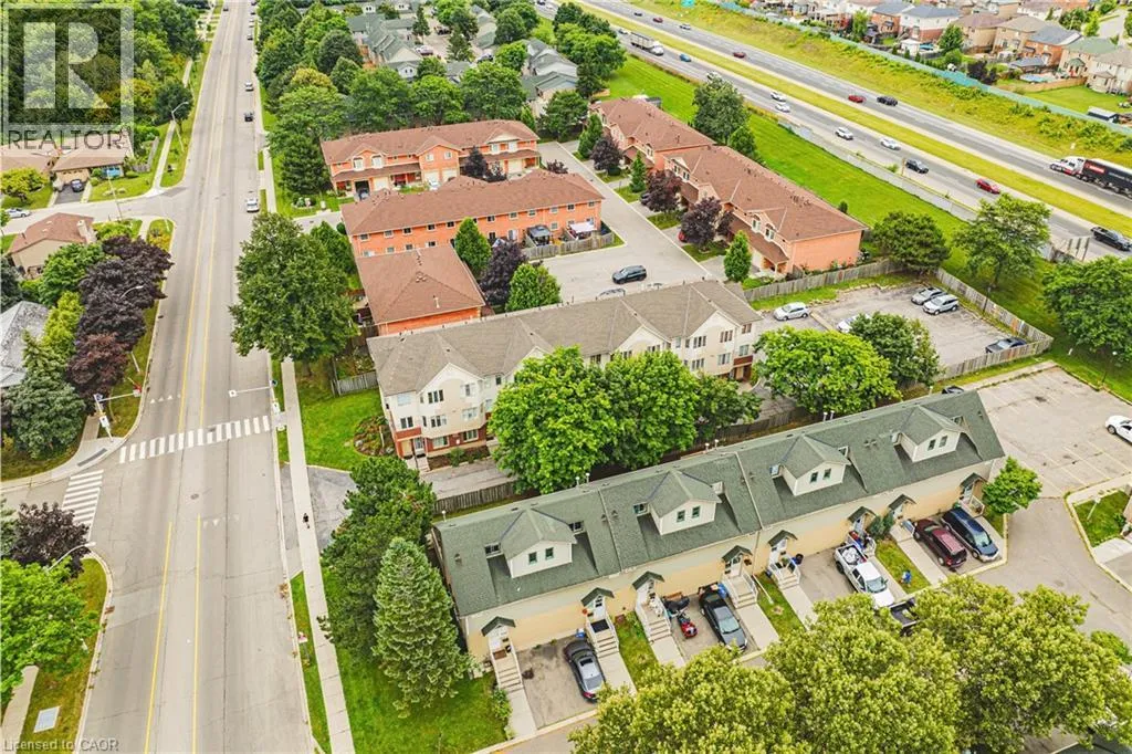 UPPER WELLINGTON Chic an Sassy!This gorgeous, beautifully maintained stacked townhome on South Hamilton Mountain â is move in ready! The open concept second floor is well appointed with beautiful white kitchen cabinetry, stainless steel appliances, a spacious living room/dining room with walkout to a large terrace and 2-piece bathroom. The primary bedroom is unique with its own balcony. The second bedroom is spacious and the perfect retreat. There is a 4-piece and washer/dryer on this level. Carpet free thru-out with rich dark flooring, recently updated Furnace, Air Conditioner and Patio Door. Just a short drive to Ancaster, Stoney Creek, Downtown Hamilton, minutes to the Linc Access, Conveniently located close to parks, trails, schools, library, and shopping. (id:27476)