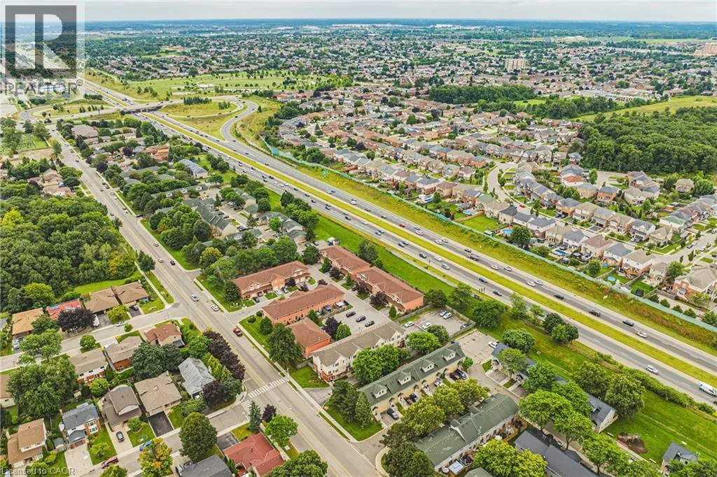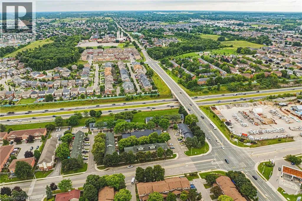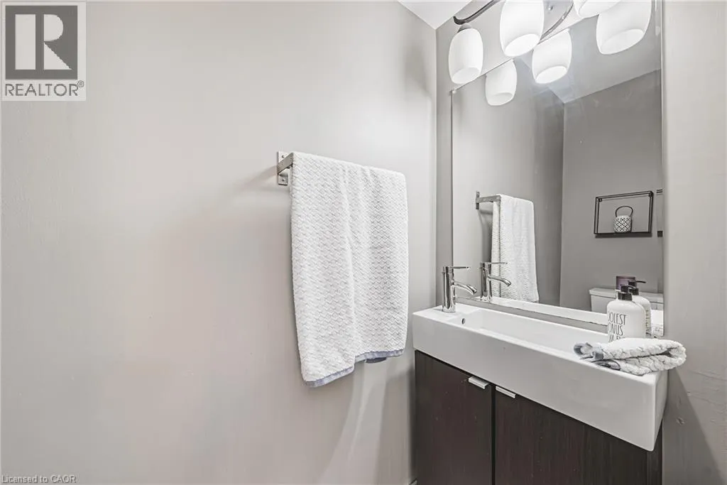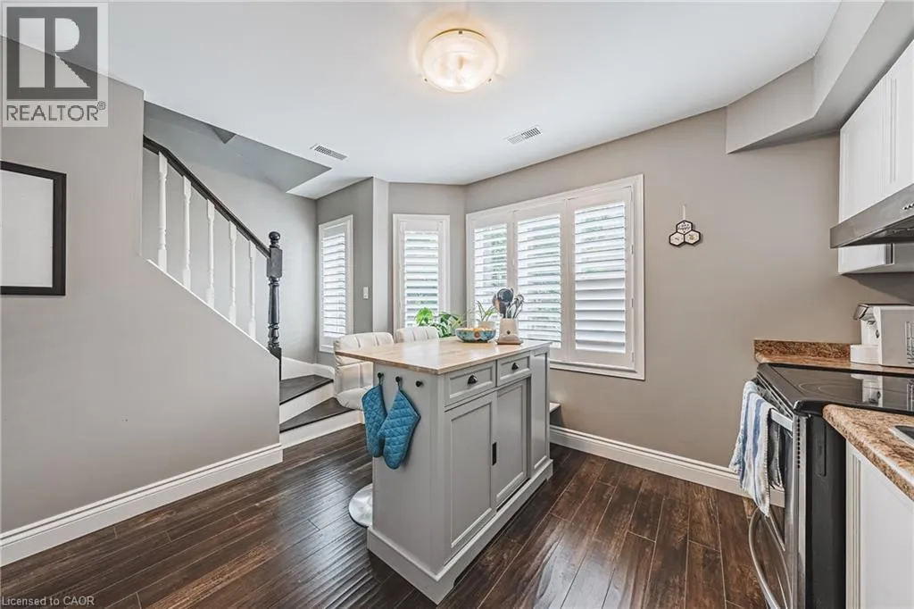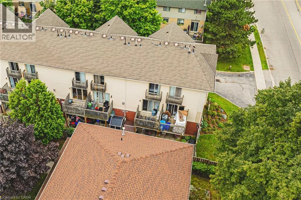 UPPER WELLINGTON Chic an Sassy!This gorgeous, beautifully maintained stacked townhome on South Hamilton Mountain â is move in ready! The open concept second floor is well appointed with beautiful white kitchen cabinetry, stainless steel appliances, a spacious living room/dining room with walkout to a large terrace and 2-piece bathroom. The primary bedroom is unique with its own balcony. The second bedroom is spacious and the perfect retreat. There is a 4-piece and washer/dryer on this level. Carpet free thru-out with rich dark flooring, recently updated Furnace, Air Conditioner and Patio Door. Just a short drive to Ancaster, Stoney Creek, Downtown Hamilton, minutes to the Linc Access, Conveniently located close to parks, trails, schools, library, and shopping. (id:27476)
