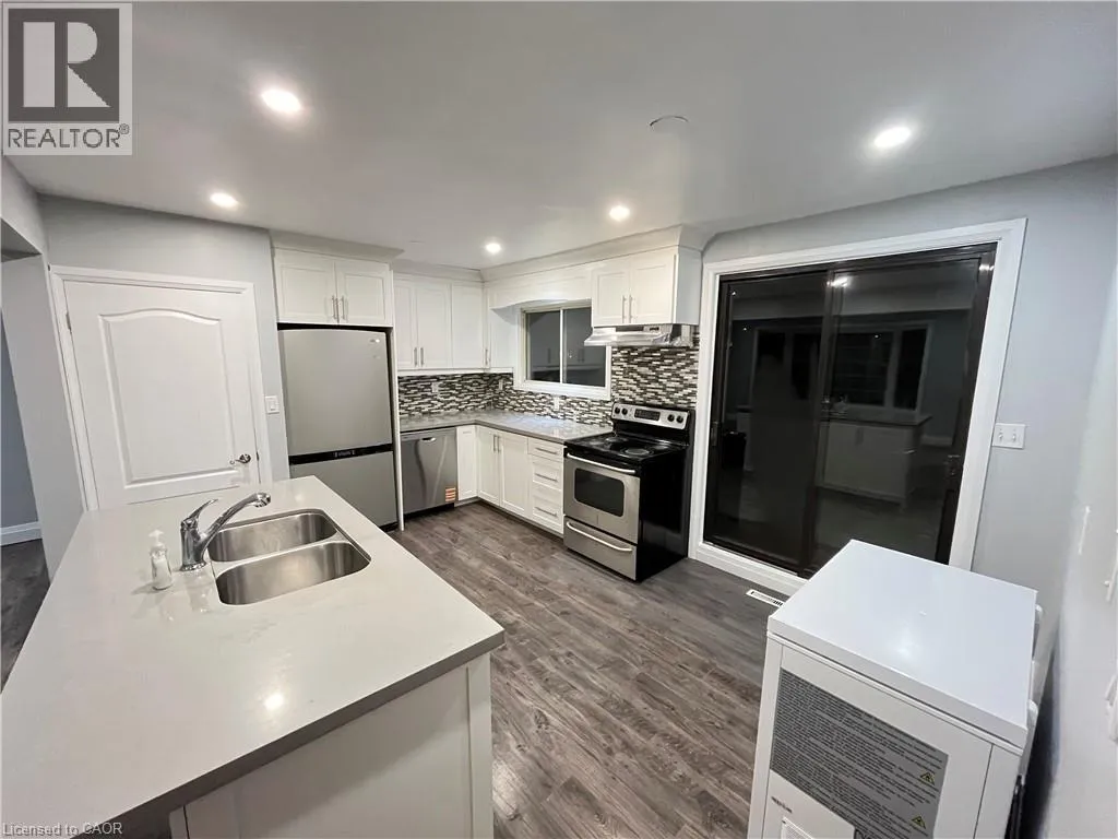 Beautifully renovated bungalow located on Hamilton Mountain, just minutes from CF Lime Ridge and close to the Lincoln M. Alexander Parkway for easy commuting. This spacious home offers 3 bedrooms on the main floor plus 2 additional bedrooms in the fully finished basement with a separate entrance, providing excellent space and flexibility. The basement features new laminate flooring, a full kitchen, and a full washroom, while the entire home has been freshly painted throughout. The main kitchen includes modern quartz countertops and comes equipped with fridge, dishwasher. Enjoy outdoor living with a new deck, along with the convenience of a two-car garage and a large driveway with ample parking. Conveniently located near shopping, schools, parks, and public transit. pets are not allowed. AAA tenants preferred. Ideal for families or professionals seeking a well-maintained home in a prime Hamilton Mountain location. (id:27476)
