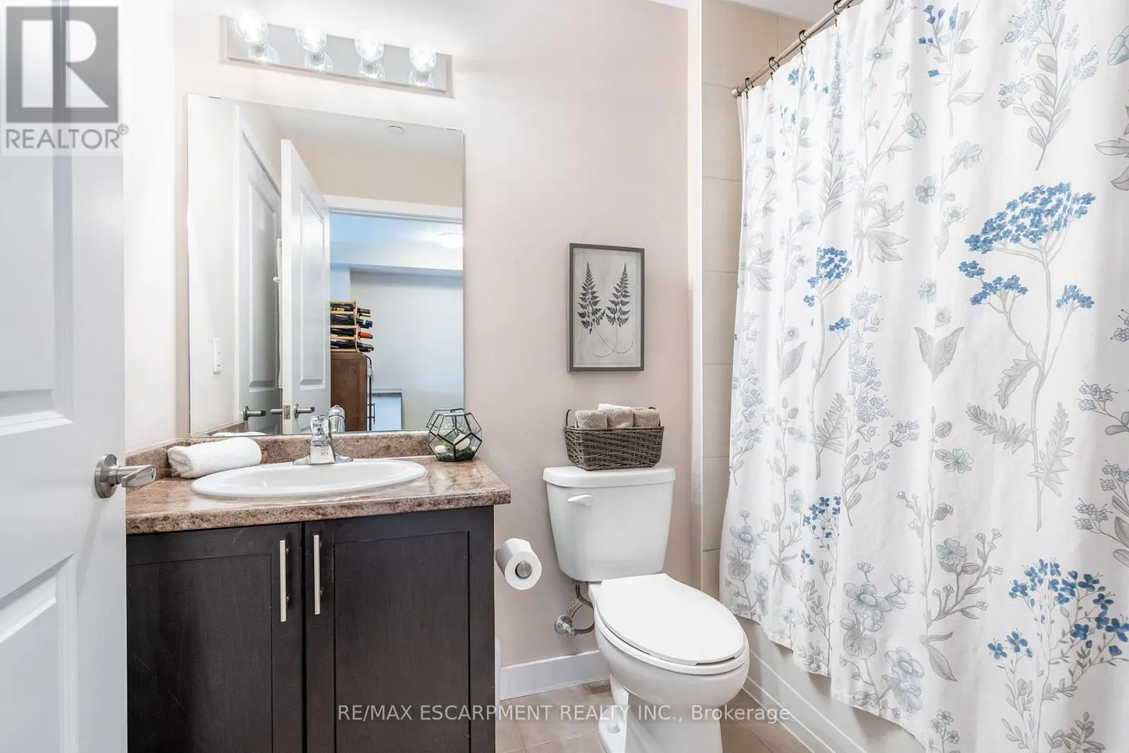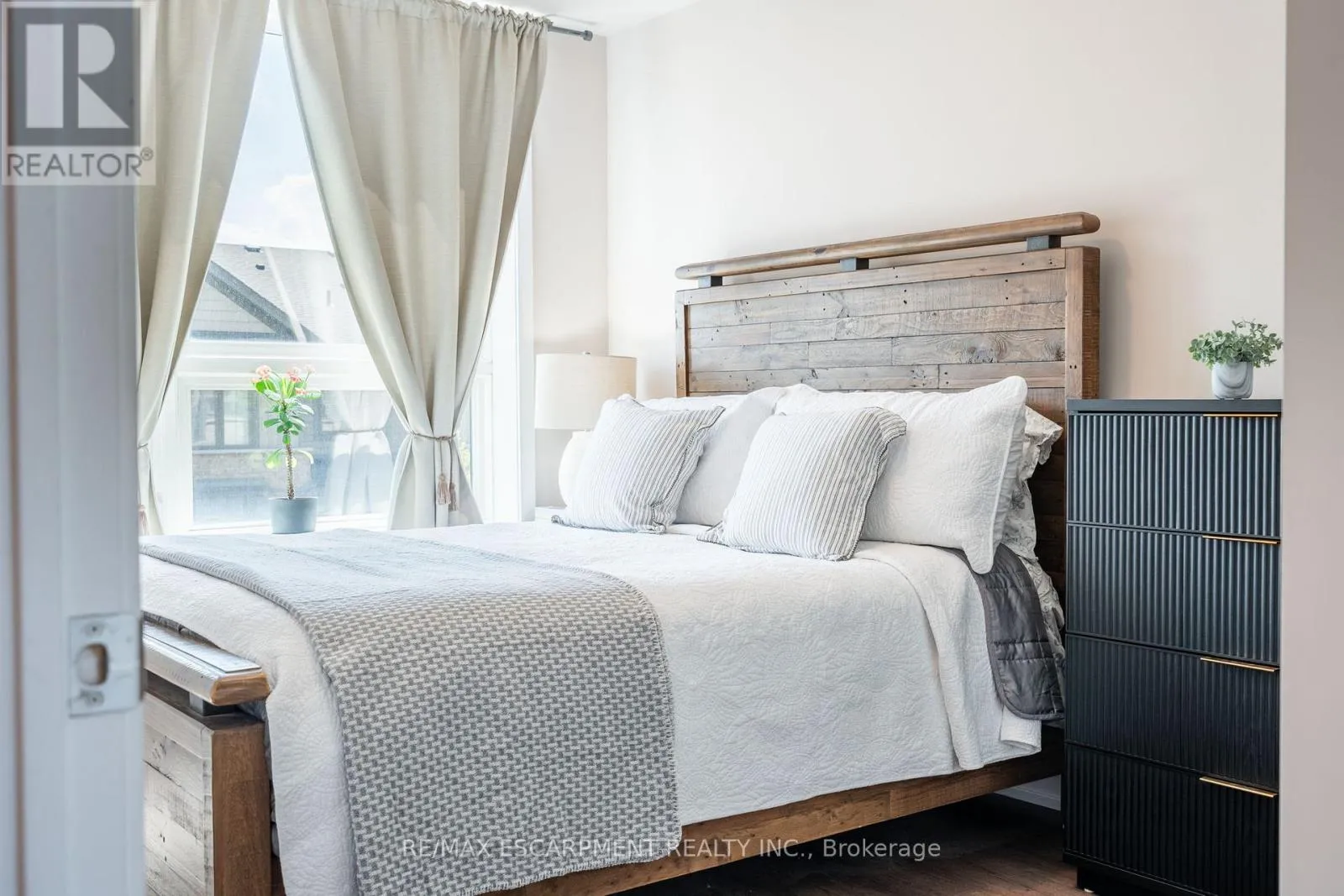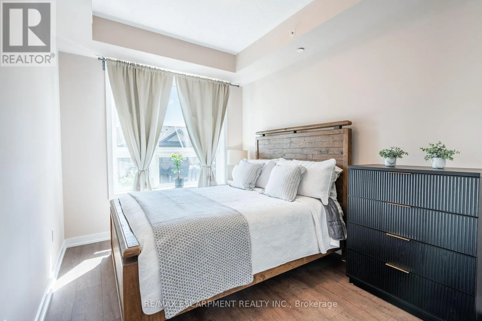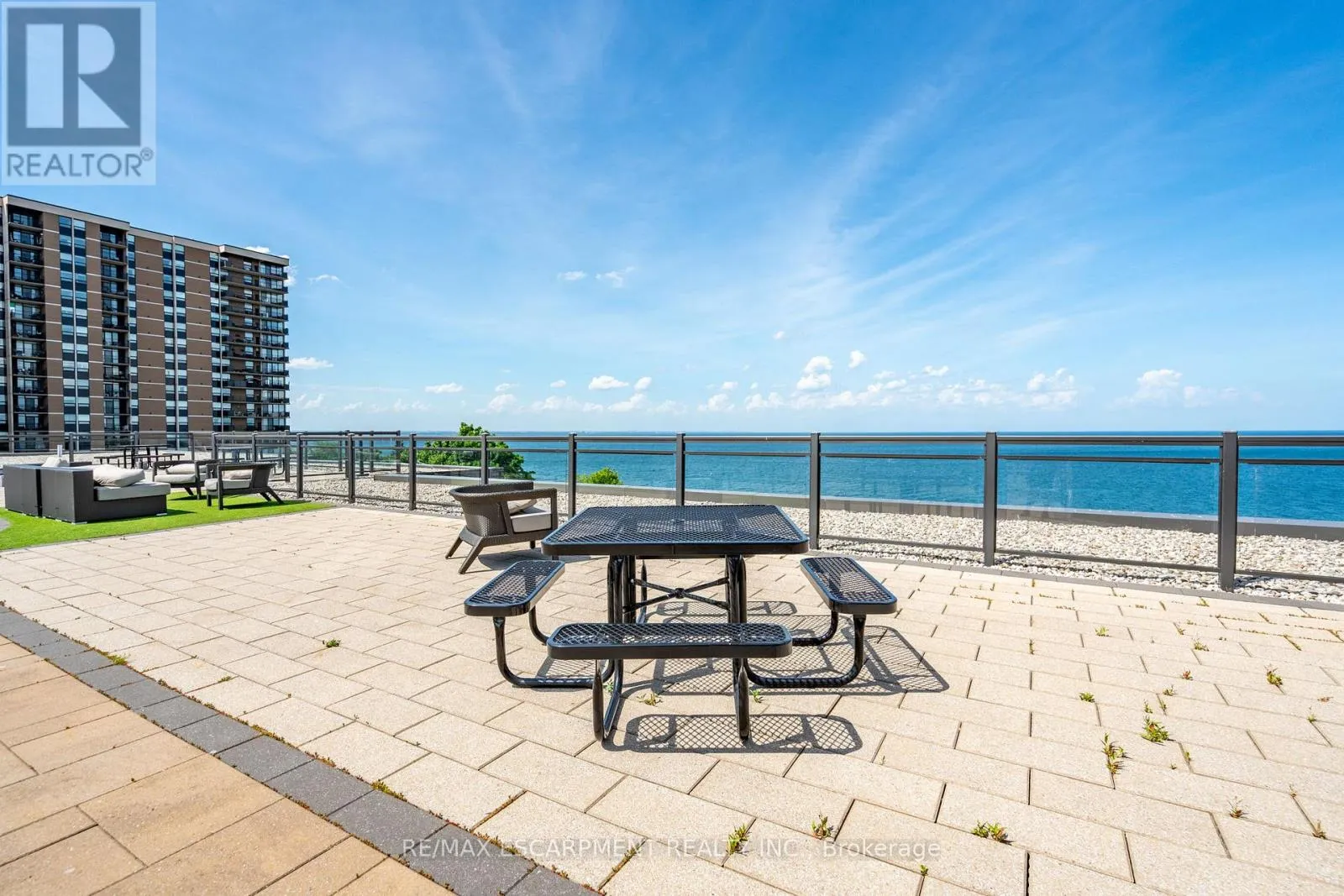 Cross Streets: Frances Ave. ** Directions: N Service Rd to Green Rd to Frances Ave to Southshore Cres. Discover boutique lakeside living in this stylish one-bedroom condo at the Waterfront Trails in Stoney Creek. Located in a charming four-storey building right on the lake, this freshly painted unit features newer wide plank flooring, a modern kitchen with stainless steel appliances and a breakfast bar. This unit features in-suite laundry and sliding doors that open to a private balcony. Enjoy the convenience of one owned underground parking space and one owned locker along with building amenities including a rooftop terrace with stunning lake views, an exercise room, bicycle storage and ample visitor parking! With a walking trail at your doorstep, easy beach access, quick access to the QEW and local amenities, this condo is a perfect opportunity for first-time buyers or investors seeking a turn-key property in a prime waterfront location. ADDED BONUS: The Seller will pay the first 2 months of condo fees upon completion. RSA. (id:27476)