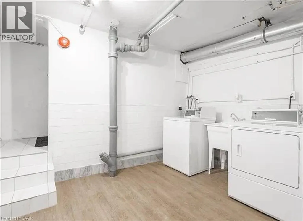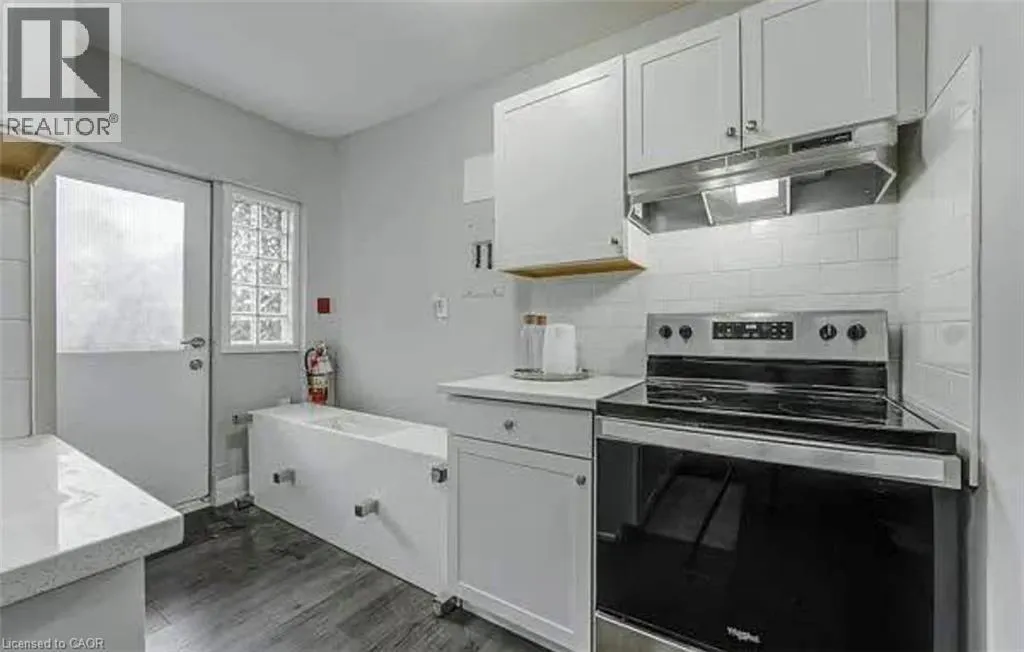 Cannon St E & Gibson Located in the heart of Hamiltonâs Gibson/Stipley neighbourhood, this charming main-floor unit in a well-maintained 6-unit building is a place youâll be proud to call home. Flooded with natural light from its large windows, this unit offers a bright and inviting living space. The sleek white kitchen features modern stainless steel appliances, providing both style and functionality and room for kitchen table and chairs. The primary bedroom easily accommodates queen-sized furniture, ensuring a restful retreat, while the second room is perfect as a guest bedroom or home office. The updated 3-piece bathroom features a sleek walk-in shower, adding a modern touch. Luxury laminate flooring runs throughout the unit, combining style with durability for a polished look. For added convenience, laundry facilities are available in the neighbouring building at 83 Gibson. Don't miss the opportunity to make this beautiful unit your next home! $1600 plus heat and hydro (id:27476)