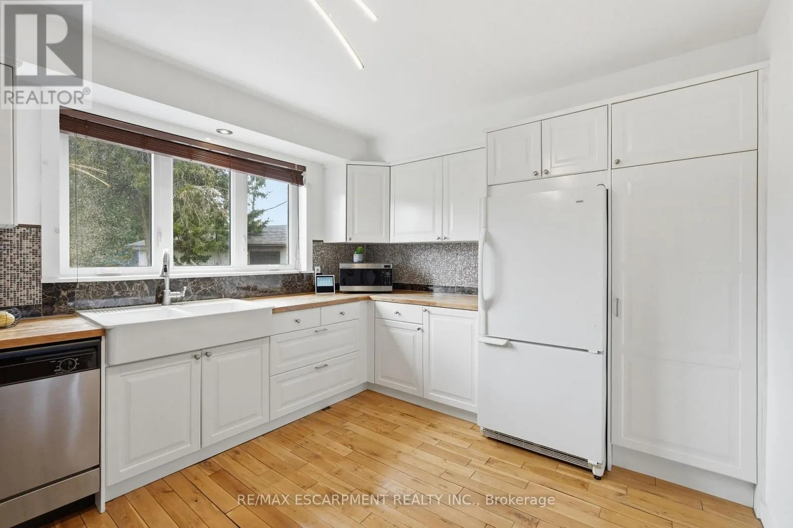 Cross Streets: Glover Rd & Hwy 8. ** Directions: Barton St to Glover Rd to Hwy 8. Set on a rare two-acre property in Stoney Creek with the convenience of municipal water, this spacious and unique two-storey home offers approximately 2,650 square feet of versatile living space; perfect for growing families or multigenerational living. Designed with flexibility in mind, the home features expansive living and dining rooms ideal for entertaining, along with a main floor bedroom that can easily serve as a home office or playroom. Upstairs, you'll find four generous bedrooms, including a primary retreat complete with a private ensuite and sitting area. The layout and size of the home provide ample room for extended family with an unfinished basement offering excellent in-law suite potential. The property also includes a single attached garage with an upper loft, a detached garage and two sheds-plenty of space for storage, hobbies or workshop needs. Surrounded by a peaceful setting backing onto open fields, and with the scenic Bruce Trail right at your doorstep, this home blends privacy, space and convenience. Ideally located, it offers a great balance of rural charm and everyday accessibility. There are schools nearby, making it perfect for families. Green spaces such as Oaklands Park and Cherry Heights Park are conveniently located just minutes away for outdoor enjoyment. Everyday essentials are within easy reach, while quick access to the QEW makes commuting throughout the Hamilton and Niagara regions seamless. Public transit, community centres and recreational amenities are all a short drive away, completing this exceptional offering. A sump pump with battery backup installed in 2026 adds extra peace of mind. RSA. (id:27476)