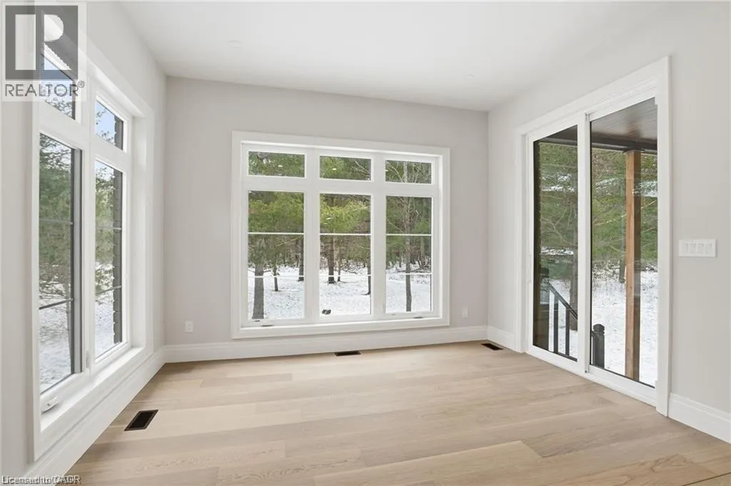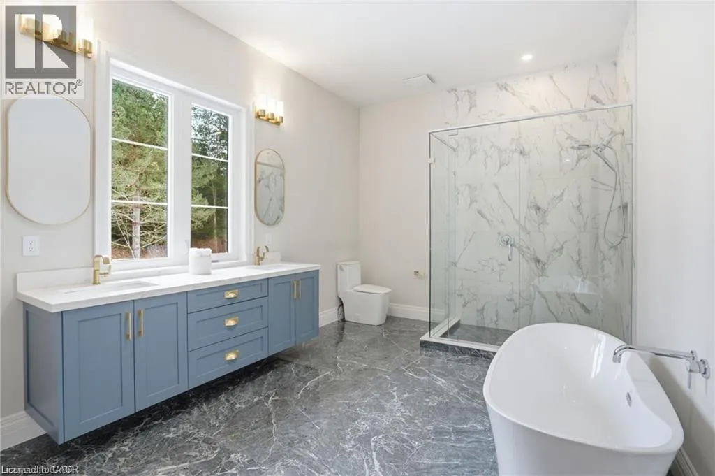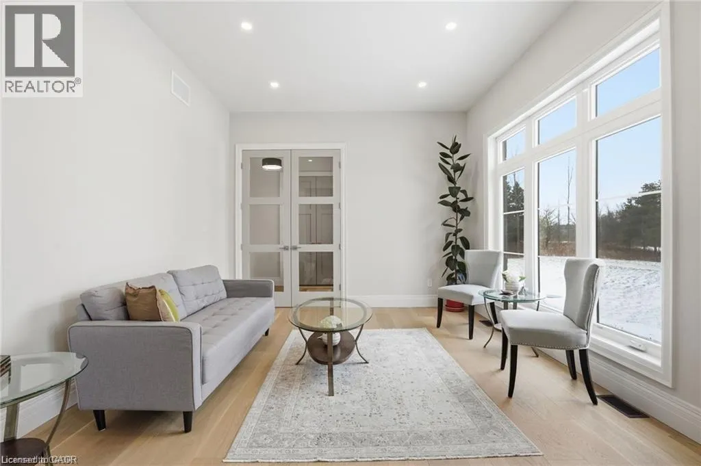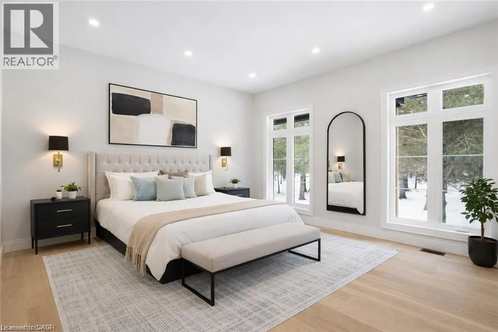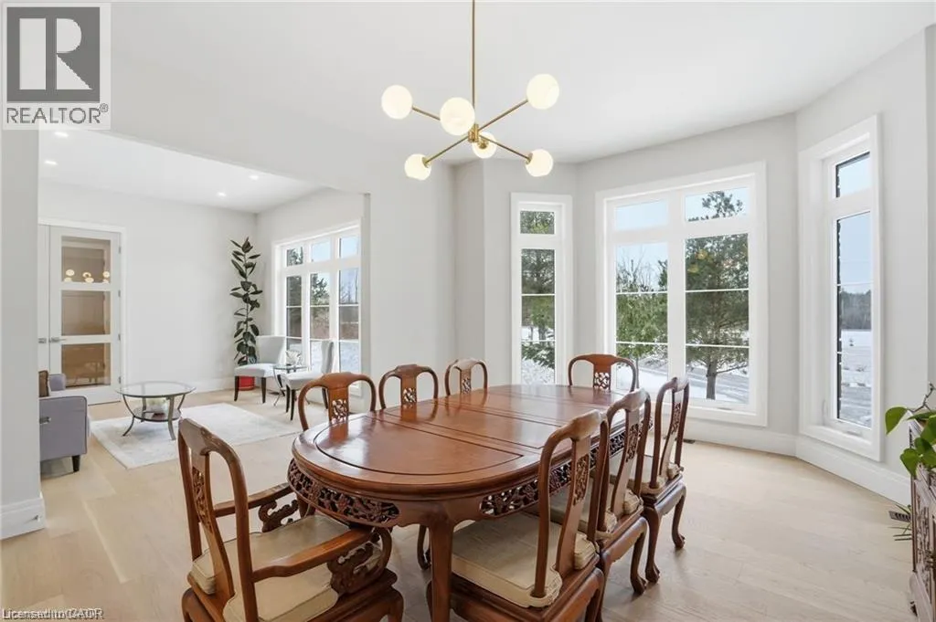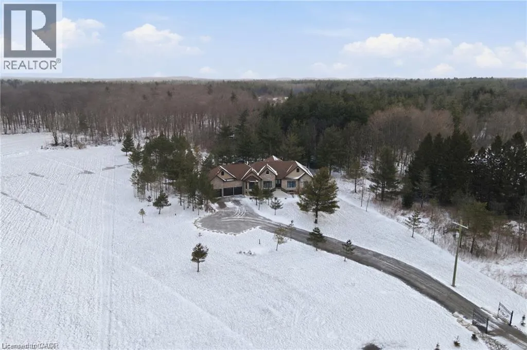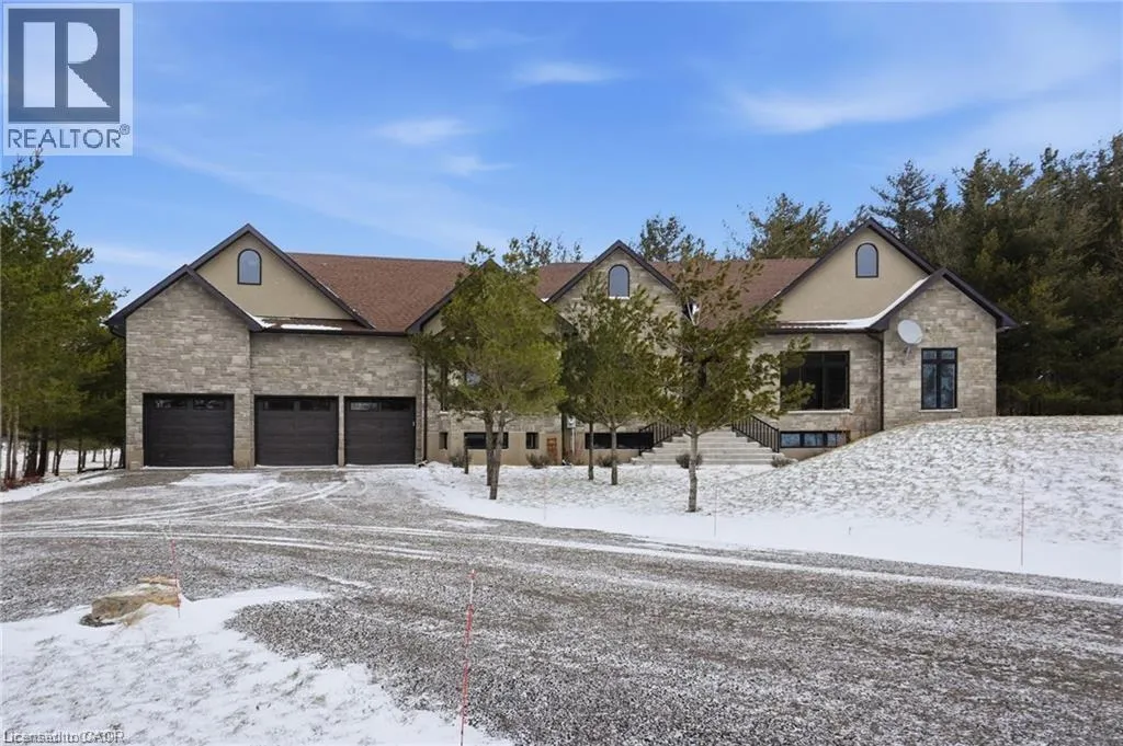 Indulge in elevated living, exceptional 2024 built estate offering over 5,500 sqft of exquisitely crafted space. An impressive 2,767 sqft per level, set on a private 2.37 acre lot with over 200 mature trees, backing onto forested conservation land. Designed with sophistication & scale, the open-concept interior showcases soaring 10' ceilings on the main level & 9' ceilings below, paired with expansive windows that flood the home with natural light. Stunning 7 engineered white oak flooring runs throughout, complemented by custom 8' solid core doors & exquisite trim work. 126 integrated pot lights provide a warm, ambient glow throughout the home. The show stopping chefâs kitchen features floor-to-ceiling custom cabinetry, a statement center island, quartz countertops, built-in appliances, along with a walk in pantry that enhances both functionality. Four of the six generously appointed bedrooms offer private, spa-inspired ensuites, delivering exceptional comfort & privacy. The fully finished lower level mirrors the elegance & footprint of the main floor, creating a completely self-contained residence with a separate entrance & full in-law suite. Built with performance & efficiency in mind, the home features a 6-tonne heat pump system, supported by a 100,000 BTU furnace for optimal comfort during extreme temperatures. The 40' drilled well services the home, complete with UV filtration, water purifier & softener systems, along with a 9,000-litre, 3-chamber septic system with alarm for added peace of mind. A substantial 80,000 lb certified recycled asphalt driveway leads to the oversized 3-car garage with extra-high ceilings. Perfectly positioned between Rockton and Sheffield, this Luxury Certified residence is a rare offeringâseamlessly blending modern design, advanced infrastructure, and the tranquility of nature. Please note that some photos have been virtually staged to add furniture/items in some rooms. (id:27476)