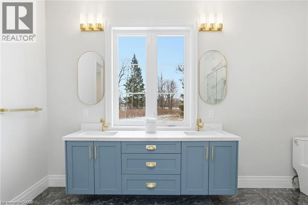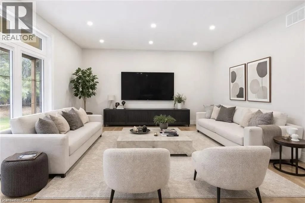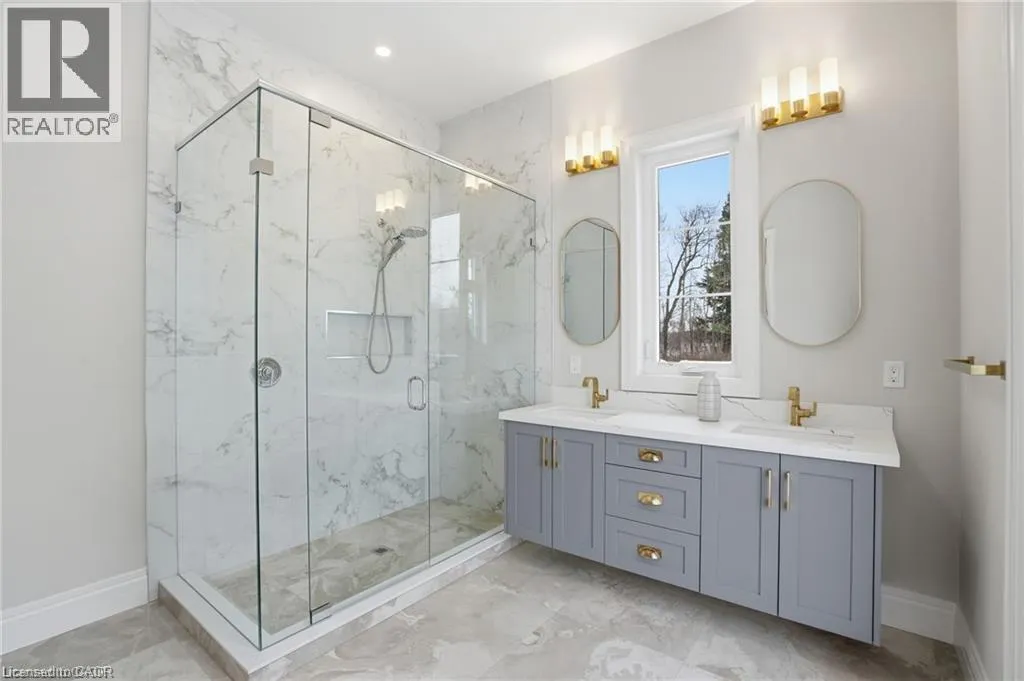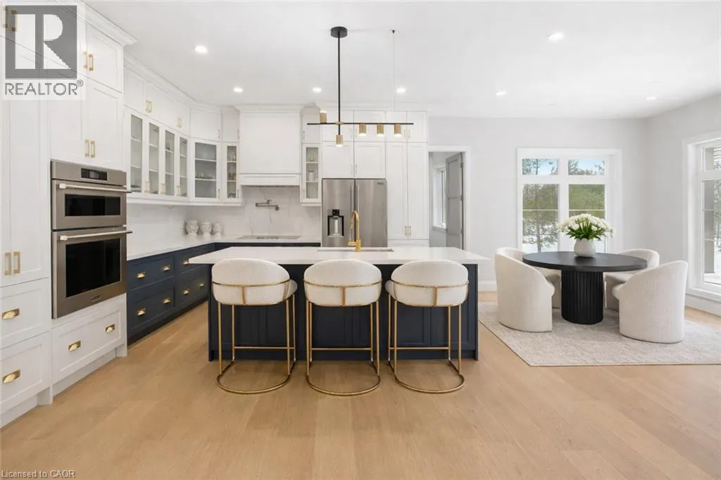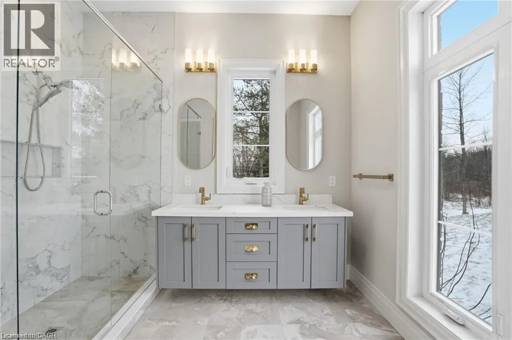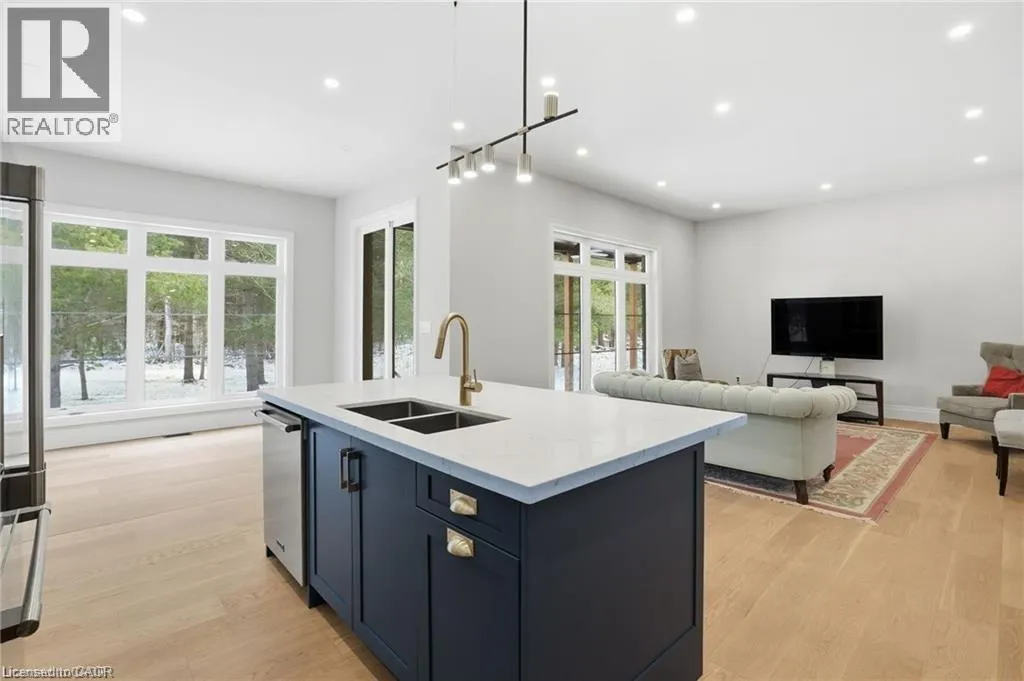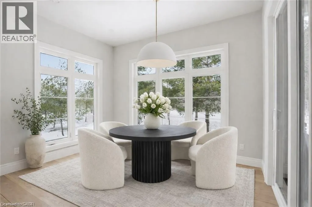 Indulge in elevated living, exceptional 2024 built estate offering over 5,500 sqft of exquisitely crafted space. An impressive 2,767 sqft per level, set on a private 2.37 acre lot with over 200 mature trees, backing onto forested conservation land. Designed with sophistication & scale, the open-concept interior showcases soaring 10' ceilings on the main level & 9' ceilings below, paired with expansive windows that flood the home with natural light. Stunning 7 engineered white oak flooring runs throughout, complemented by custom 8' solid core doors & exquisite trim work. 126 integrated pot lights provide a warm, ambient glow throughout the home. The show stopping chefâs kitchen features floor-to-ceiling custom cabinetry, a statement center island, quartz countertops, built-in appliances, along with a walk in pantry that enhances both functionality. Four of the six generously appointed bedrooms offer private, spa-inspired ensuites, delivering exceptional comfort & privacy. The fully finished lower level mirrors the elegance & footprint of the main floor, creating a completely self-contained residence with a separate entrance & full in-law suite. Built with performance & efficiency in mind, the home features a 6-tonne heat pump system, supported by a 100,000 BTU furnace for optimal comfort during extreme temperatures. The 40' drilled well services the home, complete with UV filtration, water purifier & softener systems, along with a 9,000-litre, 3-chamber septic system with alarm for added peace of mind. A substantial 80,000 lb certified recycled asphalt driveway leads to the oversized 3-car garage with extra-high ceilings. Perfectly positioned between Rockton and Sheffield, this Luxury Certified residence is a rare offeringâseamlessly blending modern design, advanced infrastructure, and the tranquility of nature. Please note that some photos have been virtually staged to add furniture/items in some rooms. (id:27476)