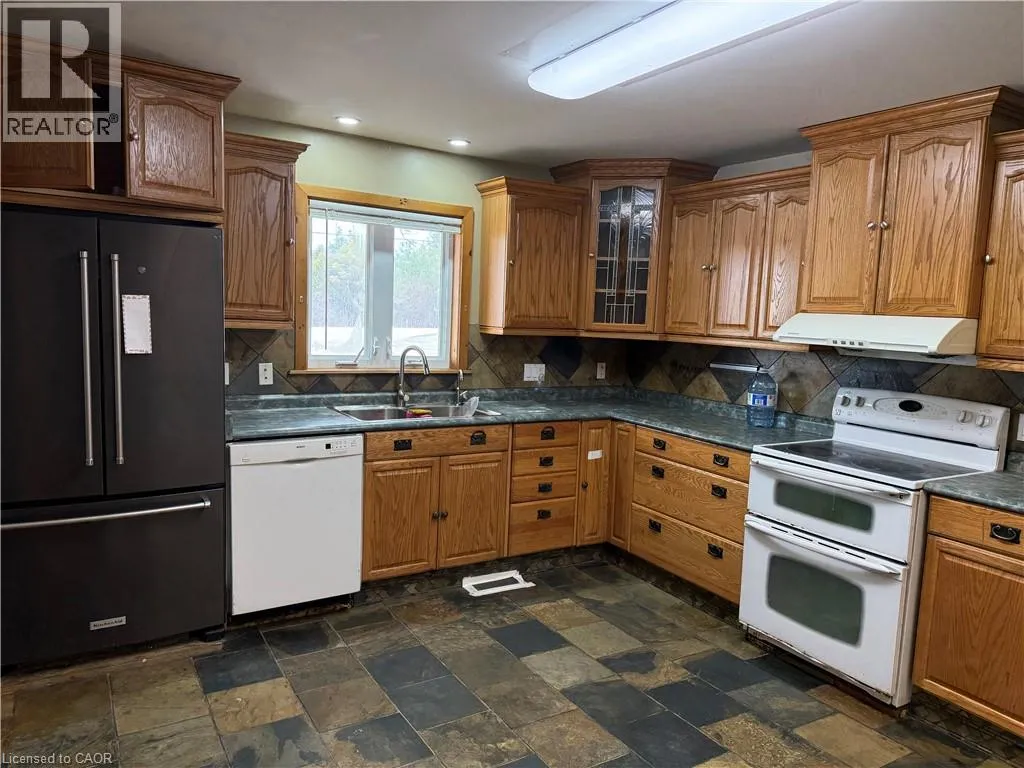 Spacious 6-bedroom, 4 full-bathroom home available for lease in a mixed-use property. The main floor offers 3 well-appointed bedrooms, including a primary bedroom with ensuite, a full main bathroom, and convenient main floor laundry. The bright kitchen opens to the dining and living areas, creating a functional layout for families or shared living. The second level features 3 additional bedrooms, including a generous primary suite complete with ensuite bath and a large walk-in closet, along with another full bathroom. Enjoy outdoor living with a rear deck overlooking green space. The property includes a garage and parking for up to 6 vehicles. Located just outside of town in a quiet setting, yet within close proximity to all essential amenities, this home offers both comfort and convenience. (id:27476)