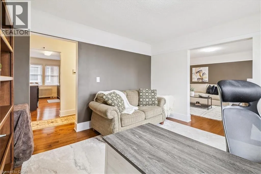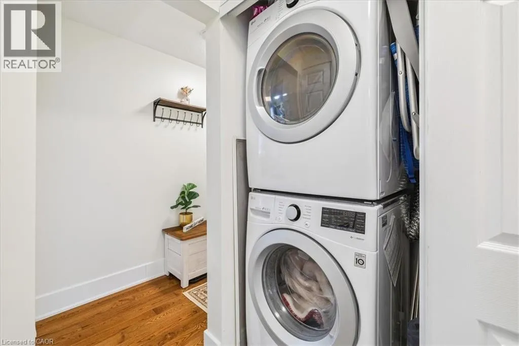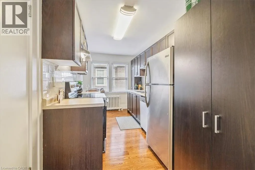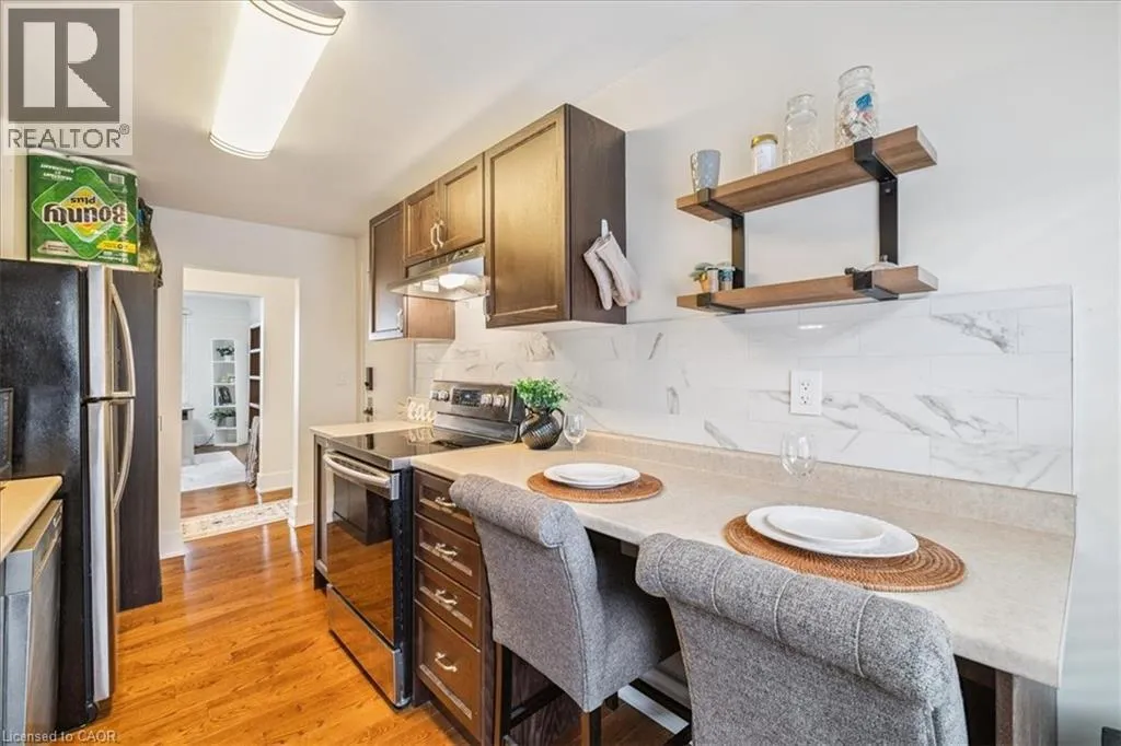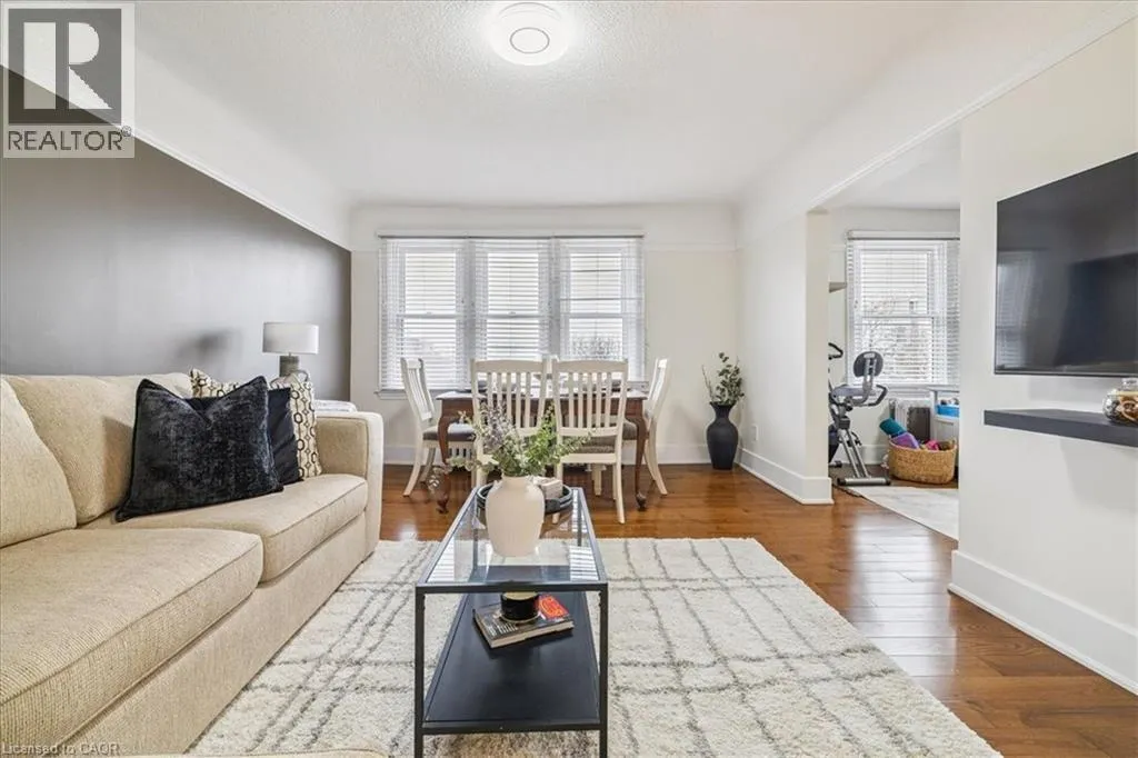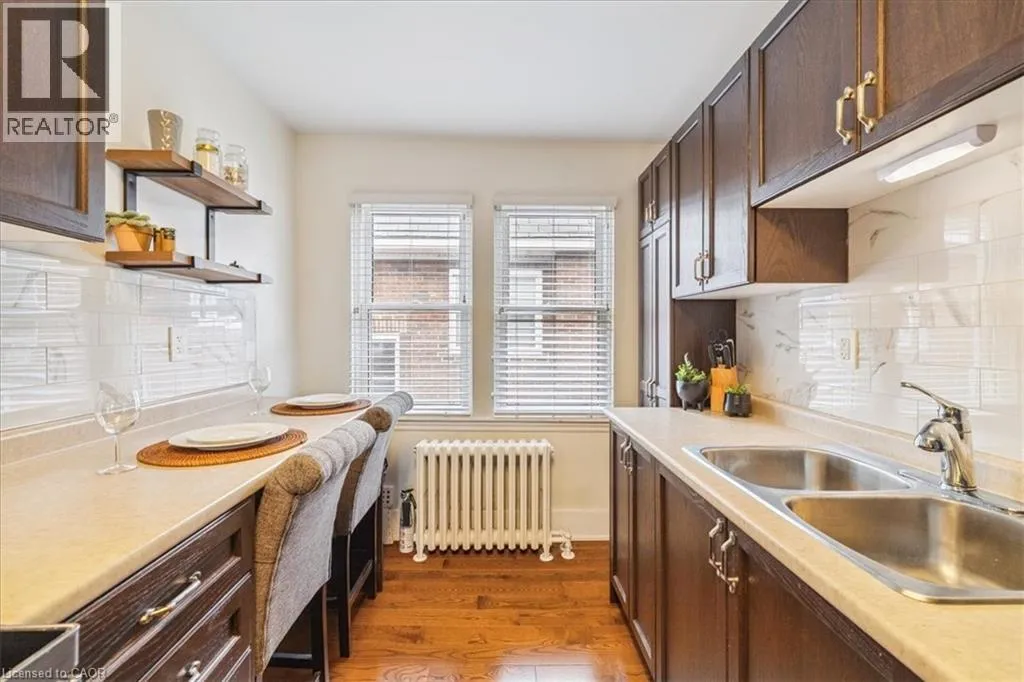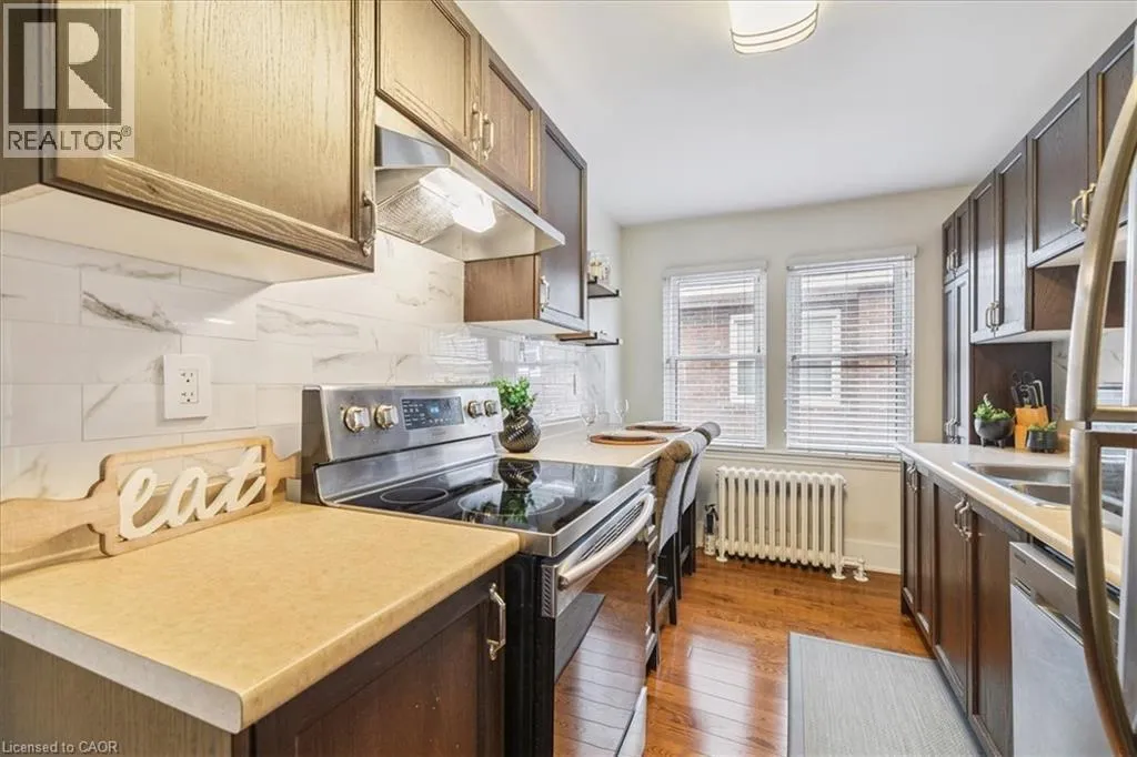 James Street South to St. Joseph's Drive to Mountwood This spacious one-bedroom condominium offers approximately 892 square feet of comfortable living in Hamiltonâs sought-after Durand neighbourhood. Renovated in 2019 with new hardwood flooring, windows, kitchen and bathroom! New backsplash and light fixtures in the last 3 years. This bright and functional layout includes a generous living and dining area, a dedicated office space or could be used as a second bedroom, a full eat-in kitchen, in-suite laundry, and a well-sized bedroom featuring two closets. Situated in a solid brick building, the unit provides a quiet and established setting while being just steps from downtown, hospitals, parks, public transit, and everyday amenities. An excellent opportunity for first-time buyers, downsizers, or investors looking for a centrally located, walkable lifestyle. Book your showing today! (id:27476)