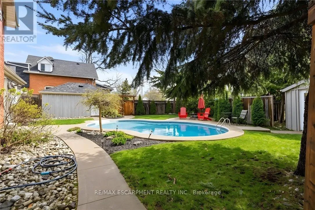 Cross Streets: MATILDA ST S/HATT ST. ** Directions: FROM KING ST W, MATILDA SDT S (ON THE CORNER OF HATT ST). Don't be fooled by its charming curb appeal-this circa 1885 double brick home offers far more space than meets the eye. Ideally located just moments from downtown Dundas, you'll enjoy easy access to local shops, cafés, restaurants, and galleries, along with nearby theatres, recreation facilities, parks, trails, and top-rated schools. With 4 bedrooms, a versatile den, and 2.5 bathrooms, it's designed to comfortably accommodate family living and entertaining alike. A thoughtfully designed two-storey board-and-batten addition integrates beautifully with the original home, showcasing unique touches like a reclaimed leaded glass window in the mudroom. At the heart of the home, the kitchen is both stylish and functional, featuring granite countertops, a generous island, slate floors, and abundant cabinetry-ideal for everyday living or hosting. The main floor blends historic charm with modern updates. The formal living room highlights original pine plank floors, while the dining room-graced with a stained glass transom-offers ample space for gatherings. The inviting family room stands out with its beamed ceiling, exposed brick, wood stove, hardwood flooring, and dual walkouts to the backyard. Upstairs, two separate staircases lead to a spacious primary suite complete with built-in storage and a private 3-piece ensuite. Three additional bedrooms, a bright office, and five skylights fill the upper level with natural light. A convenient Jack-and-Jill bathroom features a walk-in shower with a built-in bench. Set on an impressive 69-foot frontage, the fully fenced backyard is a private retreat with a heated in-ground saltwater pool, deck, multiple patios, and beautifully landscaped gardens. A single-car garage and private driveway complete the package. With quick connections to McMaster and major routes, this home offers the perfect balance of charm, space, and convenience. A rare opportunity to own a truly special property in the heart of historic Dundas. (id:27476)