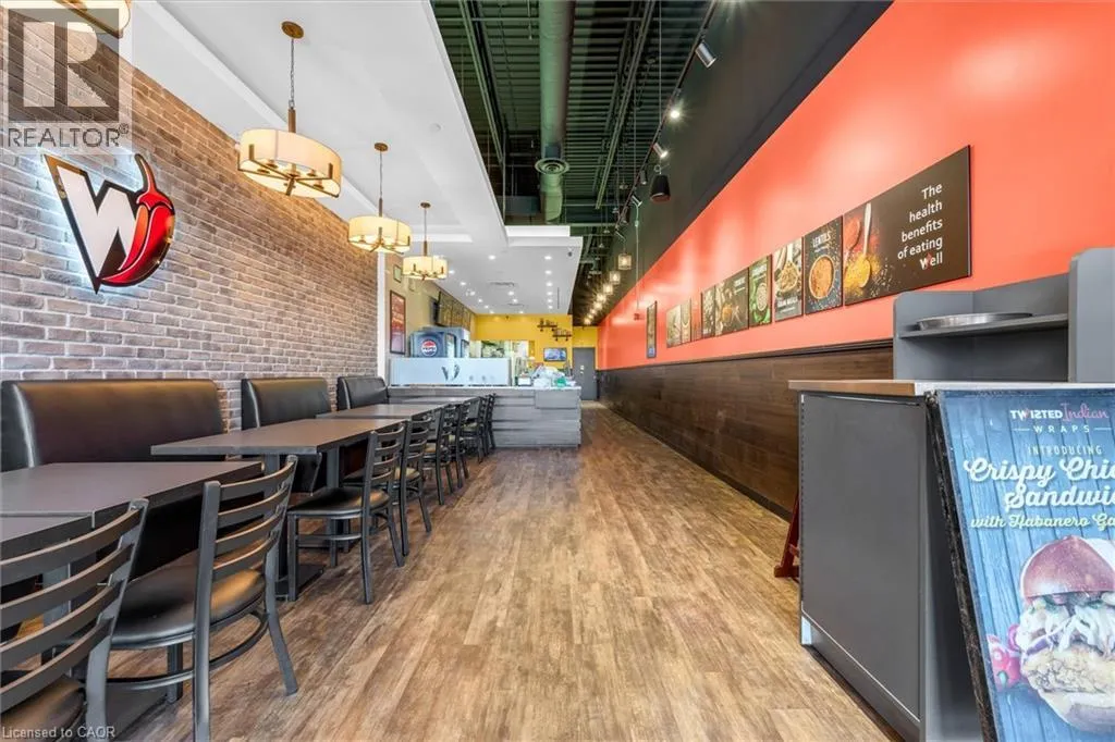 Upper James St, south of Rymal Rd E, located in the RioCan Upper James Square plaza RARE TURN-KEY RESTAURANT OPPORTUNITY IN PREMIUM RIOCAN PLAZA! Incredible opportunity to acquire a fully built-out, 1,191 sq. ft. fast-casual restaurant in Hamiltonâs bustling Upper James Square. Located in a high-traffic, professionally managed RioCan power centre, this unit benefits from massive daily foot traffic and exposure alongside powerhouse co-tenants like Winners, Mandarin, Montana's, and Starbucks. Skip the massive upfront costs, permit delays, and headaches of building a commercial kitchen from scratch! This asset sale includes a fully fitted turn-key setup and an extensive equipment package perfectly optimized for a high-volume takeout or fast-casual concept. Please contact the listing agent directly for the complete equipment list and value breakdown. Secure your business's future by taking over a highly competitive existing lease expiring July 31, 2030. The buyer has the opportunity to bring their own brand and menu, subject to the Landlordâs written approval of the use clause and lease assignment. (id:27476)