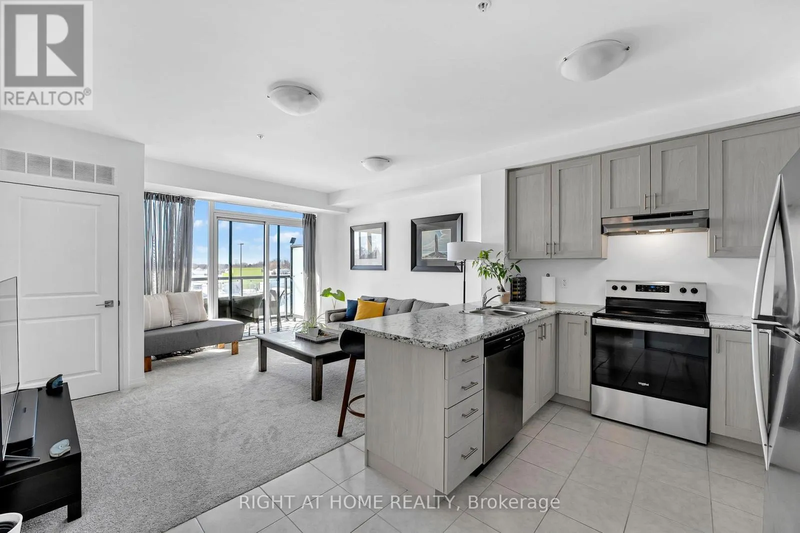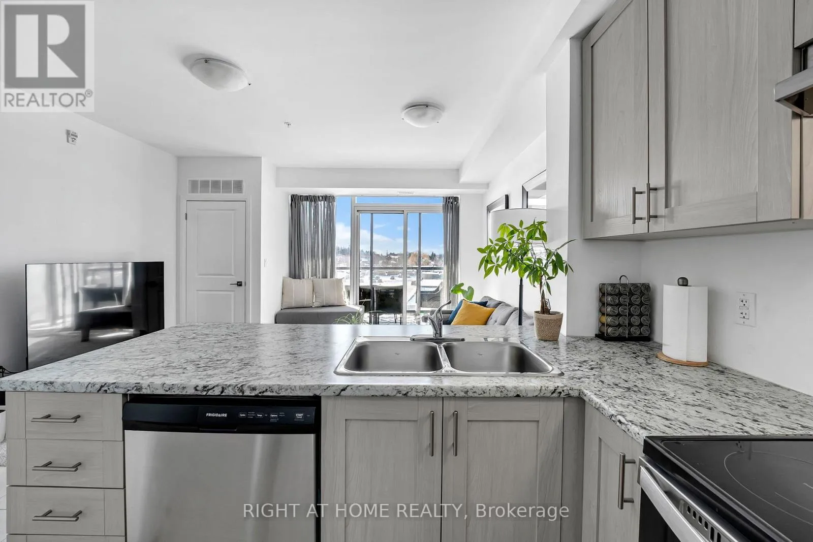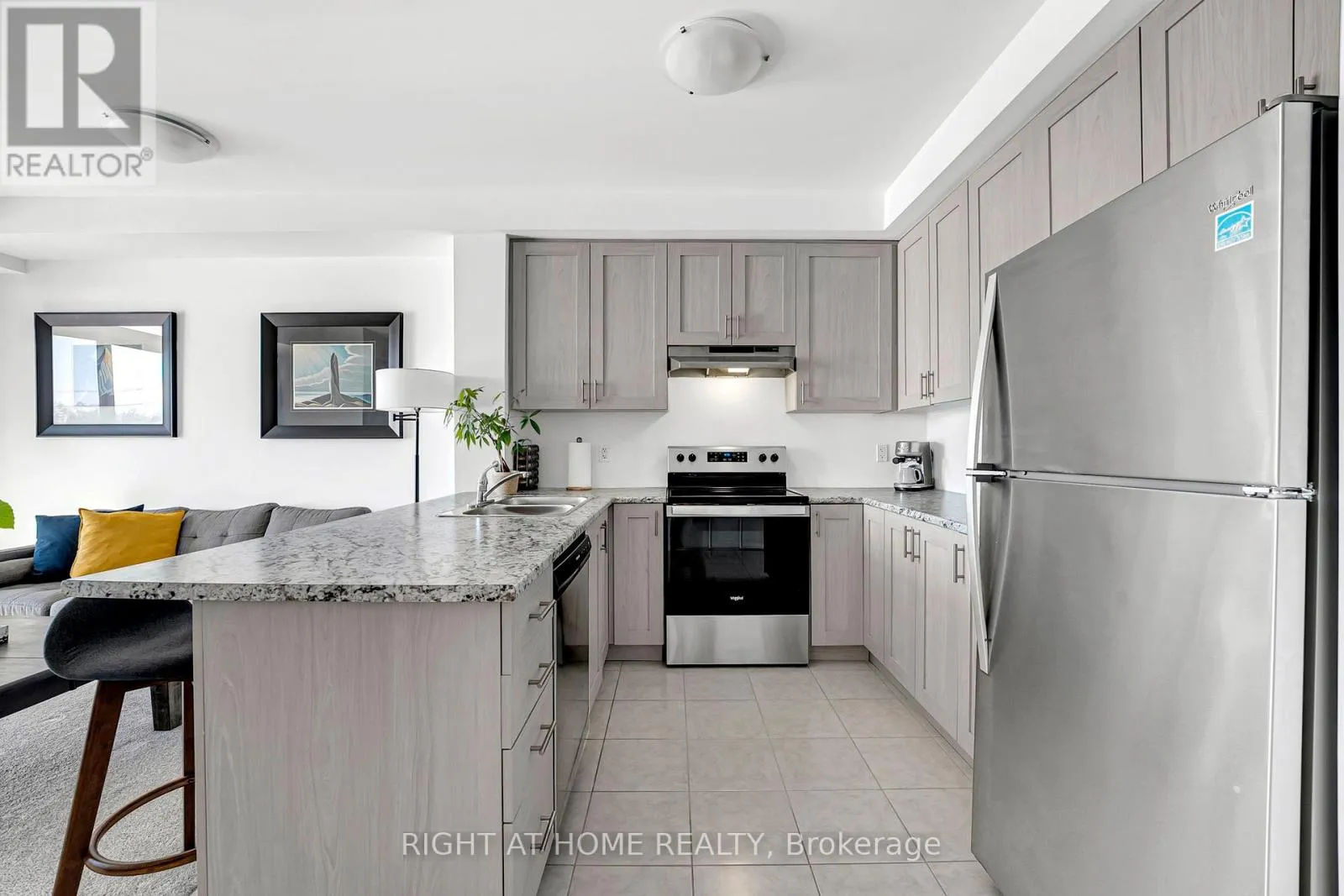 Dundas St E / Hamilton St N Available May 1 for lease. Located in the highly sought-after community of Waterdown, this bright and well-appointed 2-bedroom, 1.5-bathroom condo offers an open-concept layout. The modern kitchen is complemented by stainless steel appliances, ample cabinetry and a large breakfast bar countertop. The kitchen flows seamlessly into a spacious living and dining area, which overlooks the northwest-facing covered balcony, where natural light fills the space throughout the day. The unit features two good sized bedrooms, a full 4-pc bathroom, 2-pc powder room, and the convenience of in-suite laundry. Included: one surface parking space and storage locker. The building also offers plenty of visitor parking, making it easy to welcome guests. Ideally located just steps from shopping, restaurants, grocery stores, and pharmacies, with easy access to public transit, scenic trails, and nearby waterfalls. Enjoy quick connections to Hwy 403, the QEW, and Aldershot GO Station. This home has been meticulously maintained, simply move in and enjoy! (id:27476)