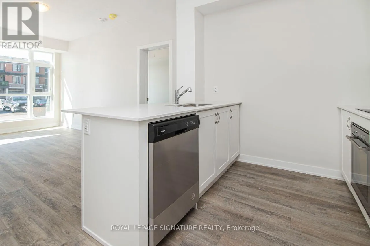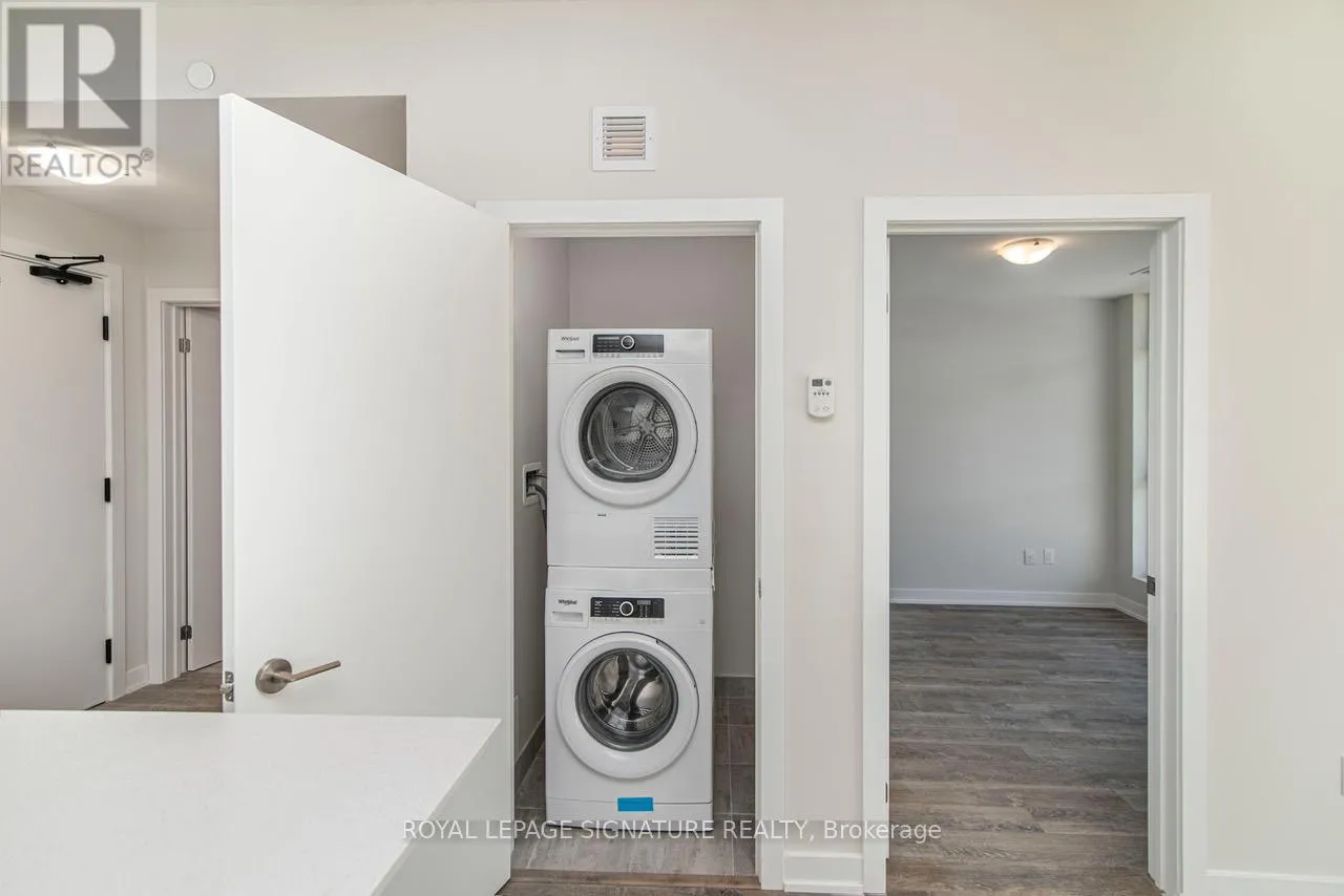 Fruitland / North Service Welcome to 600 North Service Road, Unit 104. Conveniently located just steps away from Lake Ontario, this exceptional main level condo features 2 bedrooms, 2 full baths, 806 square feet, and a 50 sq ft balcony. Step inside to discover an open concept living/dining/kitchen area, 9- foot ceilings, and luxury vinyl flooring throughout (excluding bathrooms). The unit includes in-suite laundry, a new stainless steel fridge/ dishwasher, and built-in ovens with a cooktop range in the kitchen.Enjoy fantastic amenities, including a rooftop patio with Lake Ontario views. This unit comes with one parking space andone locker. Benefit from easy access to the QEW, close proximity to East Gate Mall, and nearby scenic trails and walking paths along Lake Ontario. (id:27476)