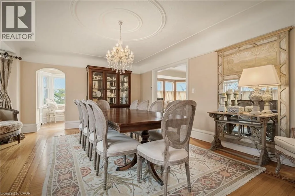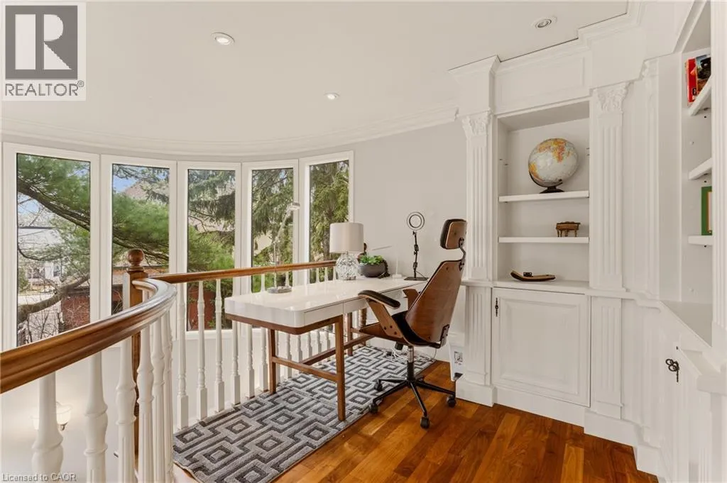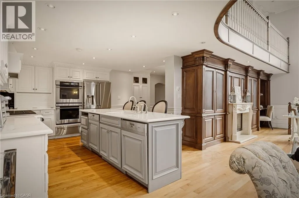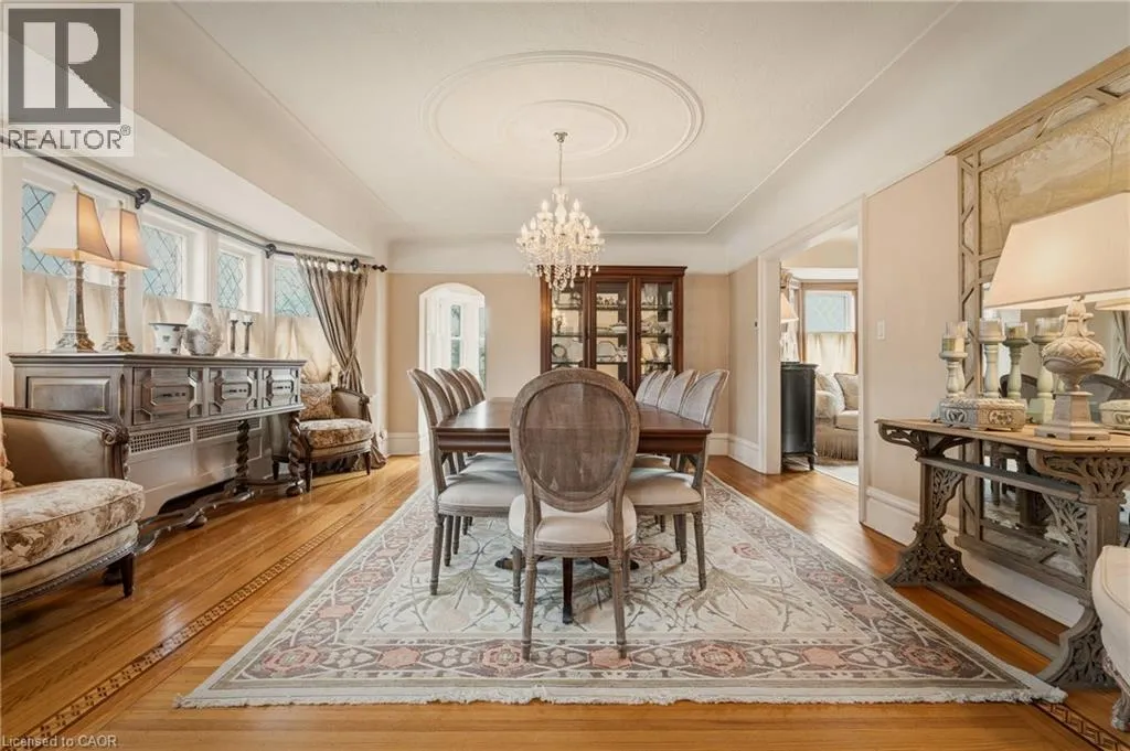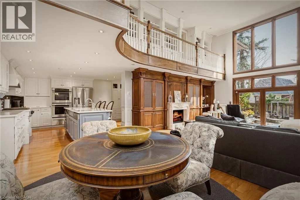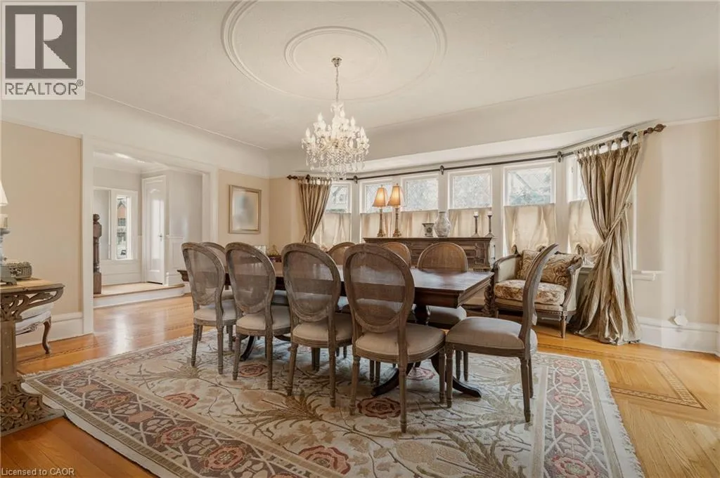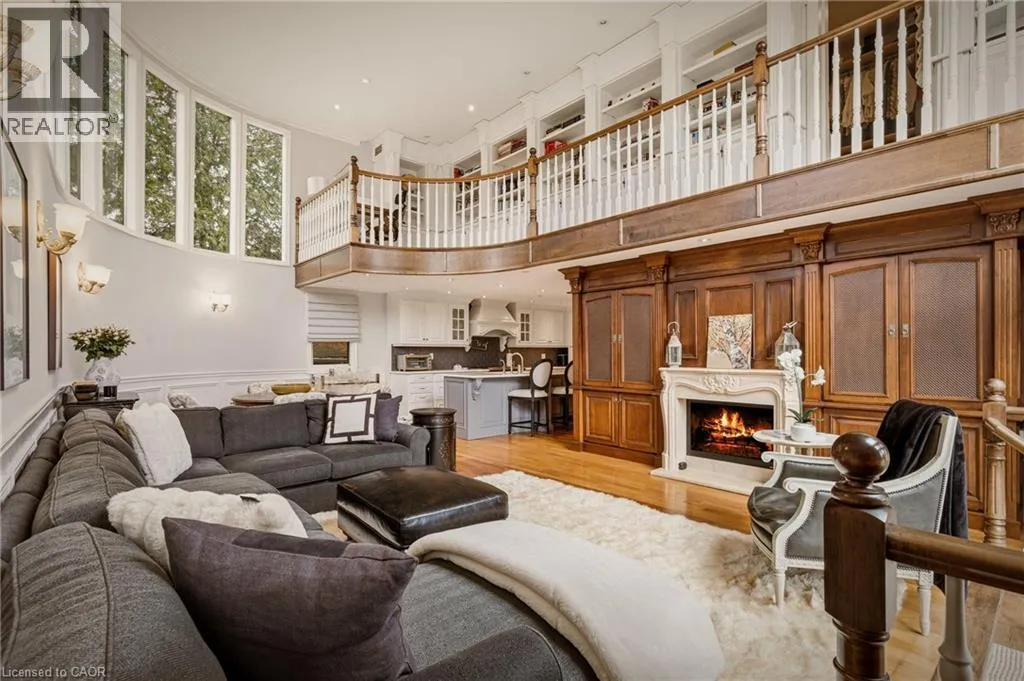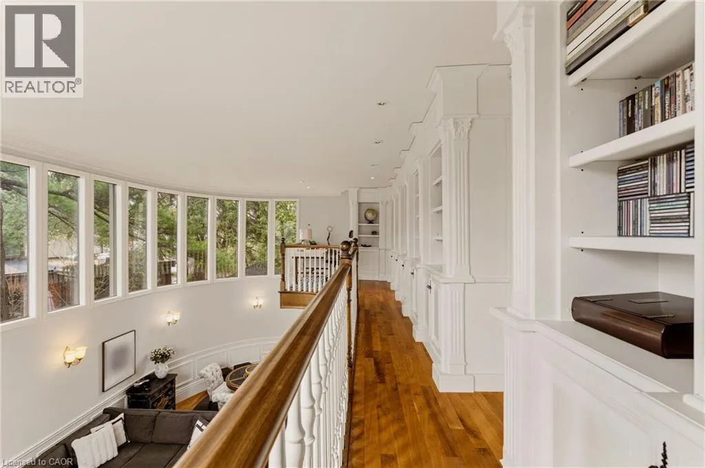 King St W to Dalewood Ave to Dalewood Cres to Oak Knoll Dr This is the kind of home people wait years forâquietly set along one of Hamiltonâs most distinguished streets, on an oversized, double-width lot and framed by an exceptional natural backdrop. With the Royal Botanical Gardens quite literally at your doorstep, youâre surrounded by lush forest, winding trails, and the beauty of Cootes Paradise just moments away. The home itself strikes a rare balance between character and contemporary comfort. Original details have been preserved and elevated, while thoughtful renovations have introduced a striking layout designed for modern living. At the centre of it all is a beautifully appointed kitchen with granite finishes, effortlessly connecting to an expansive family room where the dramatic ceiling height and curved wall creates a true sense of space and light. The main living areas feel both refined and welcoming, with detailed millwork, rich hardwood floors, and a statement fireplace anchoring the space. One of the homeâs most distinctive touches is the elevated libraryâan architectural feature that adds both character and function, overlooking the family room below. Upstairs, the bedrooms are generously proportioned and filled with natural light. The primary suite offers a walk-through walk-in closet that opens to a spa-like ensuite, making everyday living feel effortless. The lower level has been fully finished with versatility in mind, offering an entertainment lounge, additional bedroom, full bathroom with in-floor heating, and a separate exercise areaâideal for growing families or hosting guests. Parking is never a concern here, with a wide driveway accommodating multiple vehicles in addition to a double garage. All of this is set within the vibrant Westdale community, where excellent schools, McMaster University, and a charming village filled with cafés, dining spots, and everyday amenities are all within walking distance. Itâs a lifestyle location thatâs as connected as it is serene. Some photos virtually enhanced (id:27476)