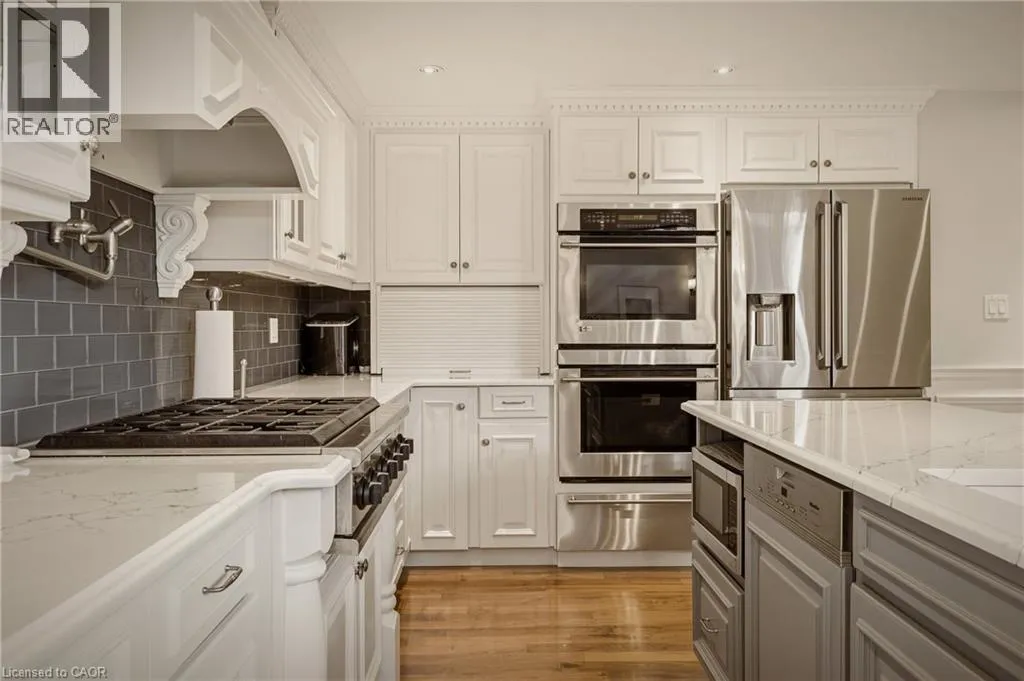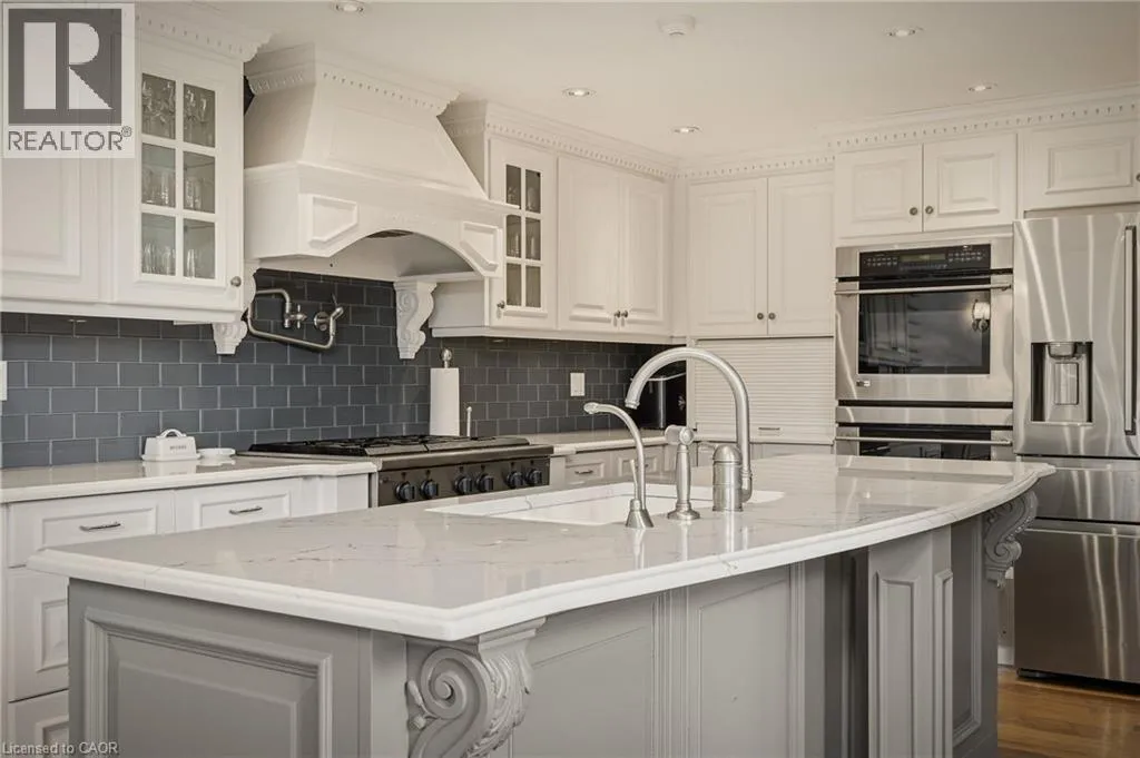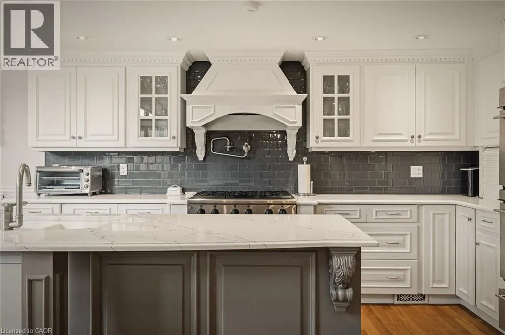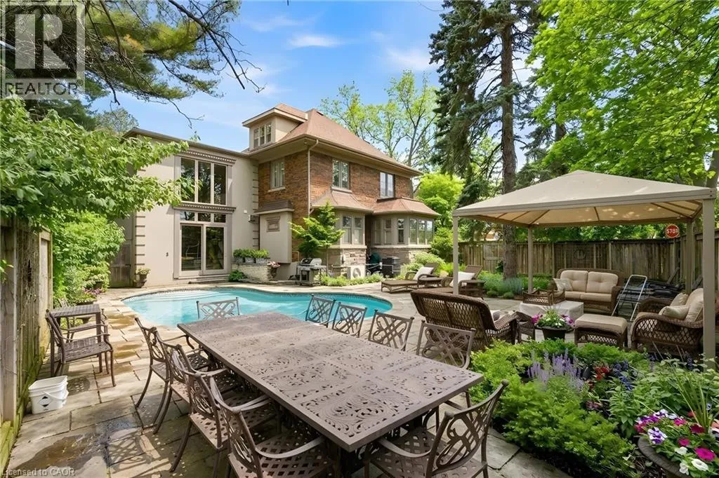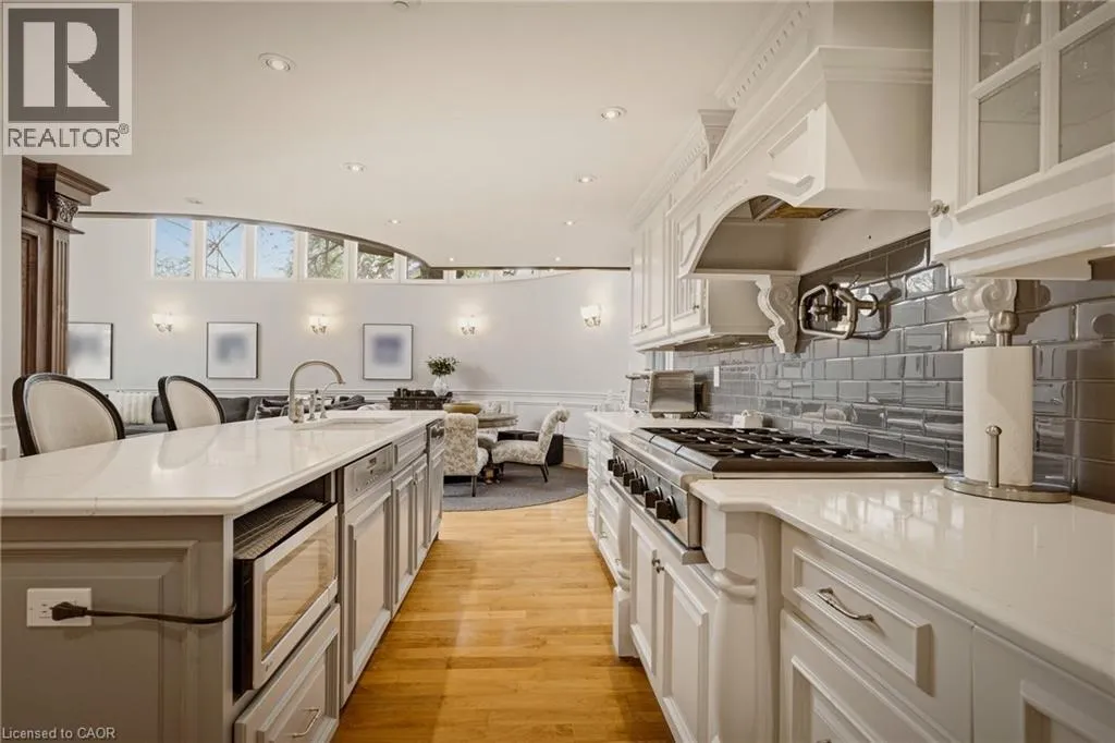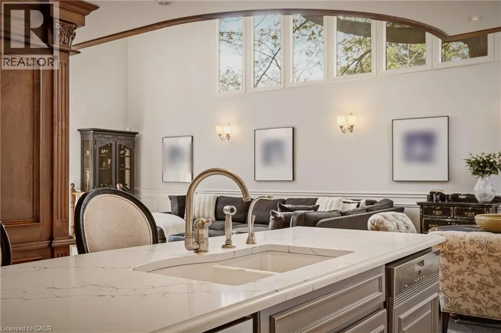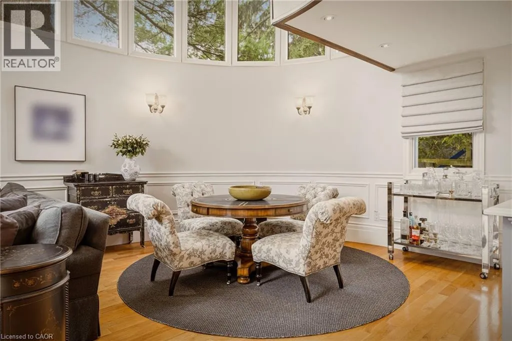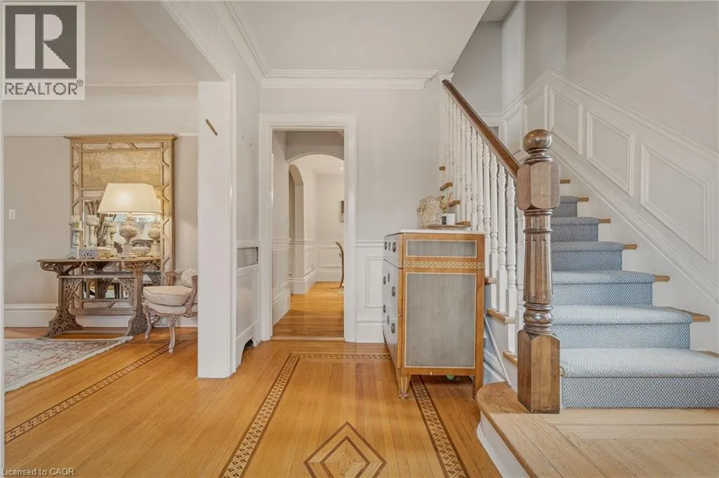 King St W to Dalewood Ave to Dalewood Cres to Oak Knoll Dr This is the kind of home people wait years forâquietly set along one of Hamiltonâs most distinguished streets, on an oversized, double-width lot and framed by an exceptional natural backdrop. With the Royal Botanical Gardens quite literally at your doorstep, youâre surrounded by lush forest, winding trails, and the beauty of Cootes Paradise just moments away. The home itself strikes a rare balance between character and contemporary comfort. Original details have been preserved and elevated, while thoughtful renovations have introduced a striking layout designed for modern living. At the centre of it all is a beautifully appointed kitchen with granite finishes, effortlessly connecting to an expansive family room where the dramatic ceiling height and curved wall creates a true sense of space and light. The main living areas feel both refined and welcoming, with detailed millwork, rich hardwood floors, and a statement fireplace anchoring the space. One of the homeâs most distinctive touches is the elevated libraryâan architectural feature that adds both character and function, overlooking the family room below. Upstairs, the bedrooms are generously proportioned and filled with natural light. The primary suite offers a walk-through walk-in closet that opens to a spa-like ensuite, making everyday living feel effortless. The lower level has been fully finished with versatility in mind, offering an entertainment lounge, additional bedroom, full bathroom with in-floor heating, and a separate exercise areaâideal for growing families or hosting guests. Parking is never a concern here, with a wide driveway accommodating multiple vehicles in addition to a double garage. All of this is set within the vibrant Westdale community, where excellent schools, McMaster University, and a charming village filled with cafés, dining spots, and everyday amenities are all within walking distance. Itâs a lifestyle location thatâs as connected as it is serene. Some photos virtually enhanced (id:27476)