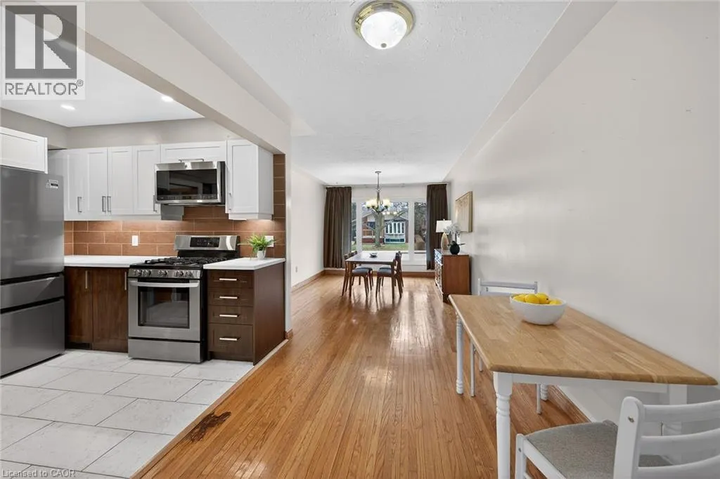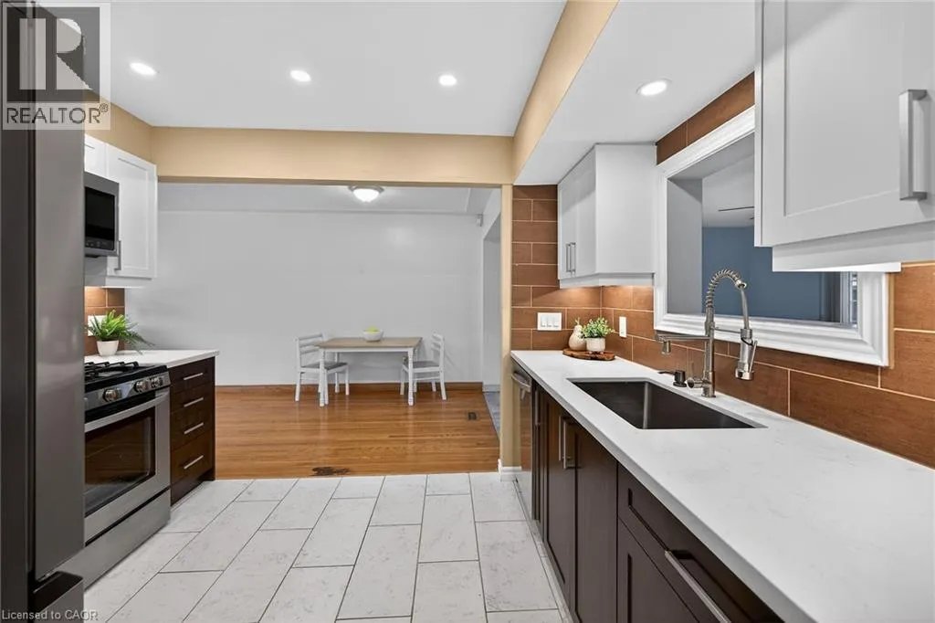 BRENTWOOD 19 Burfield Avenue is located in the family-friendly Huntington Park neighbourhood on the Hamilton Mountain. A true standout, this property features an impressive heated 3-car garage, perfect for mechanics, hobbyists, or anyone seeking a premium workspace. Featuring excellent in-law potential or flexible living arrangements for extended family, this home provides 3+2 bedrooms and 2 full bathrooms across approximately 2,086 sq ft of living space. The third bedroom is currently used as a main-level laundry room but can easily be converted back, with laundry relocated to the basement if desired. The main level showcases original hardwood floors throughout the bedrooms, dining room, dinette, and hallway, adding warmth and timeless character. A spacious family room addition, completed in 2003, enhances the homeâs functionality and includes a full basement foundation below. The lower level is ideal for entertaining, featuring a cozy family room with a gas fireplace and wet bar. Step outside to a beautifully finished backyard complete with a stampcrete patio and gazeboâperfect for relaxing or hosting gatherings. With a touch of vision, this property has incredible potential to become your dream home. Conveniently located close to schools, parks, shopping, public transit, and popular amenities including Huntington Park, Mohawk Sports Park, Bernie Arbour Memorial Stadium, LiUNA Gardens (4 Ice Centre), the Escarpment Rail Trail, and Albion Falls. Some photos have been virtually staged. (id:27476)