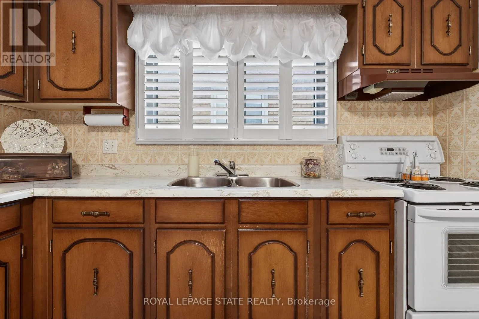 QEW Niagara to Centennial Parkway exit, right on Delawana, right on Fairington. Lovingly maintained all-brick 4-level backsplit offering approximately 1,900 sq ft of above-grade living space. A bright covered front porch welcomes you into a spacious, well-kept foyer. The main level features a sun-filled living room, separate dining area, and an eat-in kitchen-ideal for family living and entertaining. Hardwood stairs lead to the second level with three bedrooms, all featuring hardwood flooring and California shutters. The main 5-piece bath includes double sinks and tiled finishes for easy maintenance. The lower level offers excellent flexibility with a second kitchen, 3-piece bath, and a generous living area-currently used as a dining and family room. An entertainers delight! A separate side entrance and sliding doors provide walk-out access to the fully fenced backyard with a vegetable garden. (id:27476)