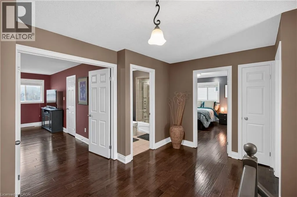 From Wilson W/Hamilton, S on Hamilton, W on Oldmill, N on Tollgate, E on Gristmill Tucked away on a quiet street in Ancasterâs sought-after 'Millerâs Pond', this impressive 4 bdrm, 2.5 bath home offers the perfect blend of space, functionality, & lifestyle. The home welcomes you w/ an attractive exterior facade feat brick, stone, & stucco, complemented by a covered front porch & surfaced parking for 4 cars. A spacious 2 car grg w/ inside entry adds everyday convenience. Step inside to a grand foyer w/ soaring ceilings that immediately sets the tone. The main lvl offers a thoughtful layout designed for both daily living & entertaining. A formal liv rm w/ an electric FP provides a warm, inviting space, while the formal din rm is ideal for hosting gatherings. The spacious kitch is beautifully appointed w/ S/S app, granite, undermount lighting, & a convenient dinette w/ sliding doors to the rear yard. The kitch flows seamlessly into a lrg fam rm w/ vaulted ceilings, creating an open & connected living space. Additional main lvl highlights incl a private office, a powder rm, & laundry facilities. Upstairs, the primary retreat feat a walk-in closet & a well-appointed 4-pc ensuite feat granite countertops, a stand-up shower, & an oversized corner soaker tub. 3 additional bdrms are all generously sized & share a 4-pc bath w/ granite. The home feat engineered hrdwd flrs throughout, adding warmth, elegance, & a cohesive finish to the living spaces. The unspoiled bsmt presents a blank canvas, offering a variety of possibilities. The rear yard is truly an entertainerâs dream, feat an in-ground saltwater heated pool, a hot tub w/ gazebo cover, multiple seating areas, & low-maintenance artificial turf. Located in a quiet, family-friendly pocket of Ancaster, this home offers proximity to top-rated schools, scenic conservation areas, walking trails, & golf courses. Enjoy easy access to shopping, dining, & amenities, along w/ convenient highway access. Millerâs Pond is known for its peaceful setting while still being close to everything Ancaster has to offer. (id:27476)