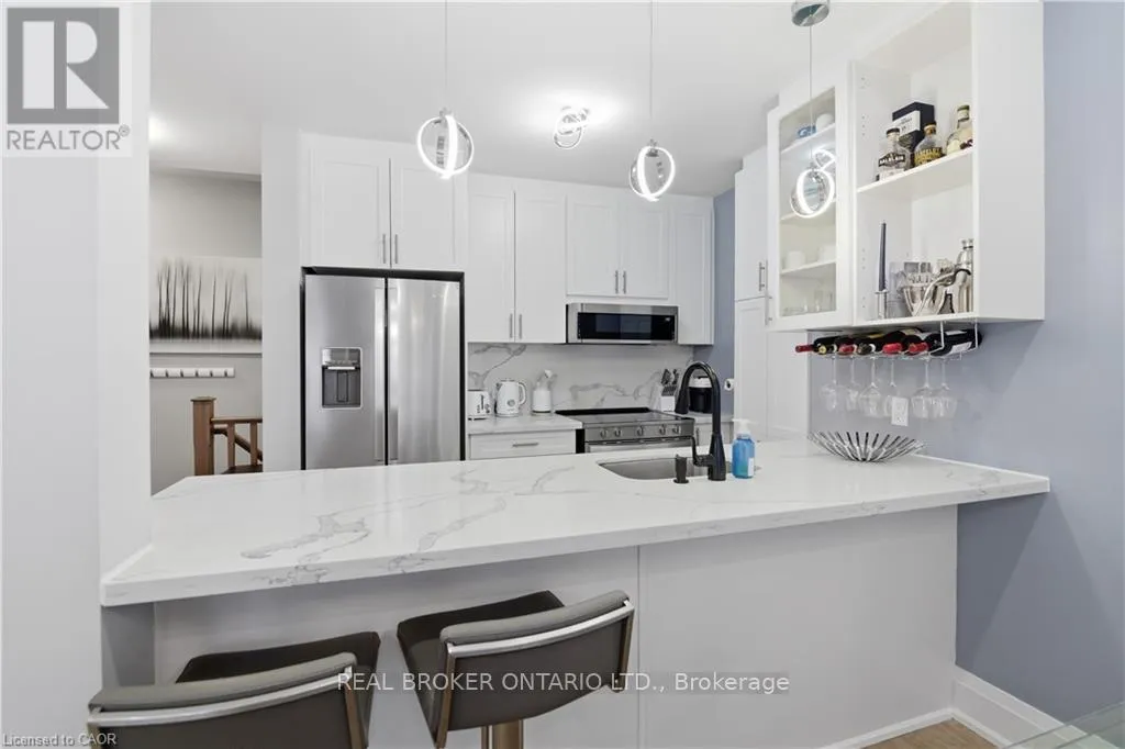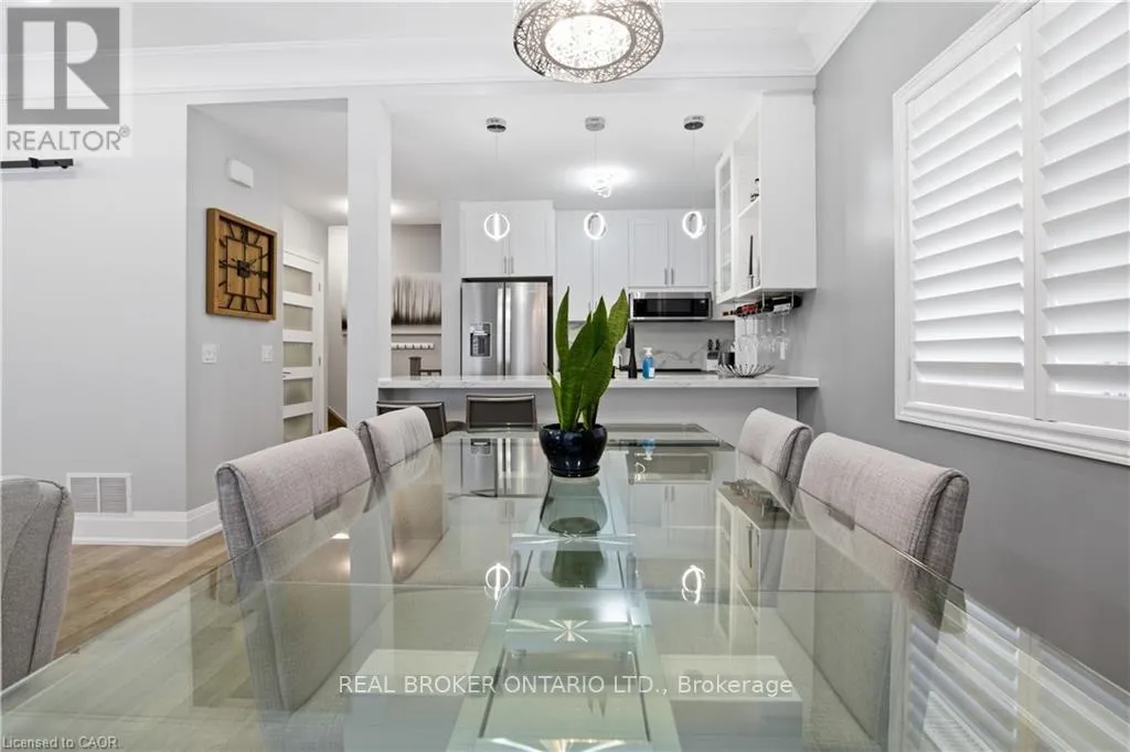 Cross Streets: Burke/Humphrey. ** Directions: Burke to Humphrey. Absolutely stunning 3 bed, 2 bath townhome nestled on a premium corner lot in the highly sought after community of Waterdown! This beautifully maintained home shows like new and is loaded with upgrades throughout - California shutters, new light fixtures, and freshly painted top to bottom, No Carpet. The modern kitchen features stainless steel appliances, and the in-suite stacked washer & dryer adds everyday convenience. Enjoy the privacy of a corner lot , plus one of the few units in the complex with an oversized driveway that fits 2 full-sized vehicles back-to-back - in addition to your single-car garage with inside entry! Step out onto your gorgeous south-facing balcony and take in the beautiful views. Minutes from downtown Waterdown, Burlington, and Highway access! This move-in ready gem is sure to go quick ! (id:27476)