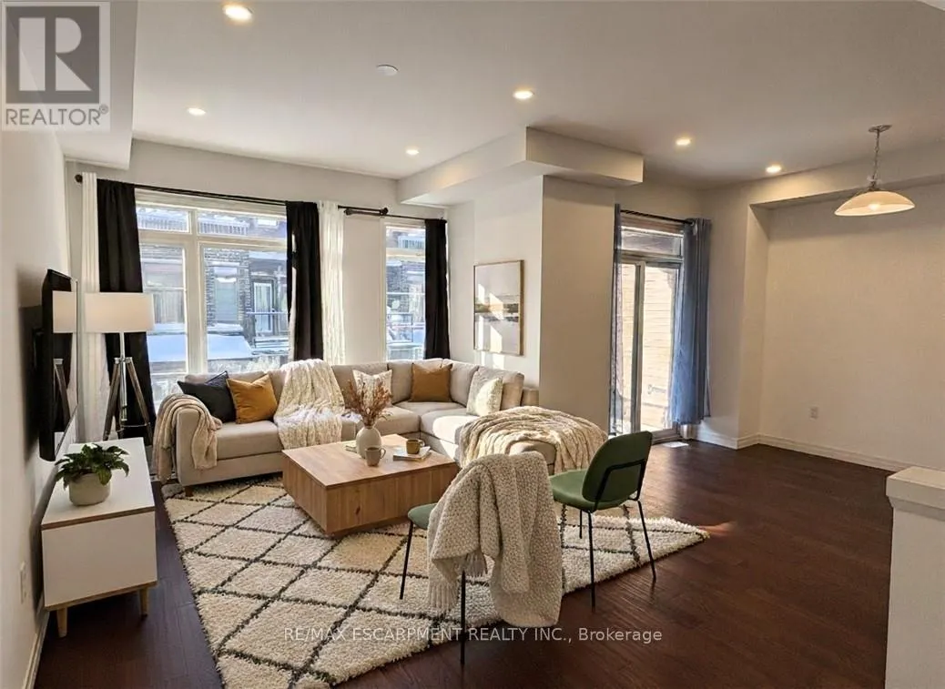 Cross Streets: Upper Red Hill Valley Pkwy. ** Directions: Upper Red Hill Valley Parkway - Times Square Boulevard. Modern, Urban Townhome Available for Lease! This 1600 sq. ft., 3-bedroom, 2.5-bath home offers the perfect blend of comfort, style, and convenience. Spacious, bright entryway with inside garage access. Open-concept Living/Dining/Kitchen flows seamlessly, ideal for entertaining or relaxing. Enjoy a private balcony! Main floor also features a convenient 2-piece bath and separate laundry room. Upstairs, the oversized Primary bedroom includes a private 3-piece ensuite and plenty of closet space. Two additional bedrooms plus a 4-piece bath complete this level. Large windows fill the home with natural light, creating a bright, airy atmosphere. Includes 2 private parking spaces (garage plus driveway) and ample visitor parking. Close to everything-hike the Karst Conservation area, walk to grocery stores, restaurants, shopping, coffee shops, banks, pharmacies, and more. Quick access to major routes including the Linc, Red Hill, QEW, and 403.No backyard, only balcony. Utilities extra. (id:27476)